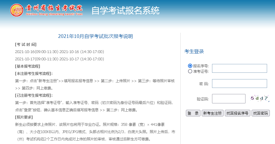 贵州自考报名有专门的平台,可以从贵州省招生考试院网站进入,自考报名公告中也提供了网址,登录界面如下:
