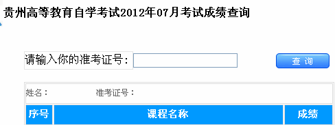 贵州2012年7月自考成绩查询入口:http://58.42.231.153:8000/WEB/Include/secher.php