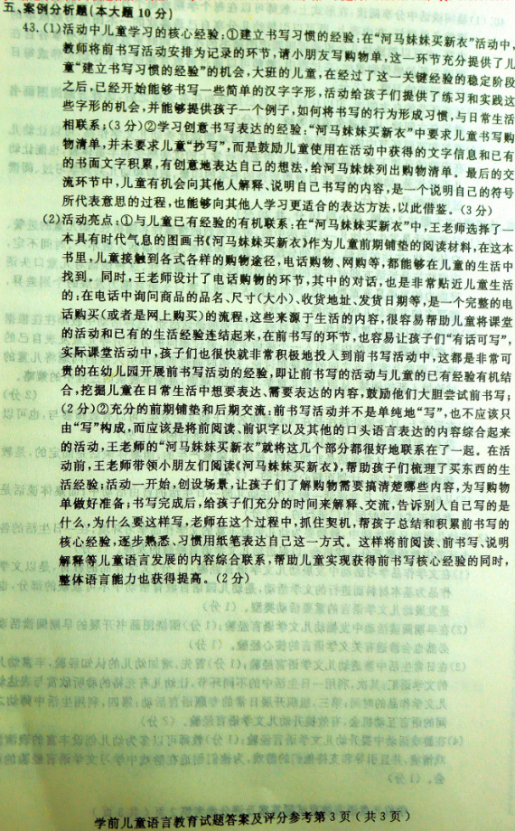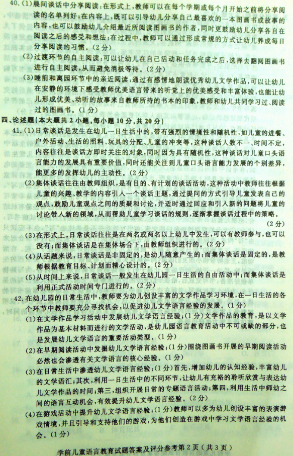 学前儿童语言教育 试卷