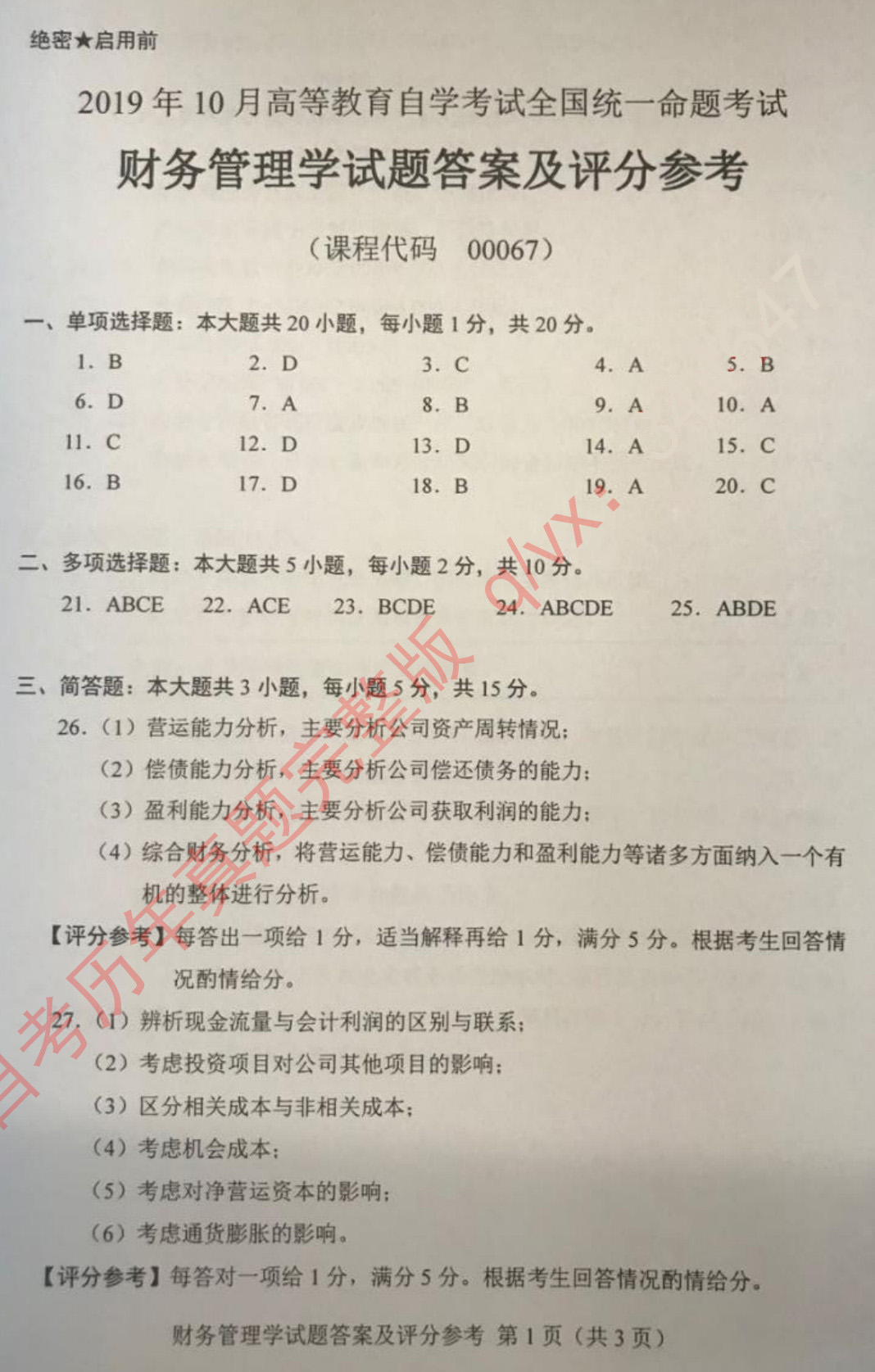 2019年10月贵州自考0067《财务管理学》真题及答案
