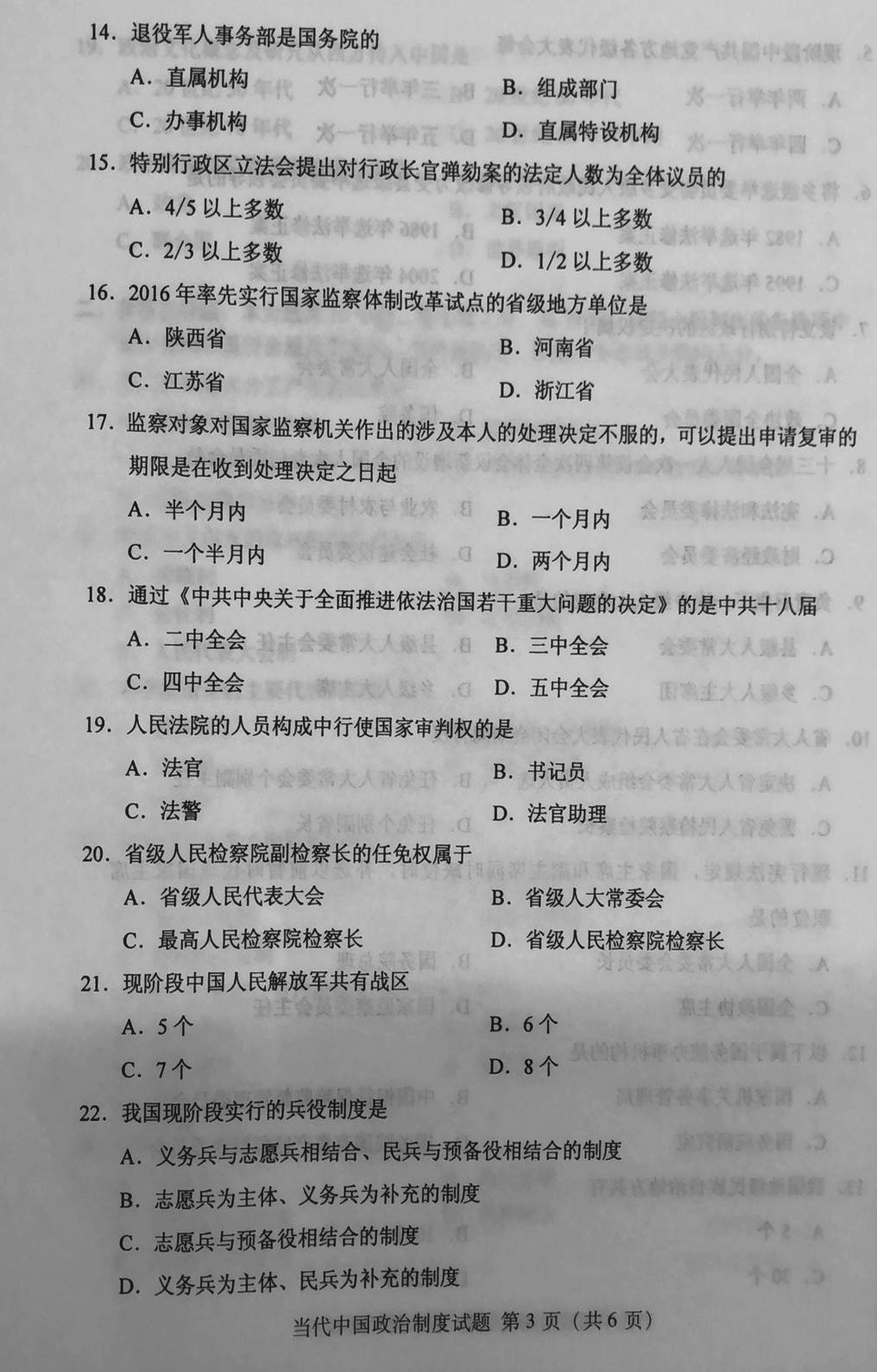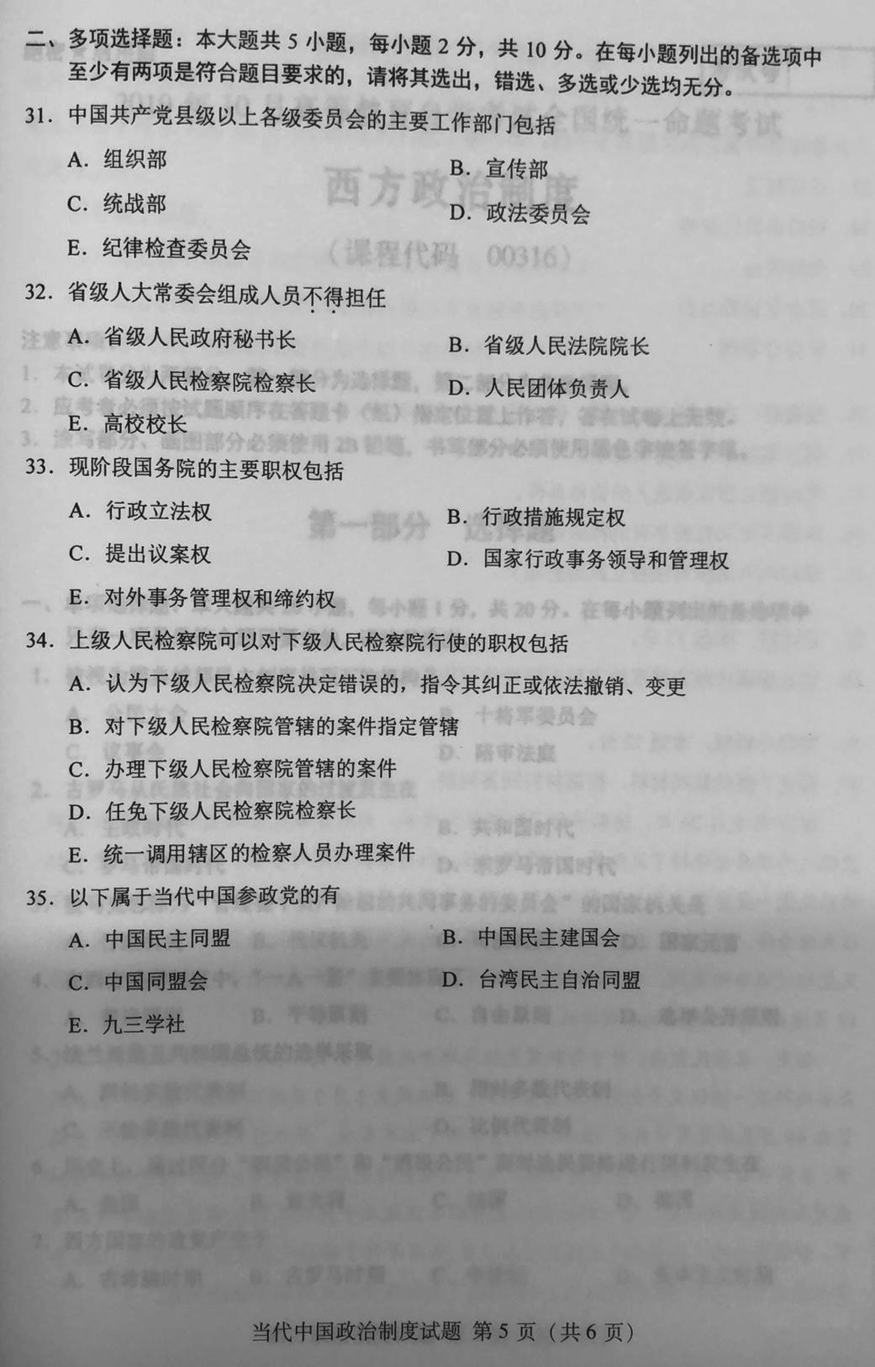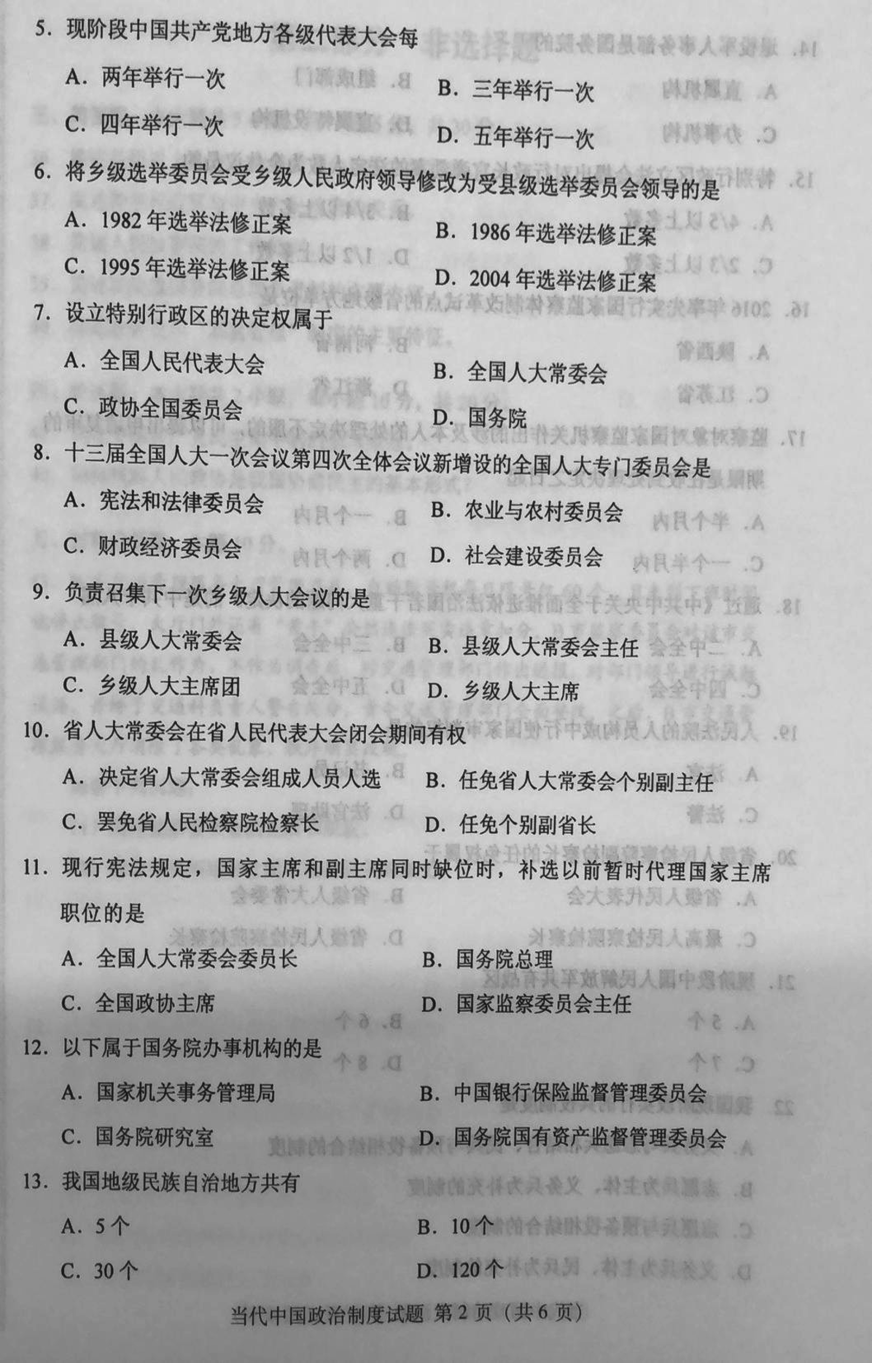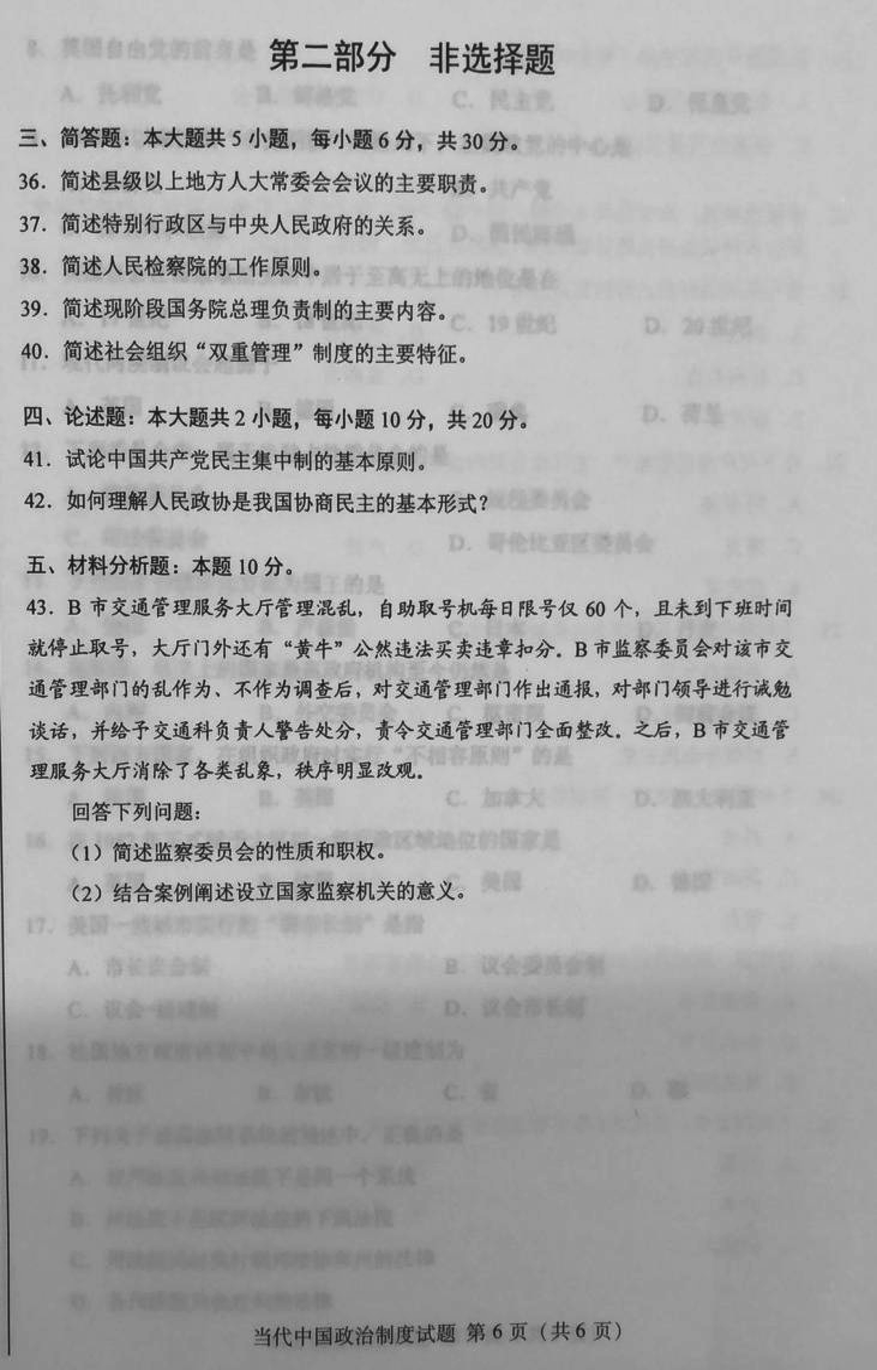 2019年10月贵州省自考当代中国政治制度真题及答案