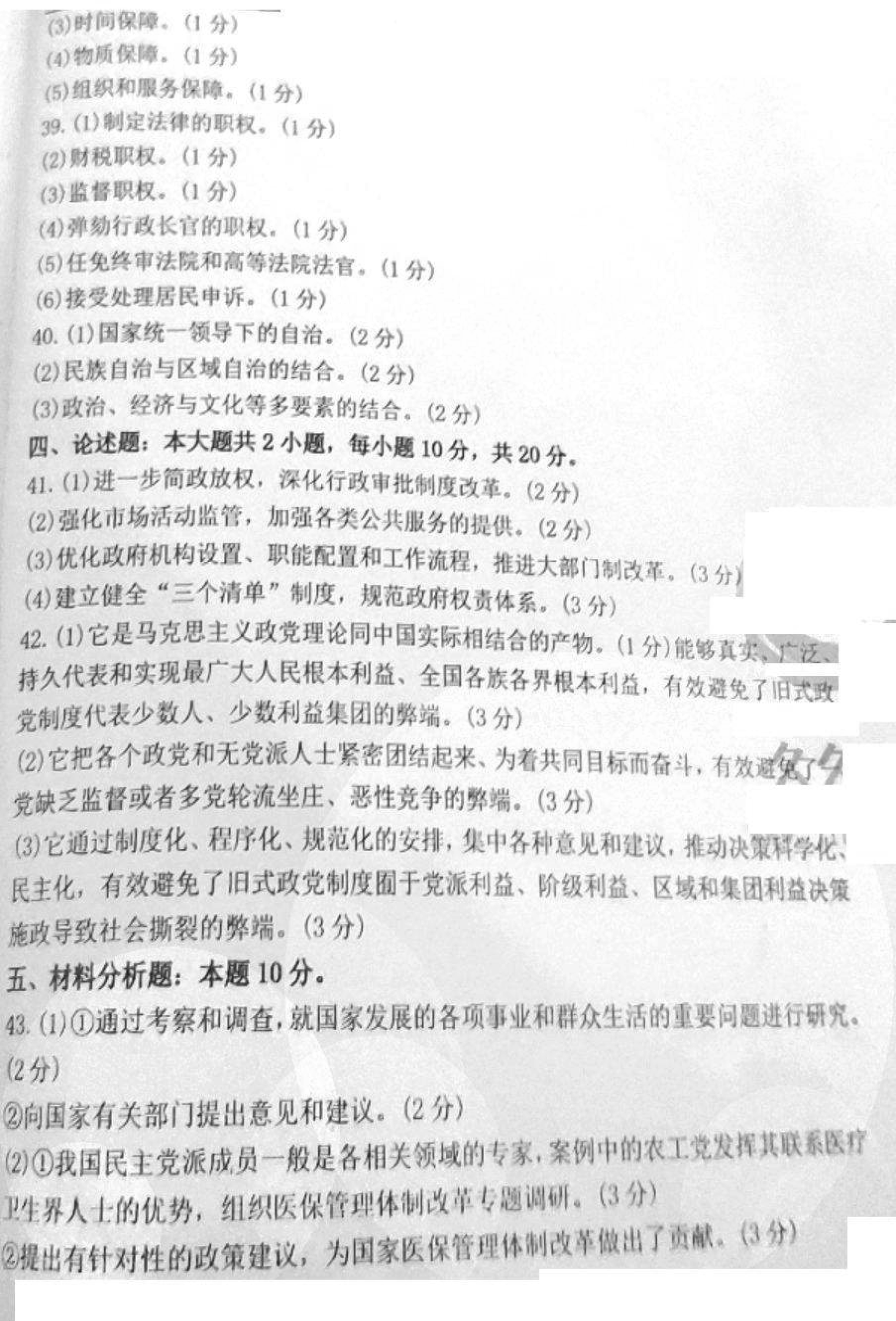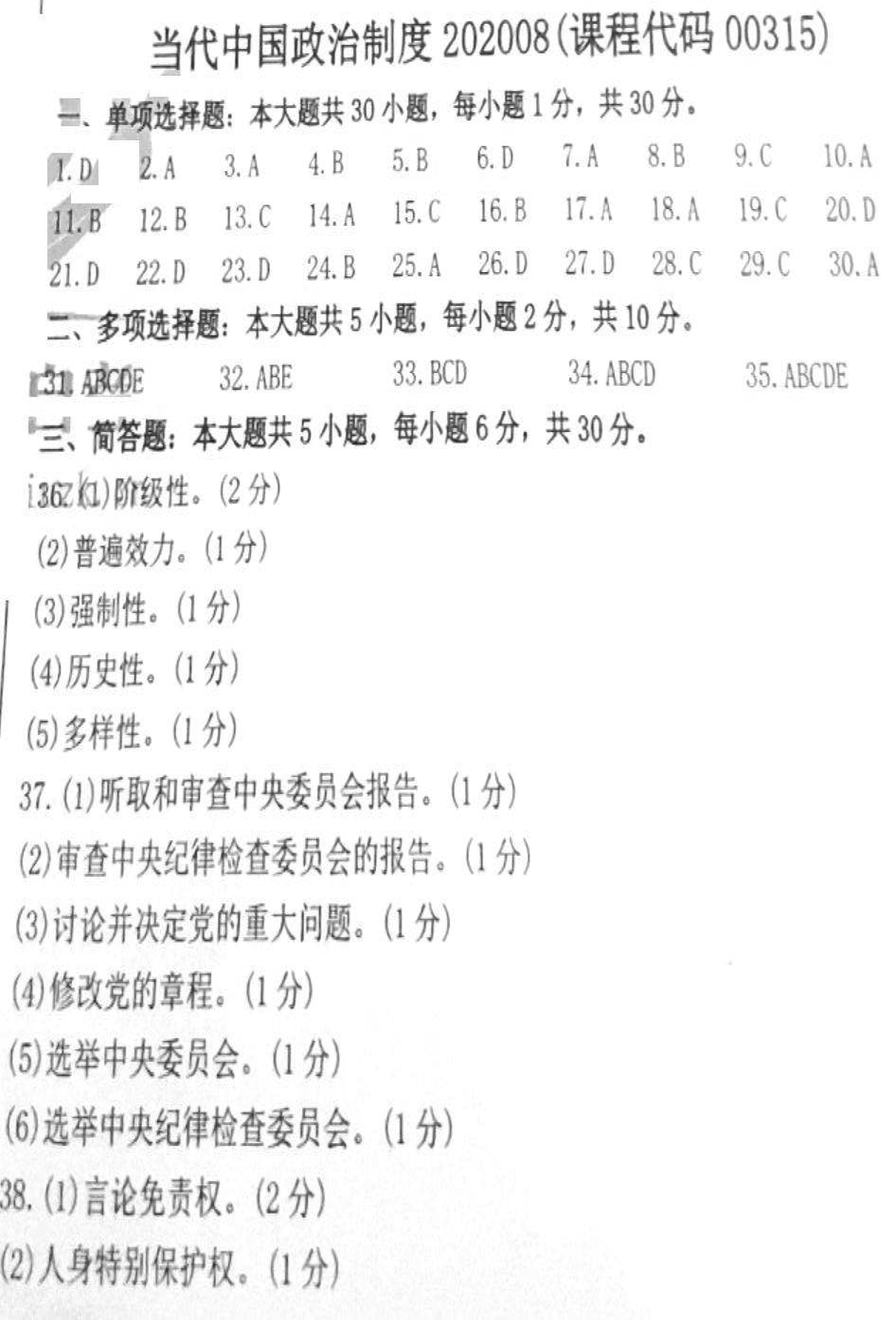 2020年08月贵州省自学考试当代中国政治制度真题及答案