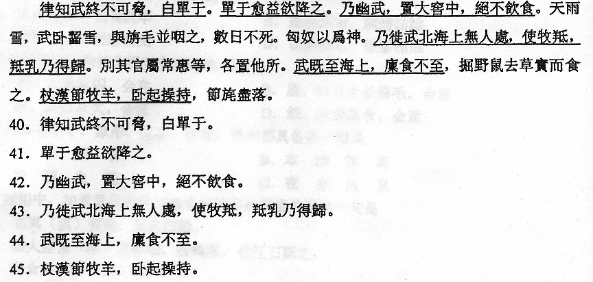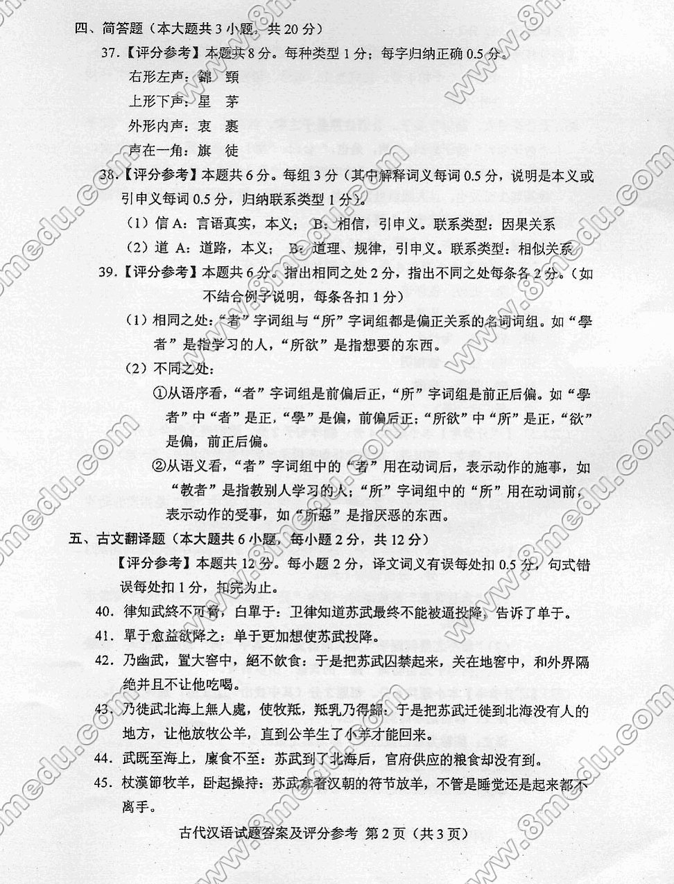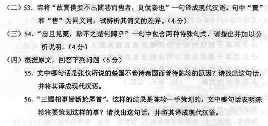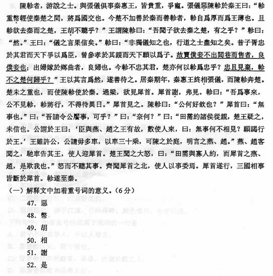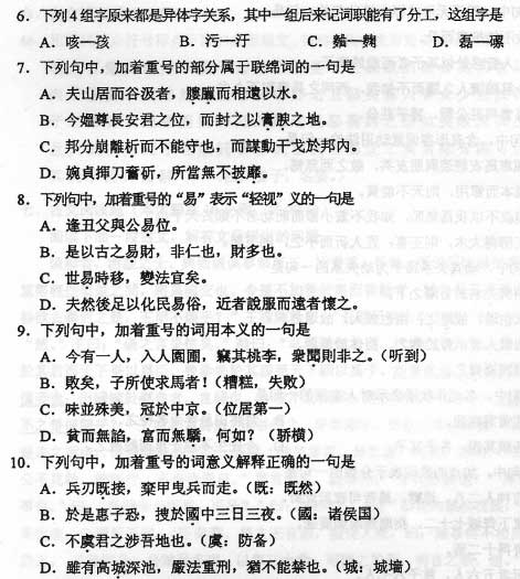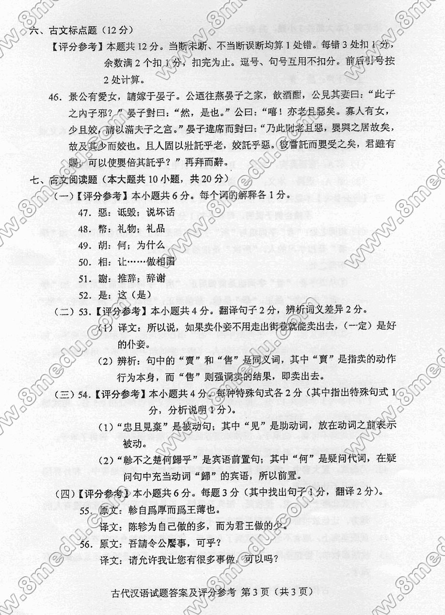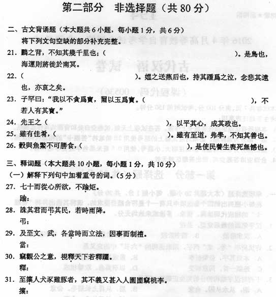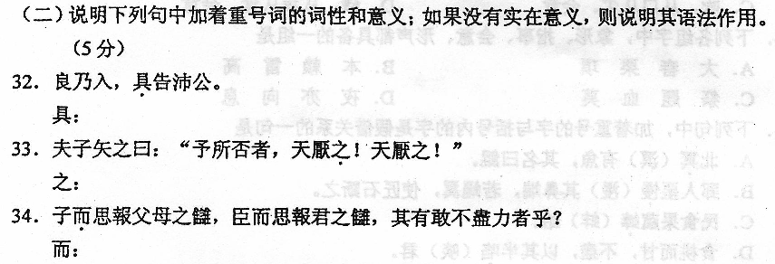 五、古文翻译题(本大题共6小题,每小题2分,共12分)