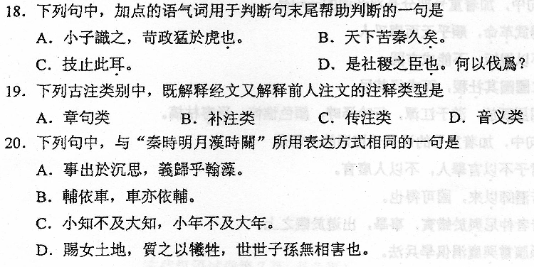 一、单项选择题(本大题共20小题,每小题1分,共20分)