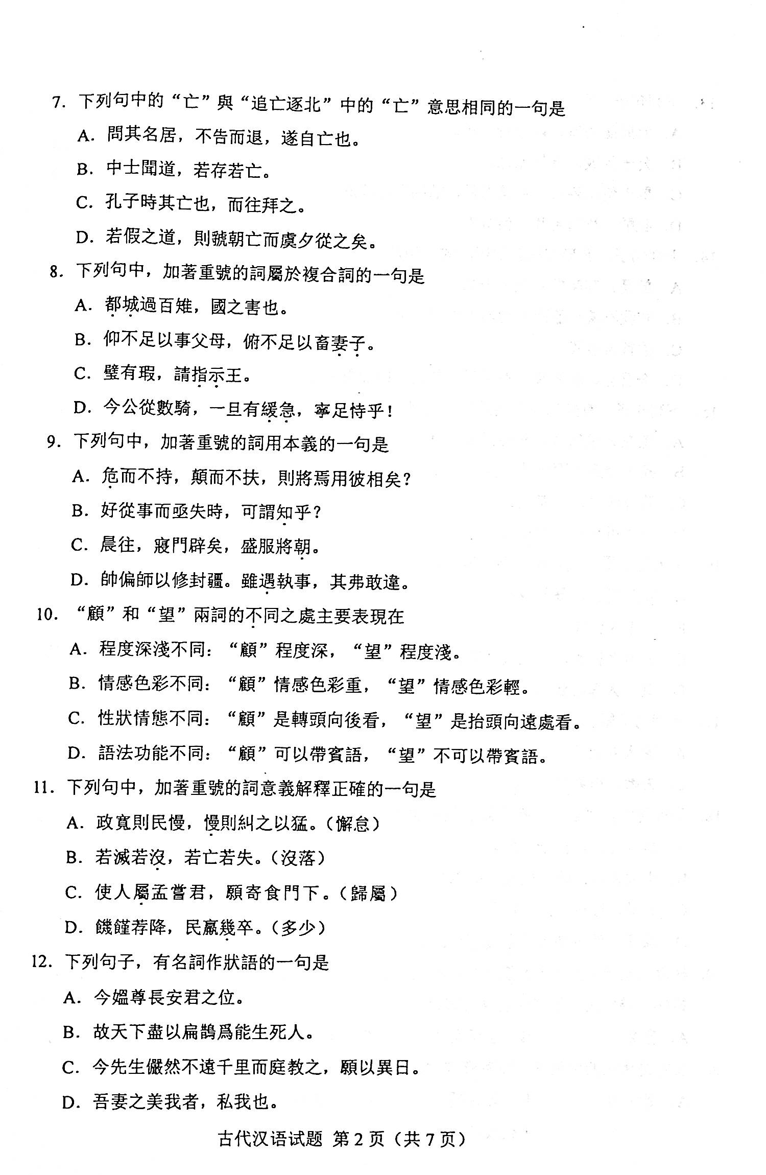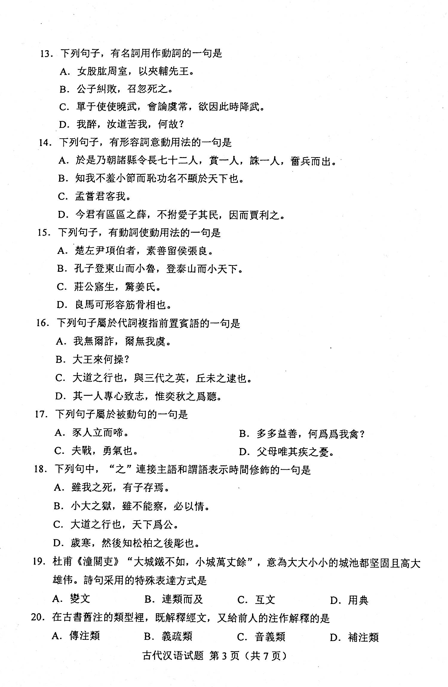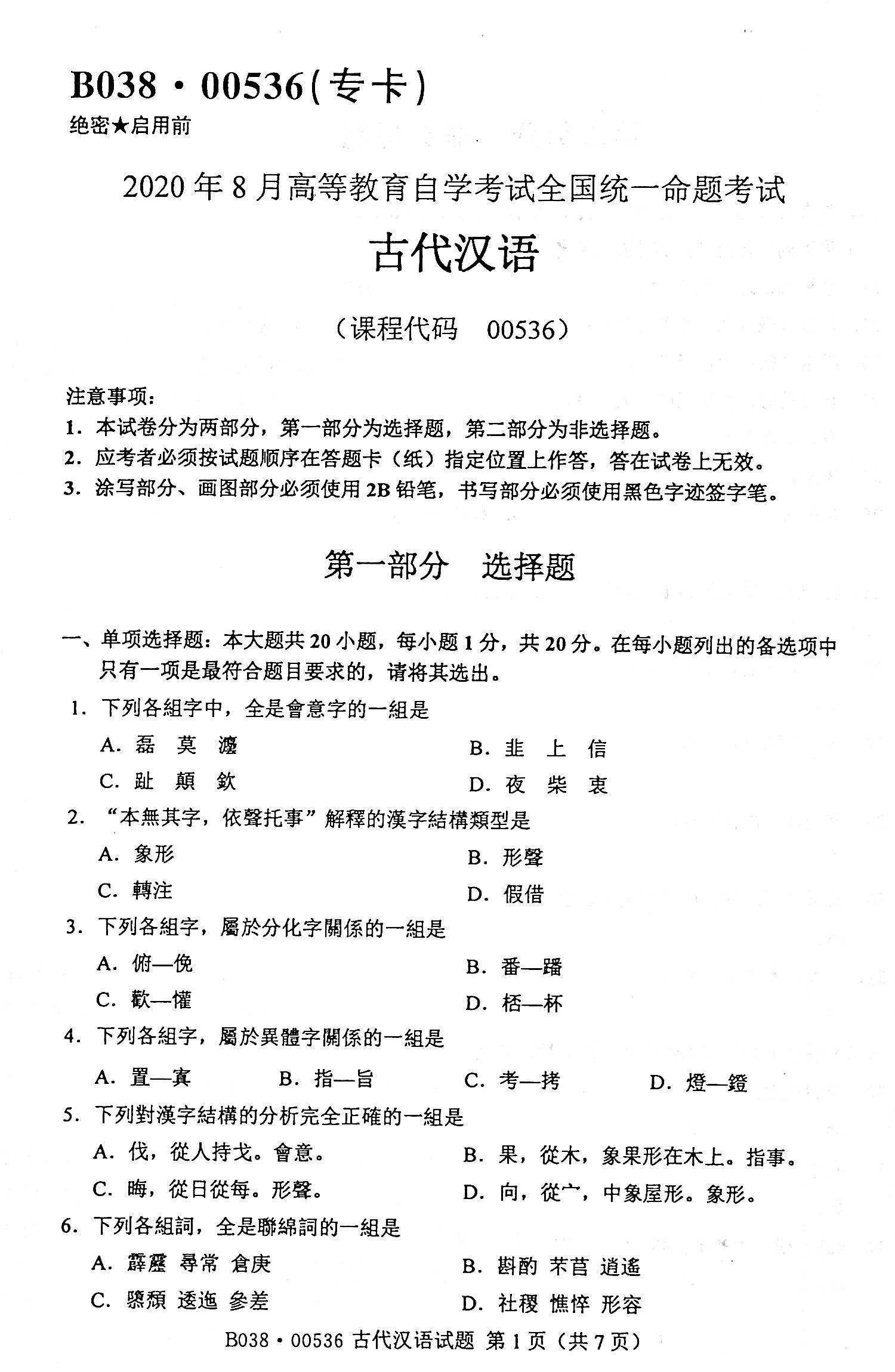 贵州省2020年08月自学考试00536古代汉语真题及答案