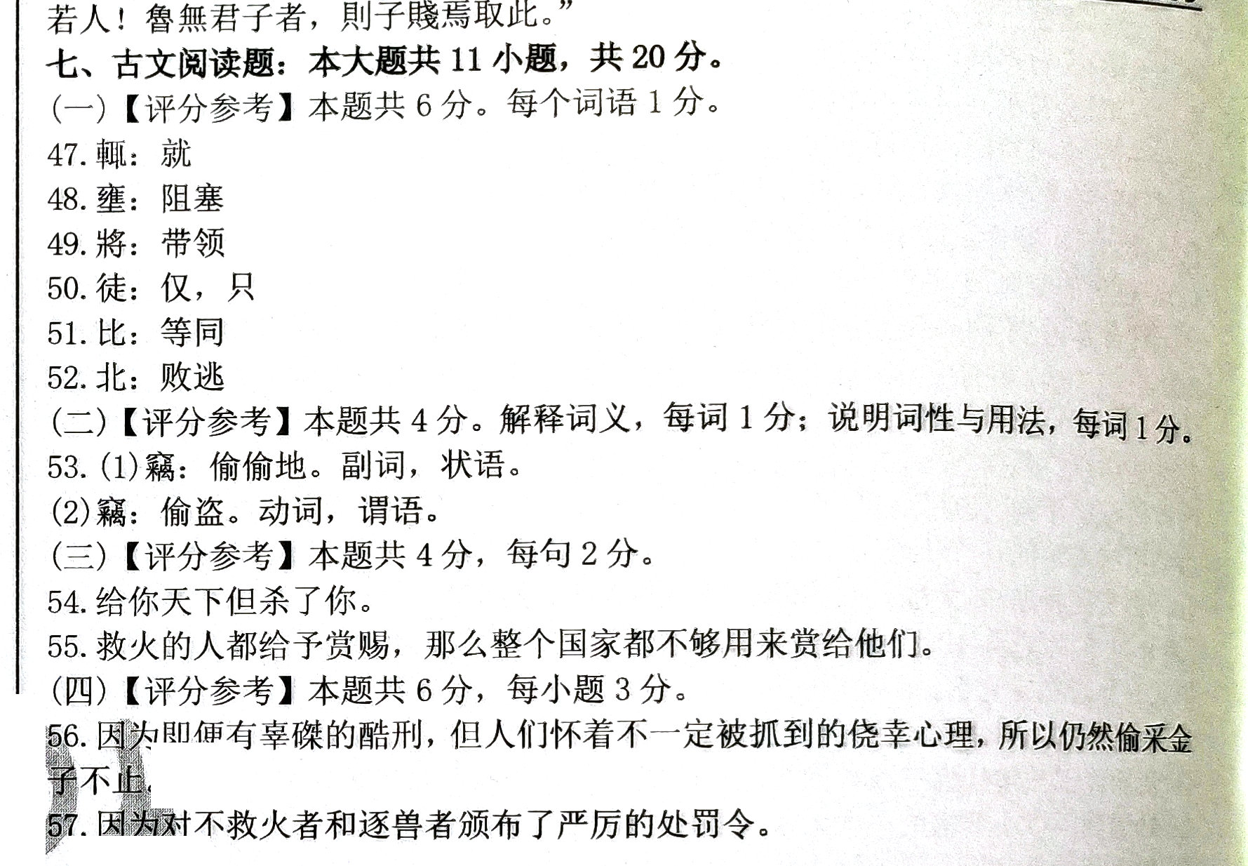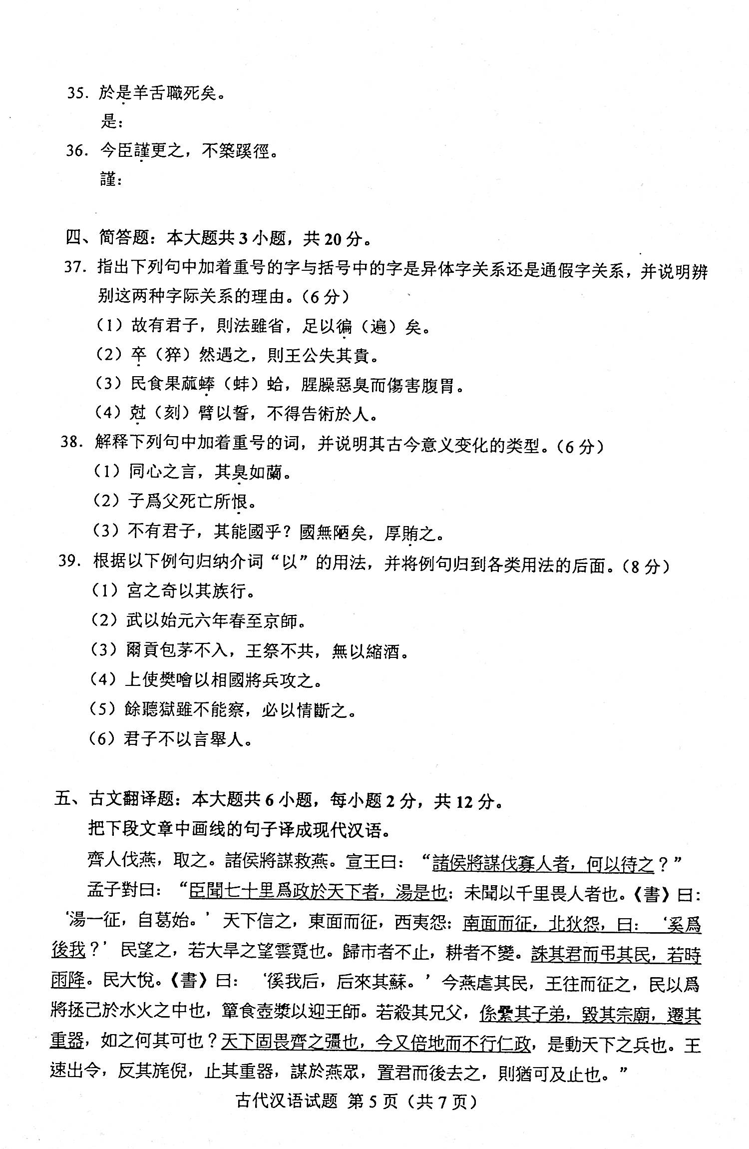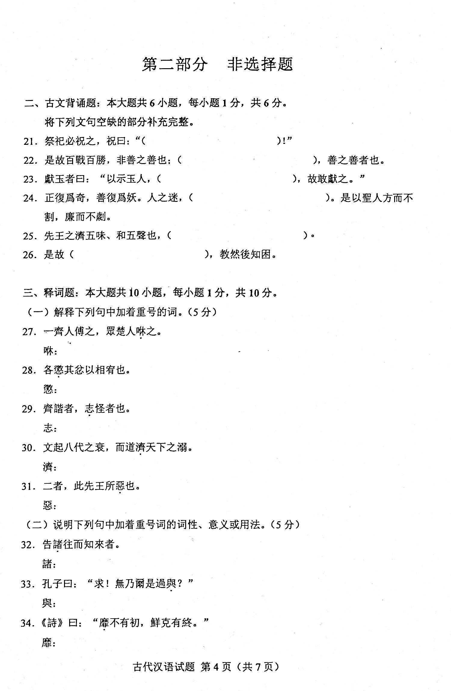 贵州省2020年08月自学考试00536古代汉语真题及答案