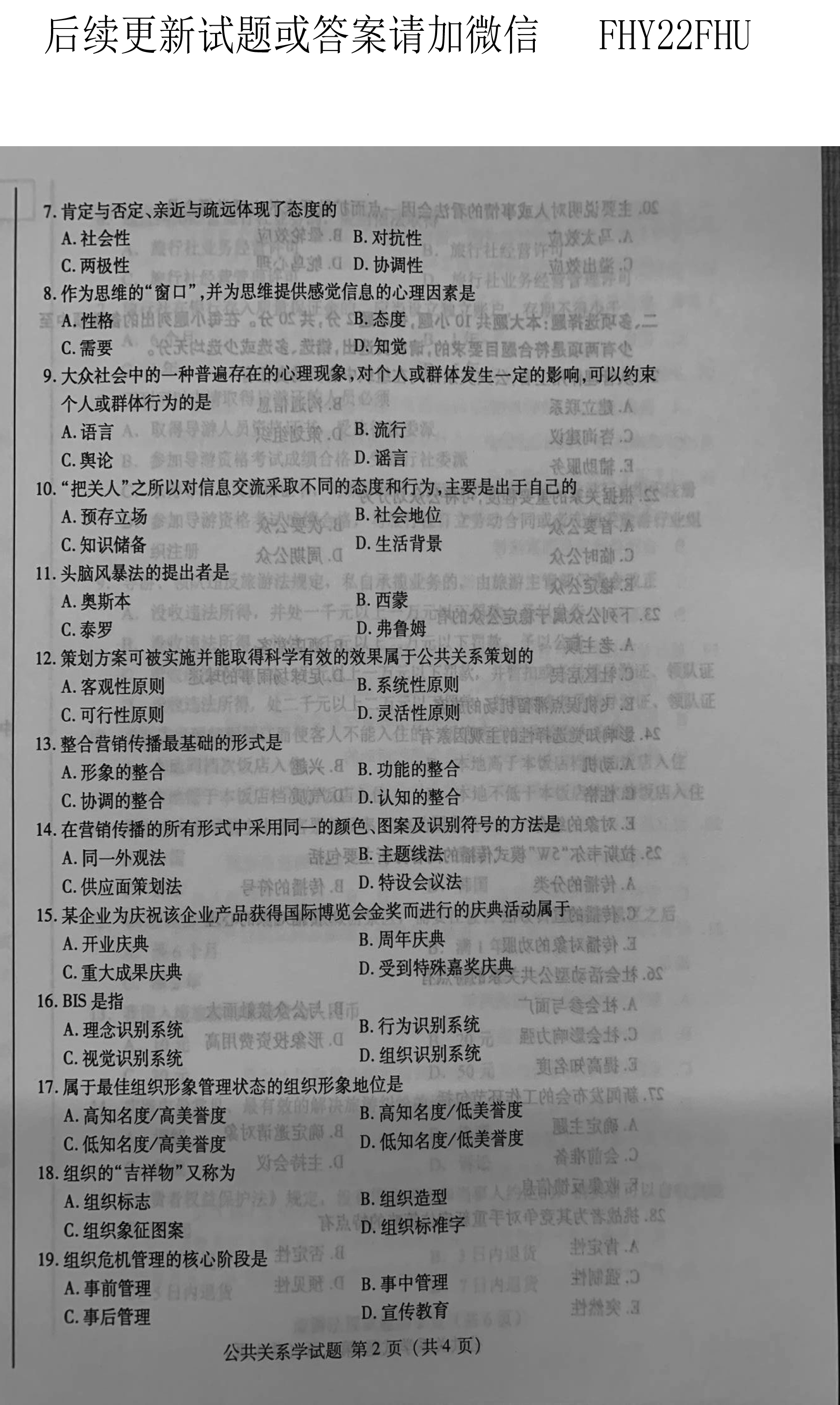 贵州省2019年10月自学考试00182公共关系学真题及答案