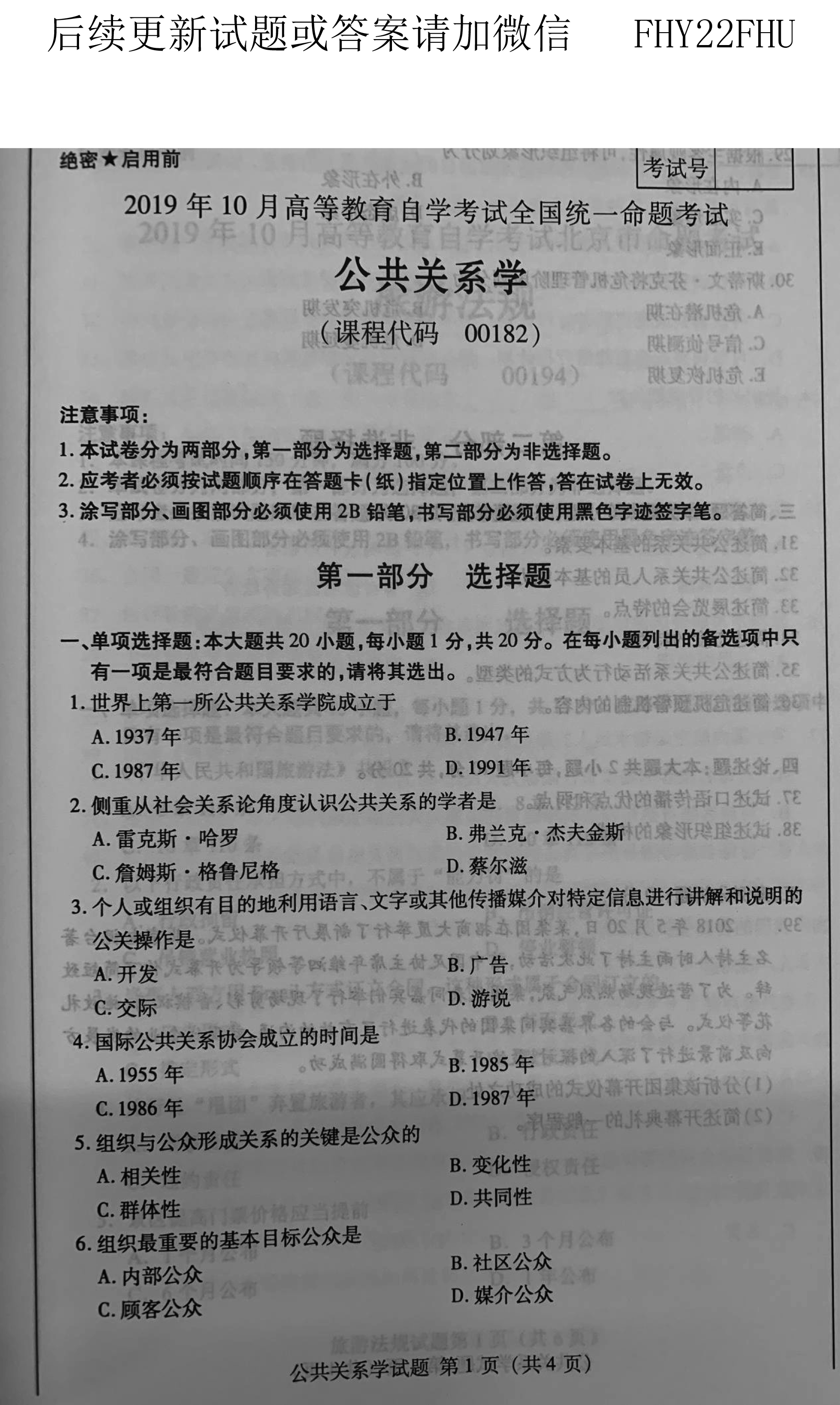 贵州省2019年10月自学考试网00182公共关系学真题及答案