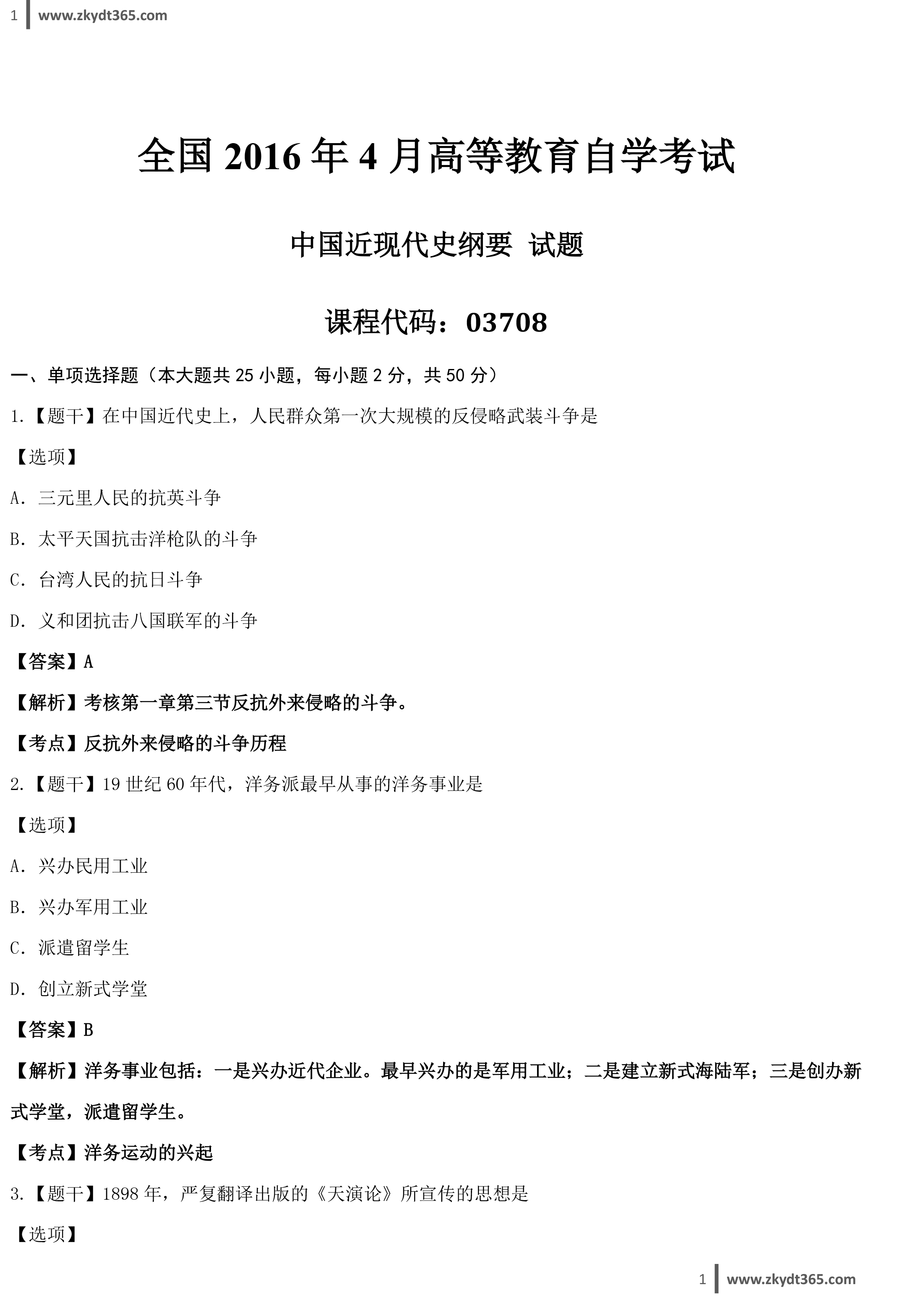 贵州省2016年04月自学考试03708《中国近现代史纲要》真题