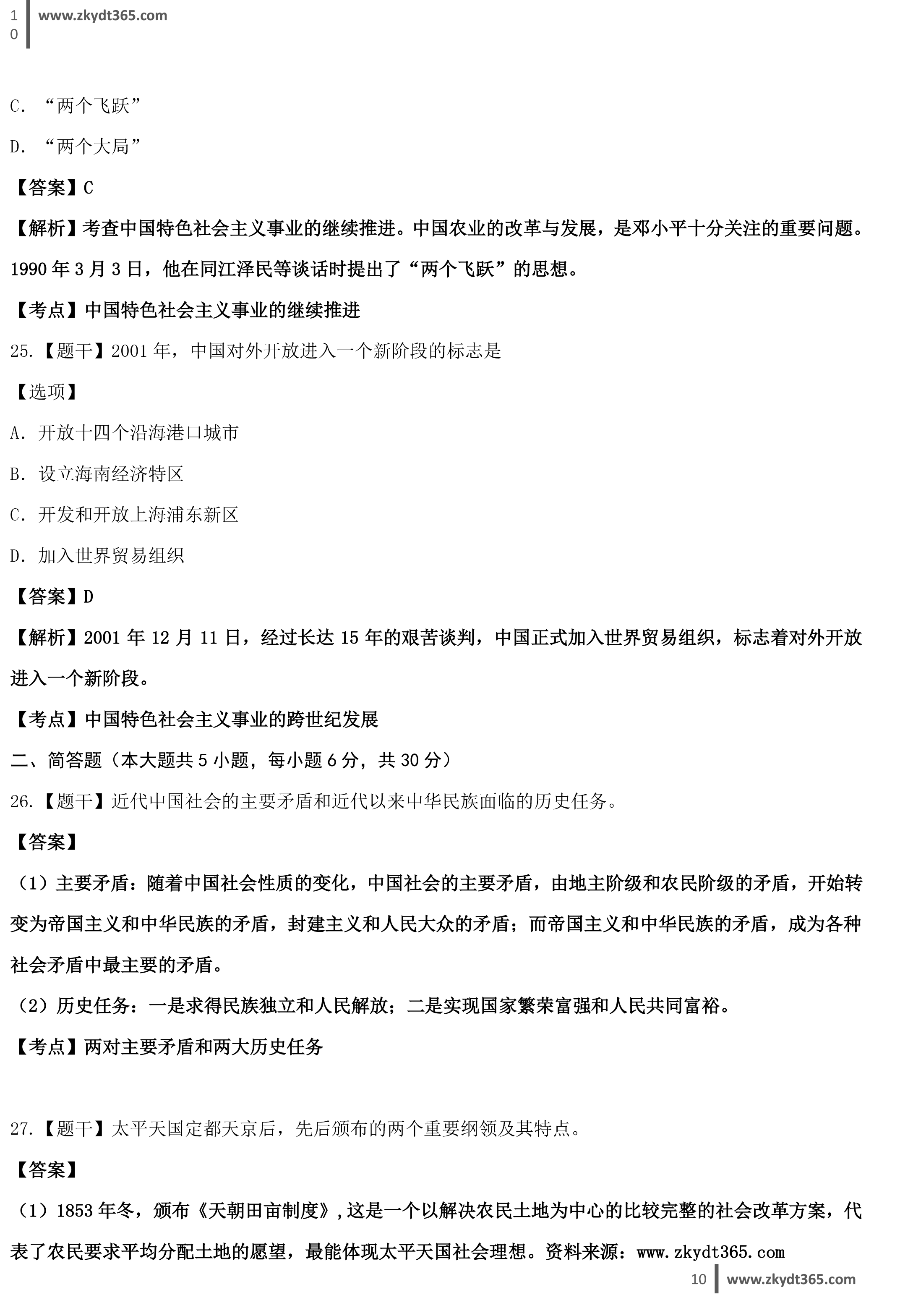 贵州省2016年04月自学考试03708《中国近现代史纲要》历年真题