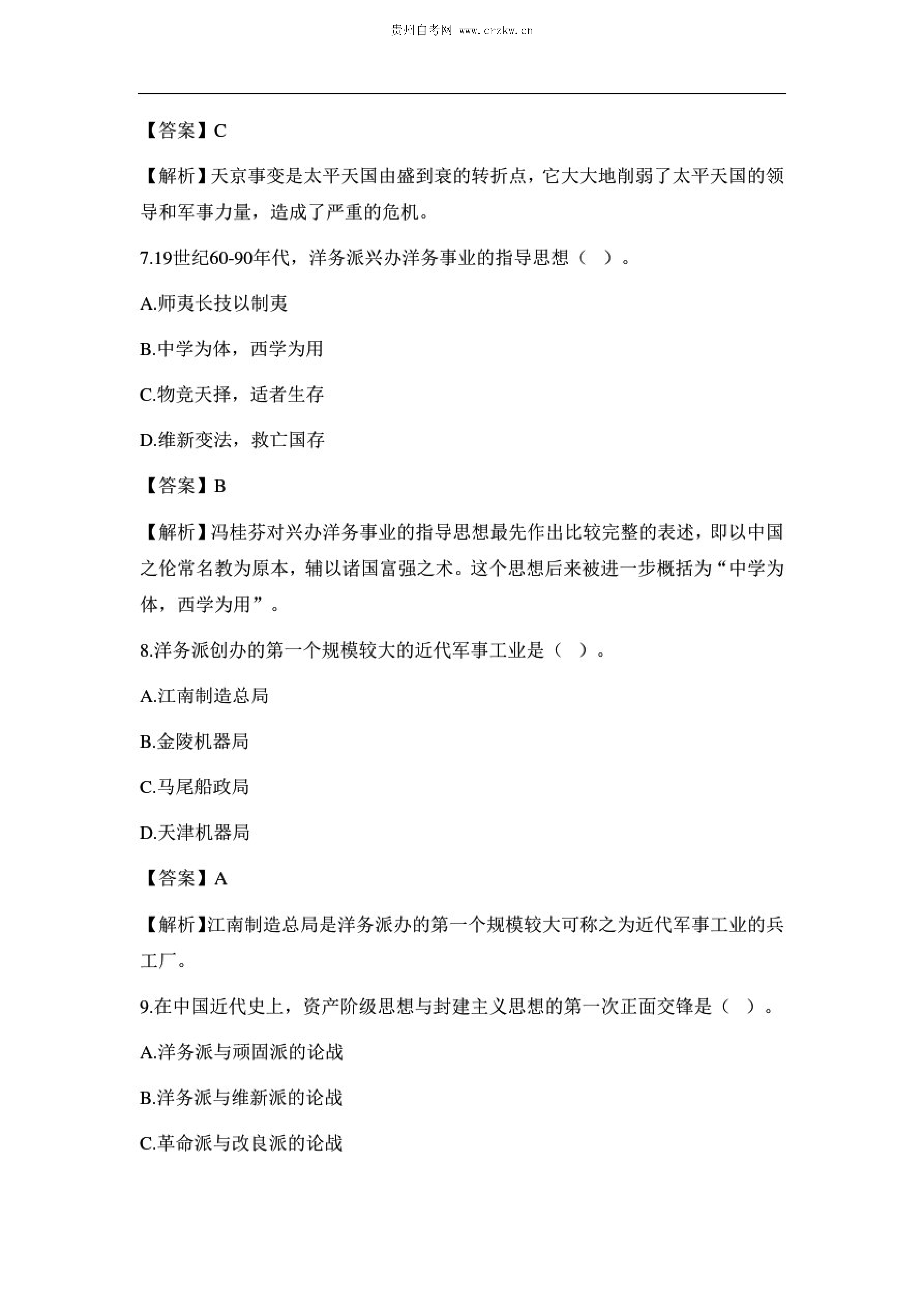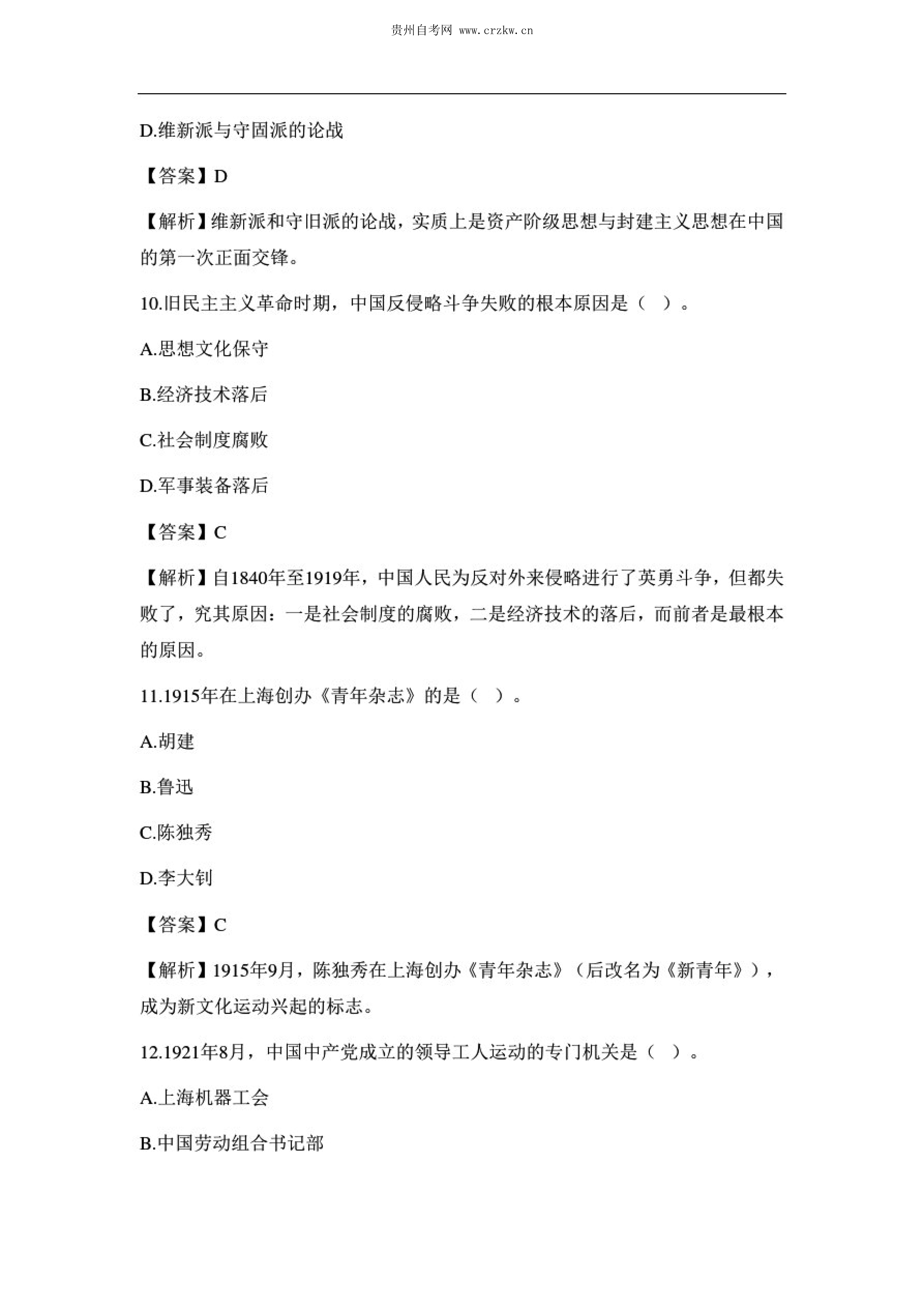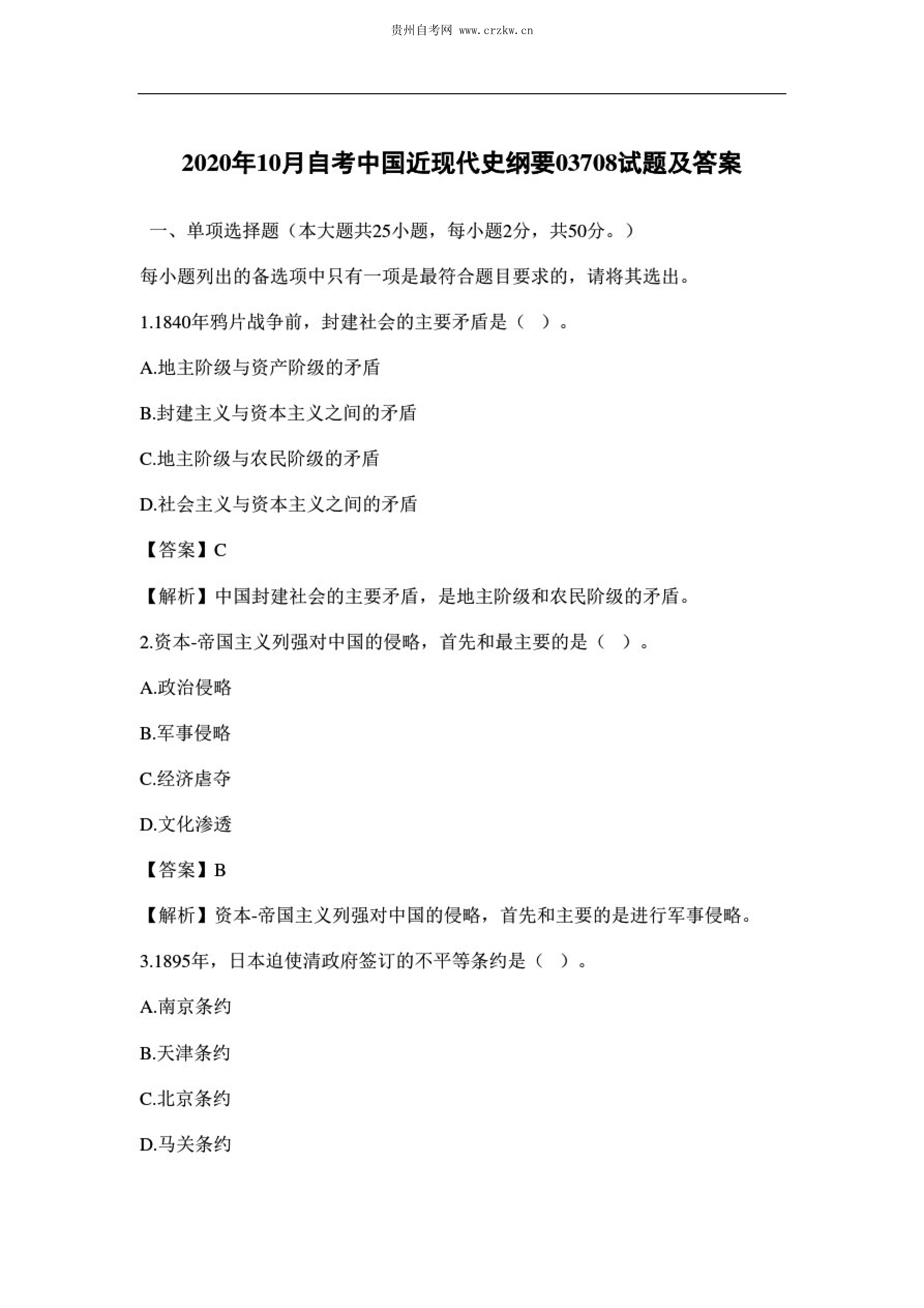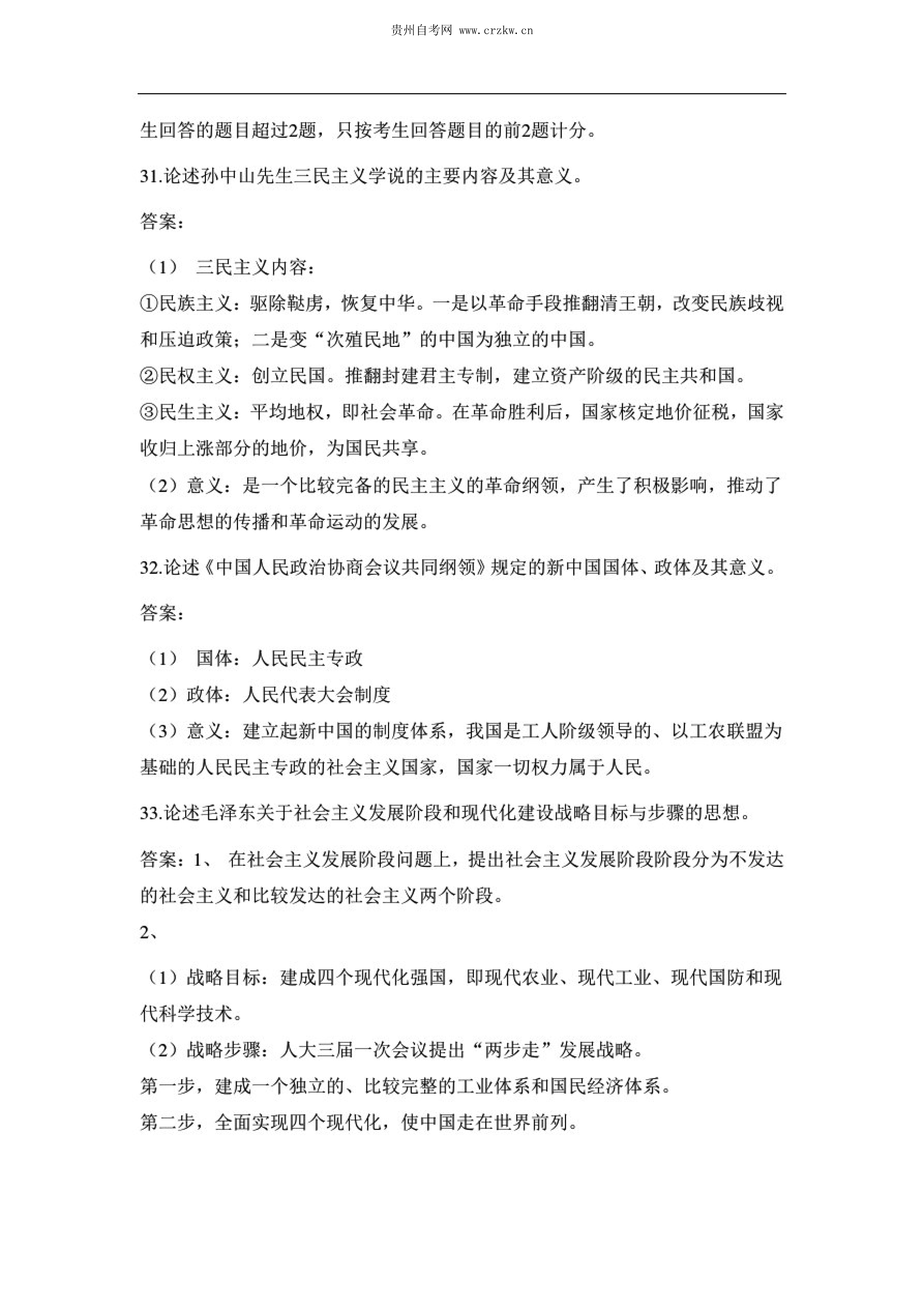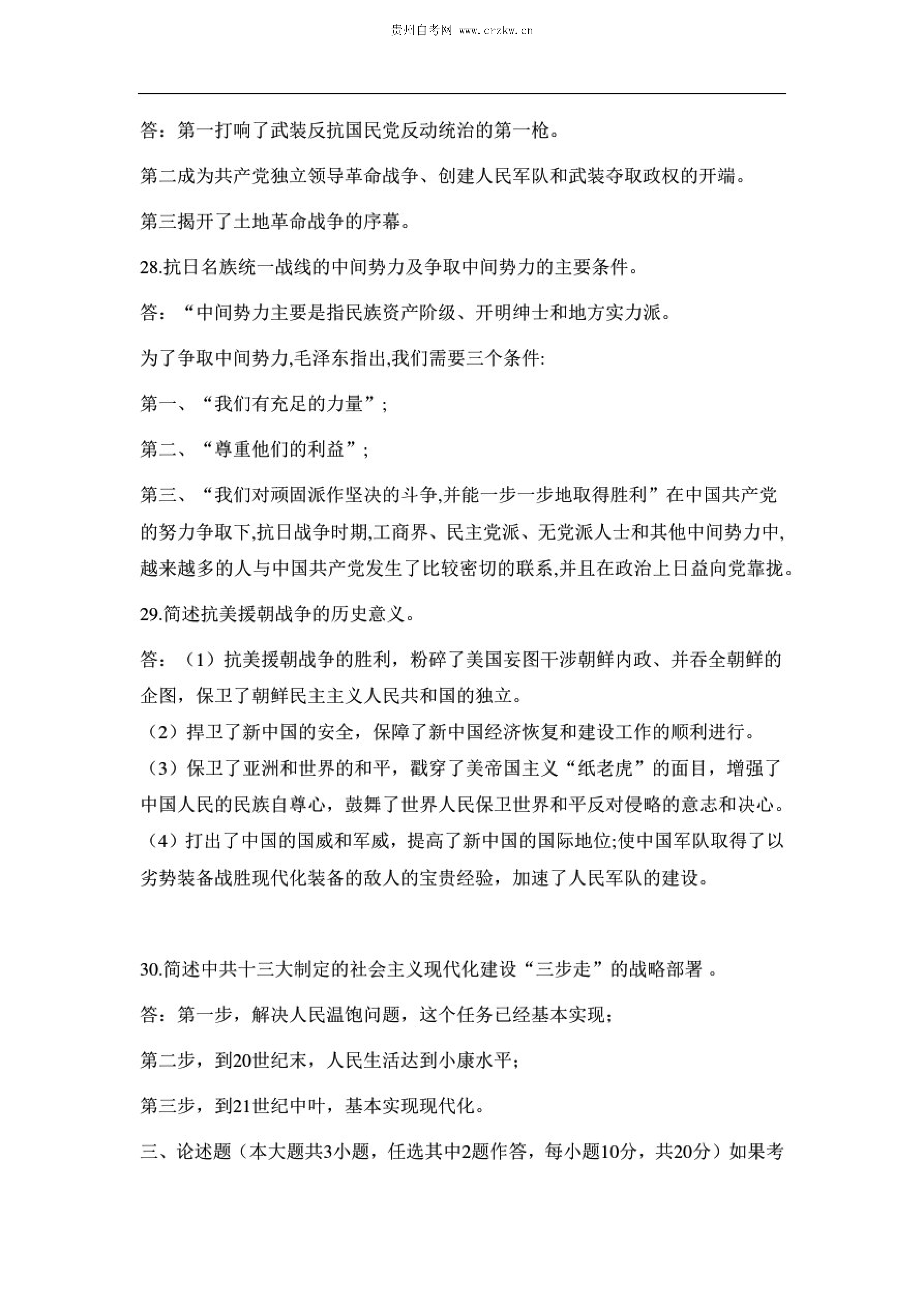 贵州省2020年10月自考中国近现代史纲要03708试题及答案