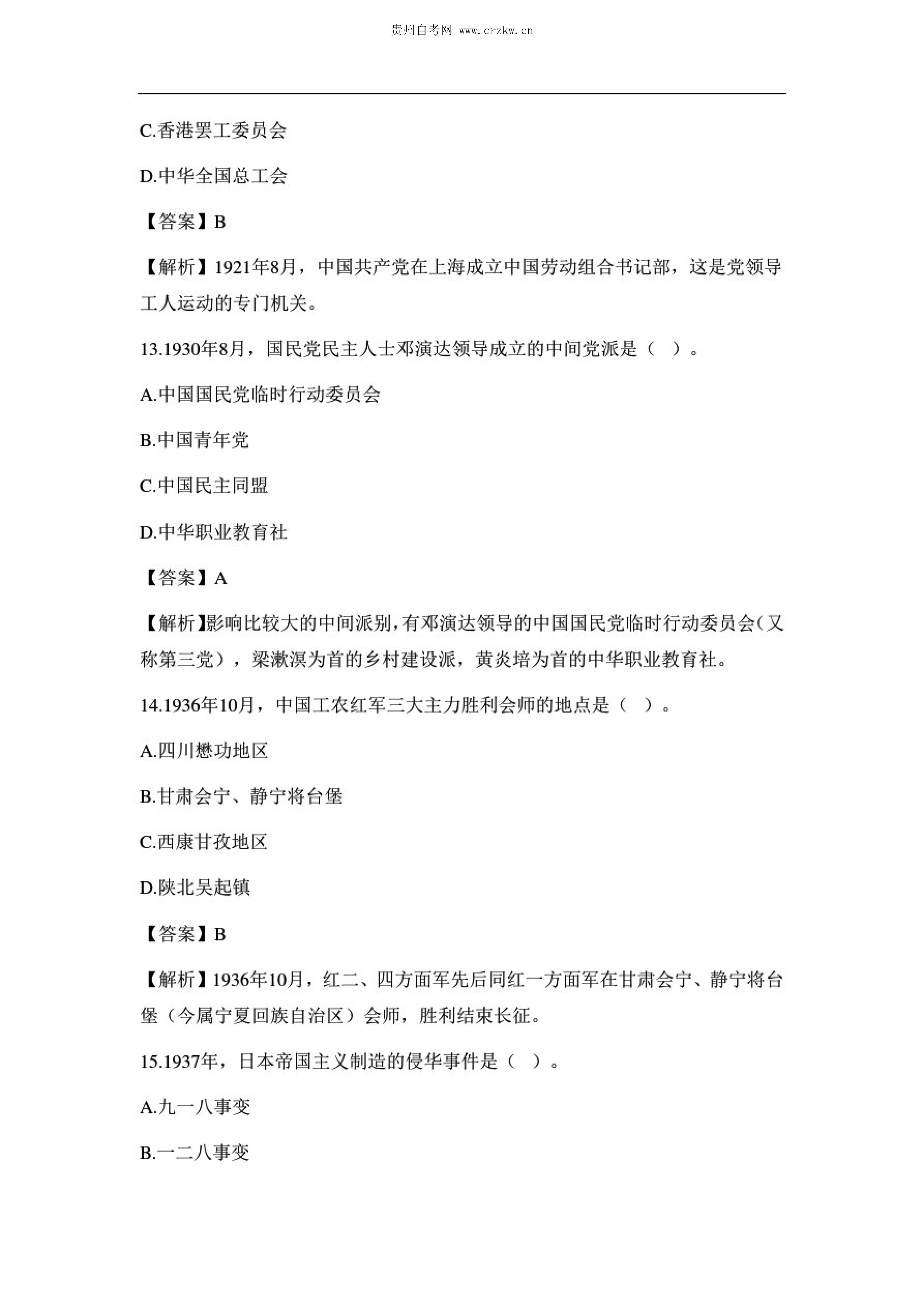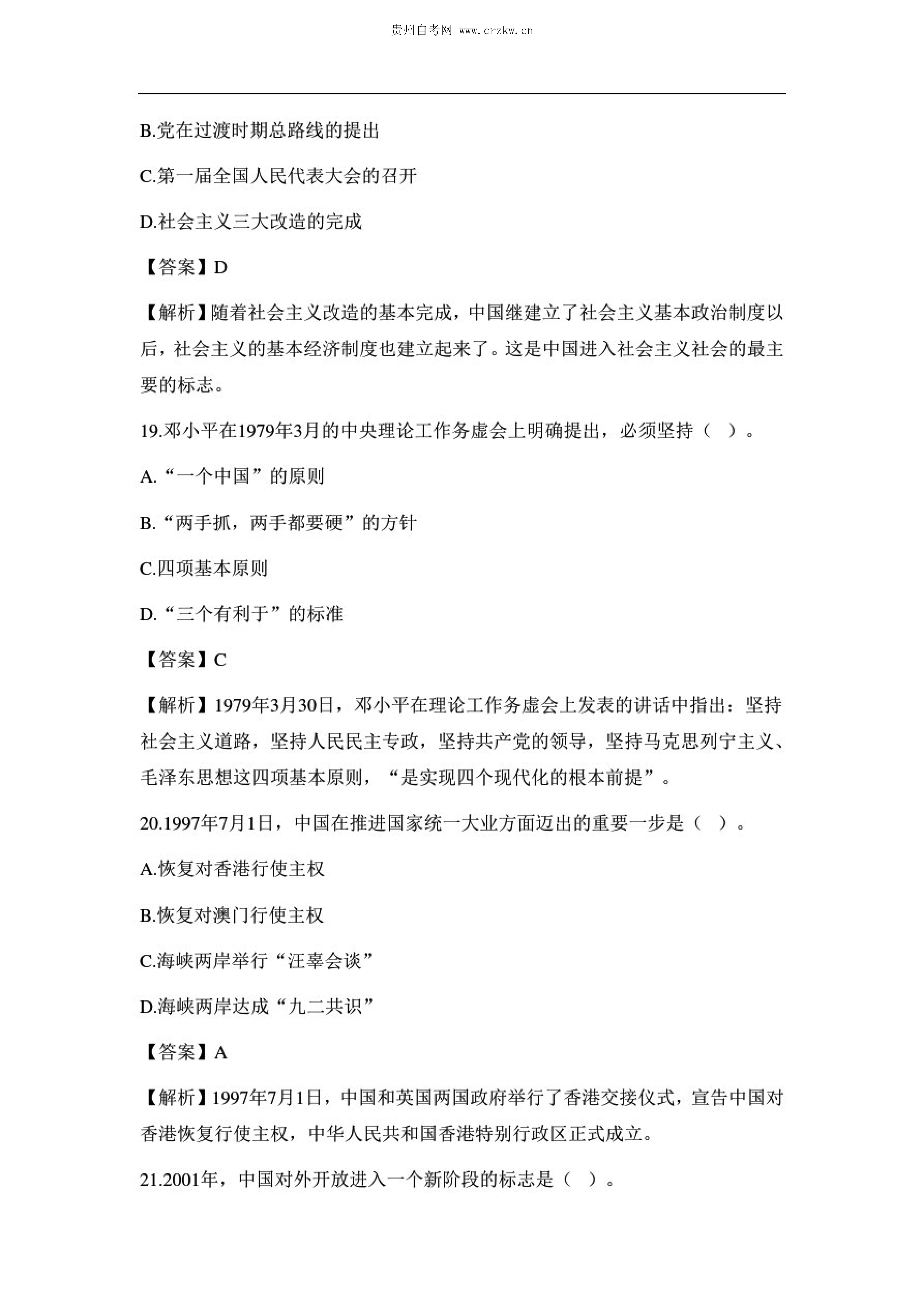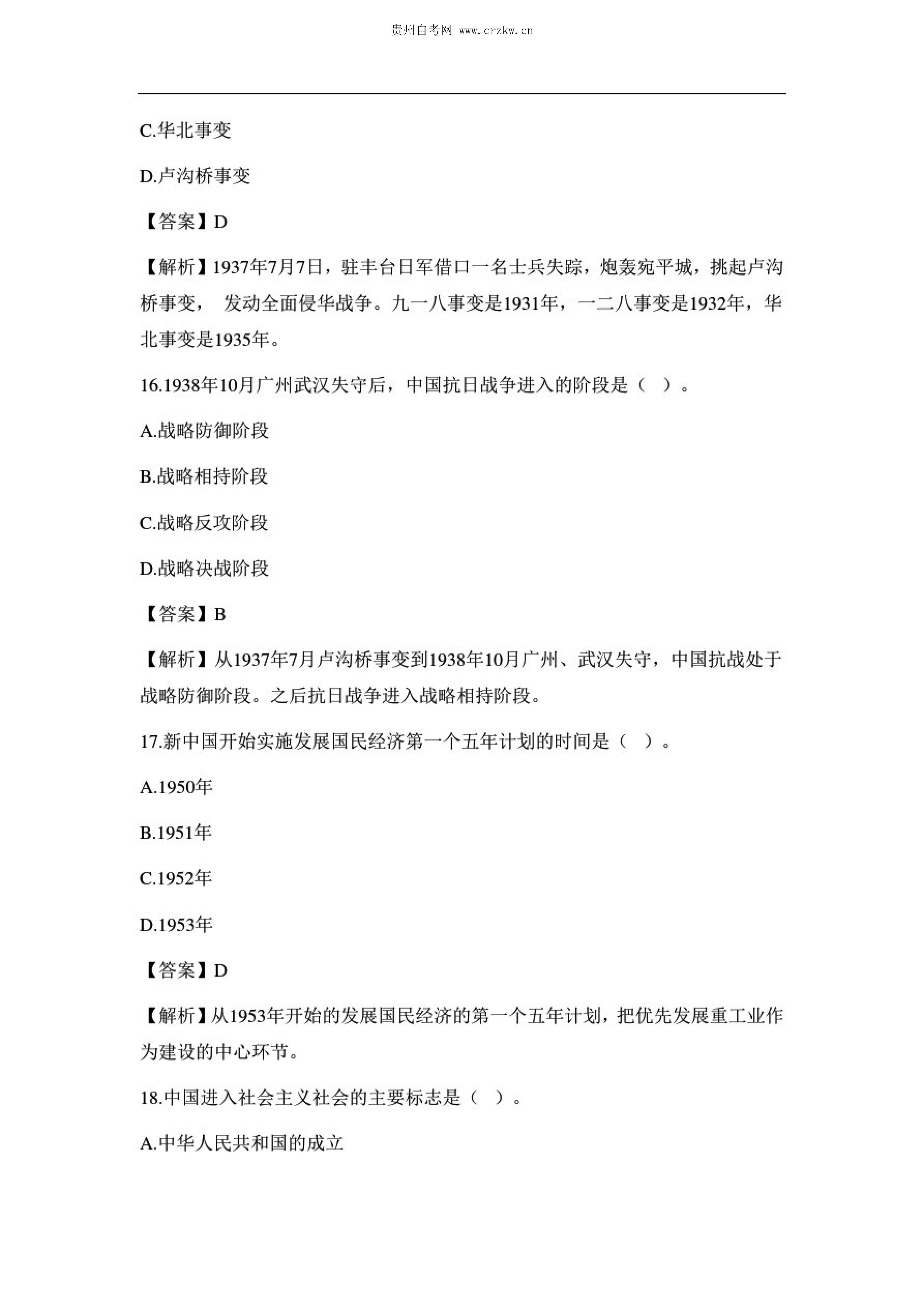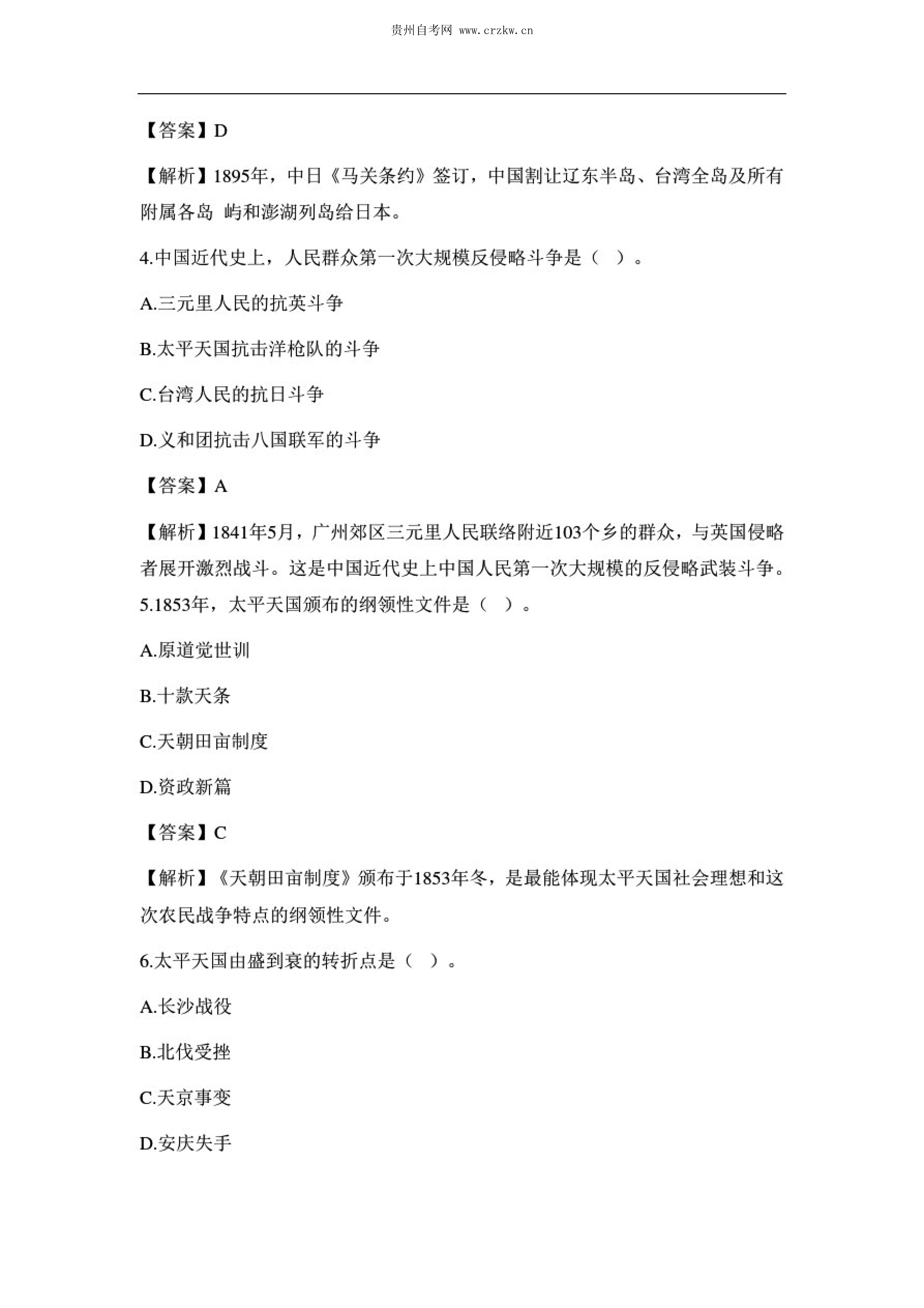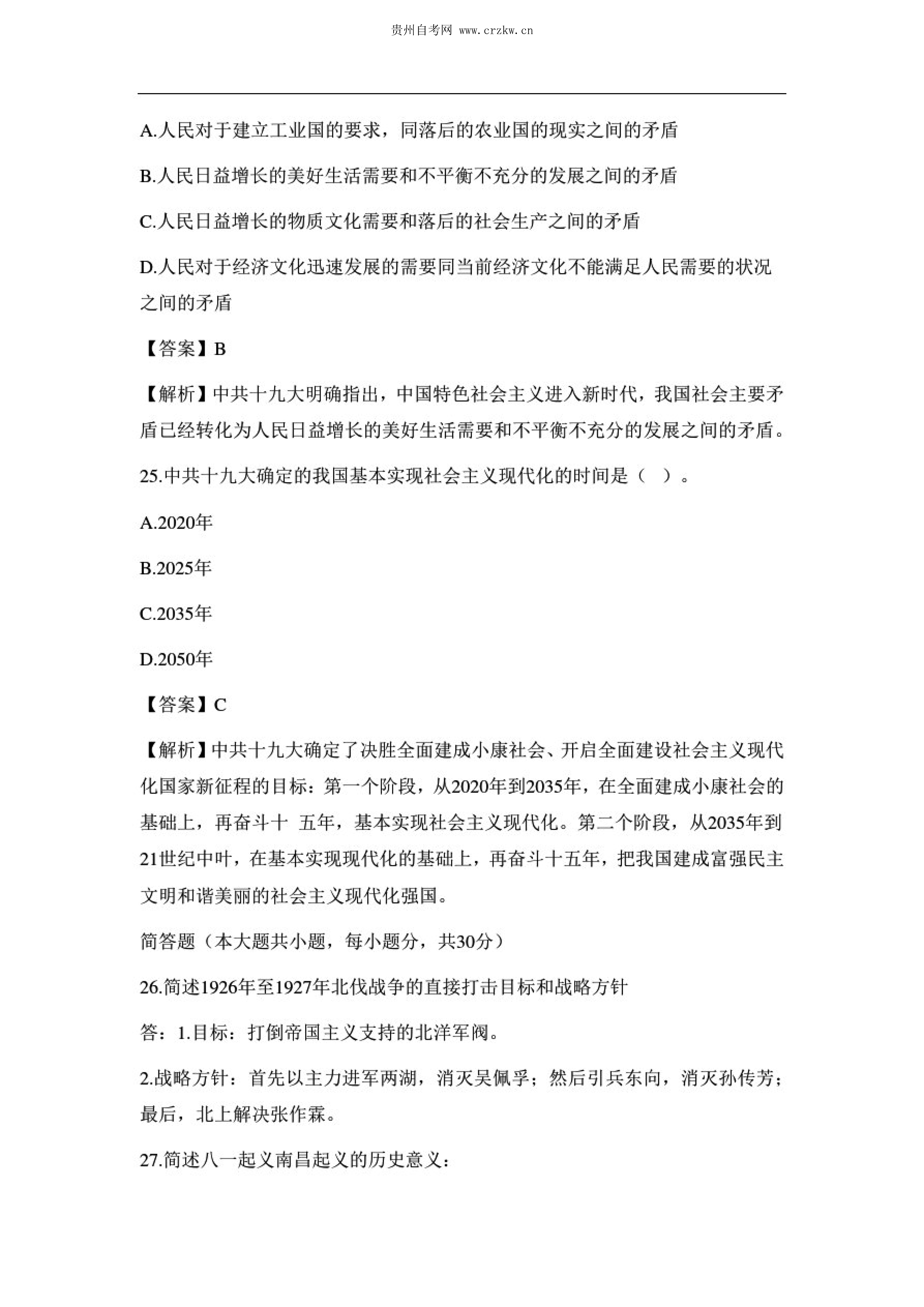 贵州省2020年10月自考中国近现代史纲要03708试题及答案