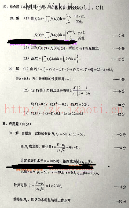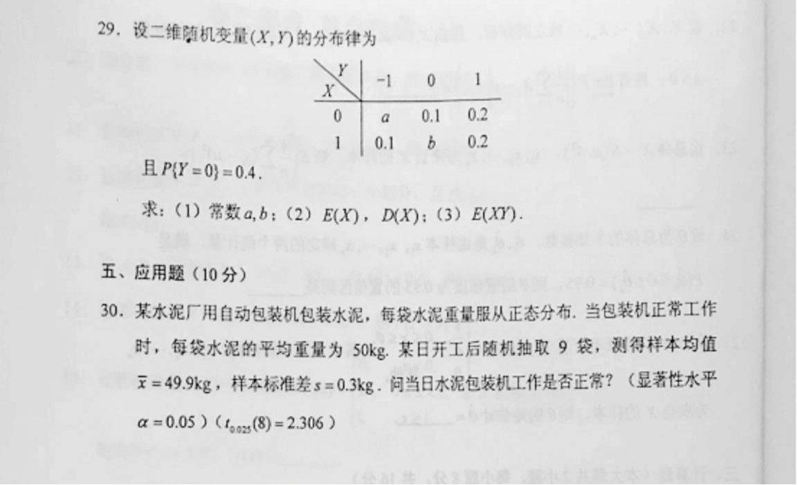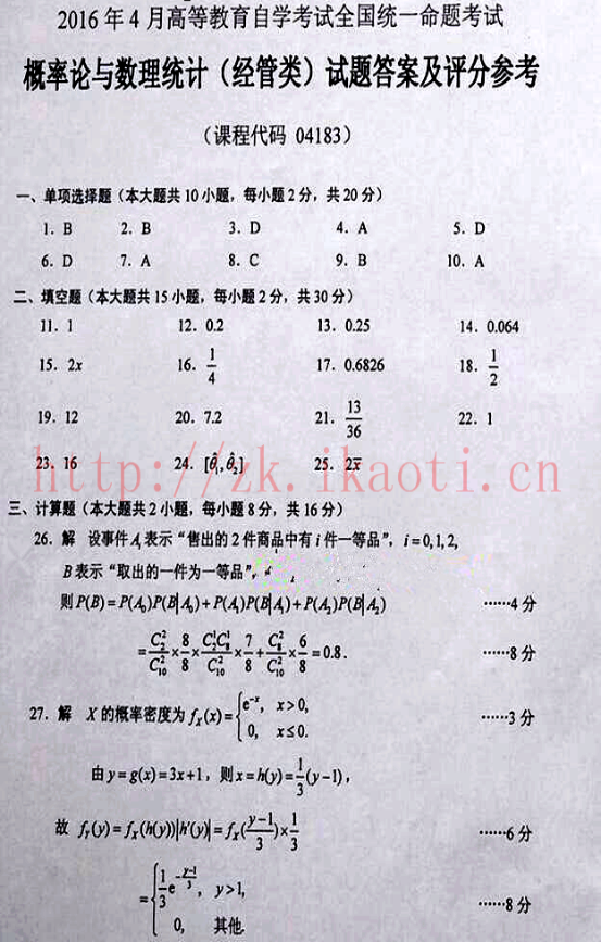 2016年04月贵州自考04183概率论与数理统计(经管类)真题及答案
