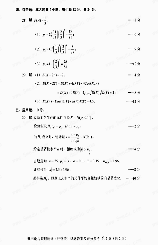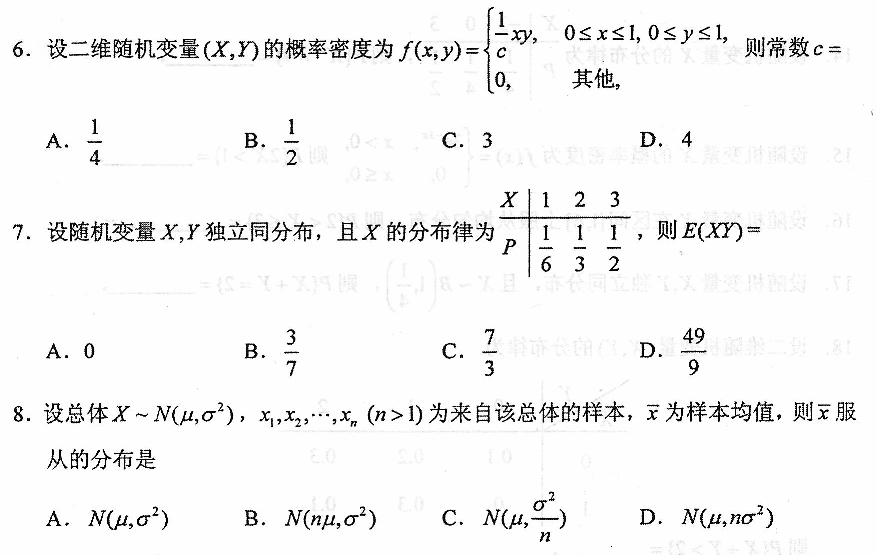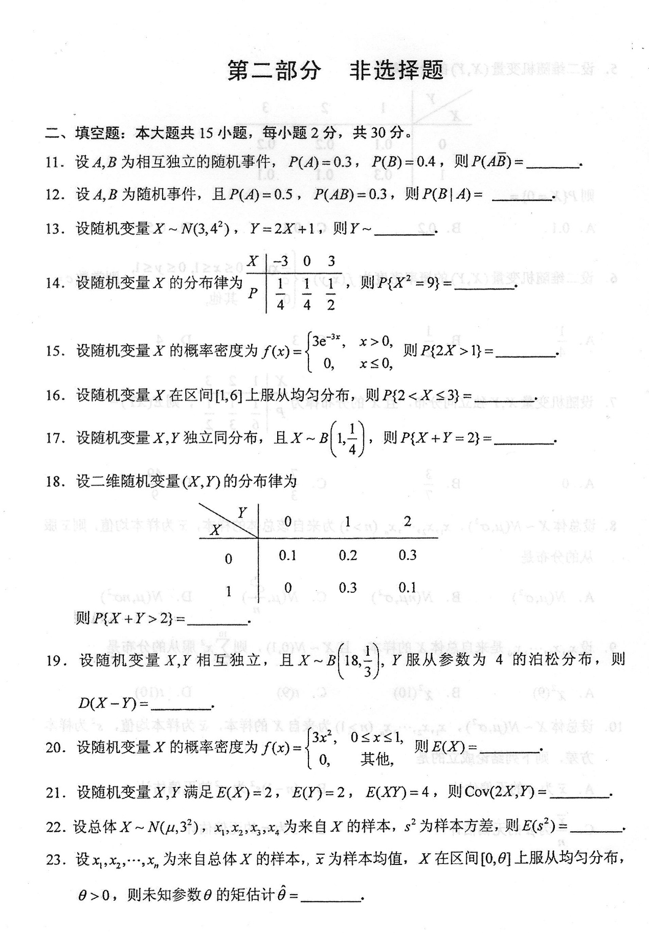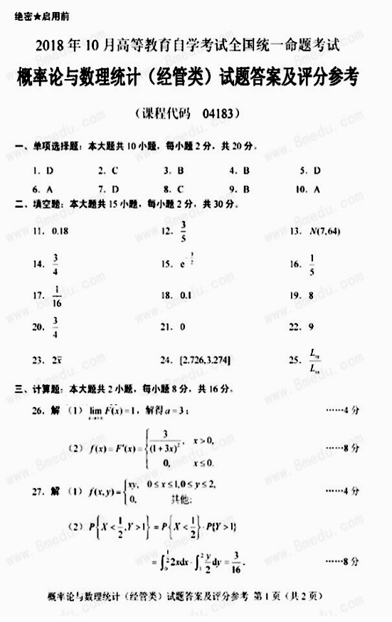 2018年10月贵州自考04183概率论与数理统计(经管类)真题及答案