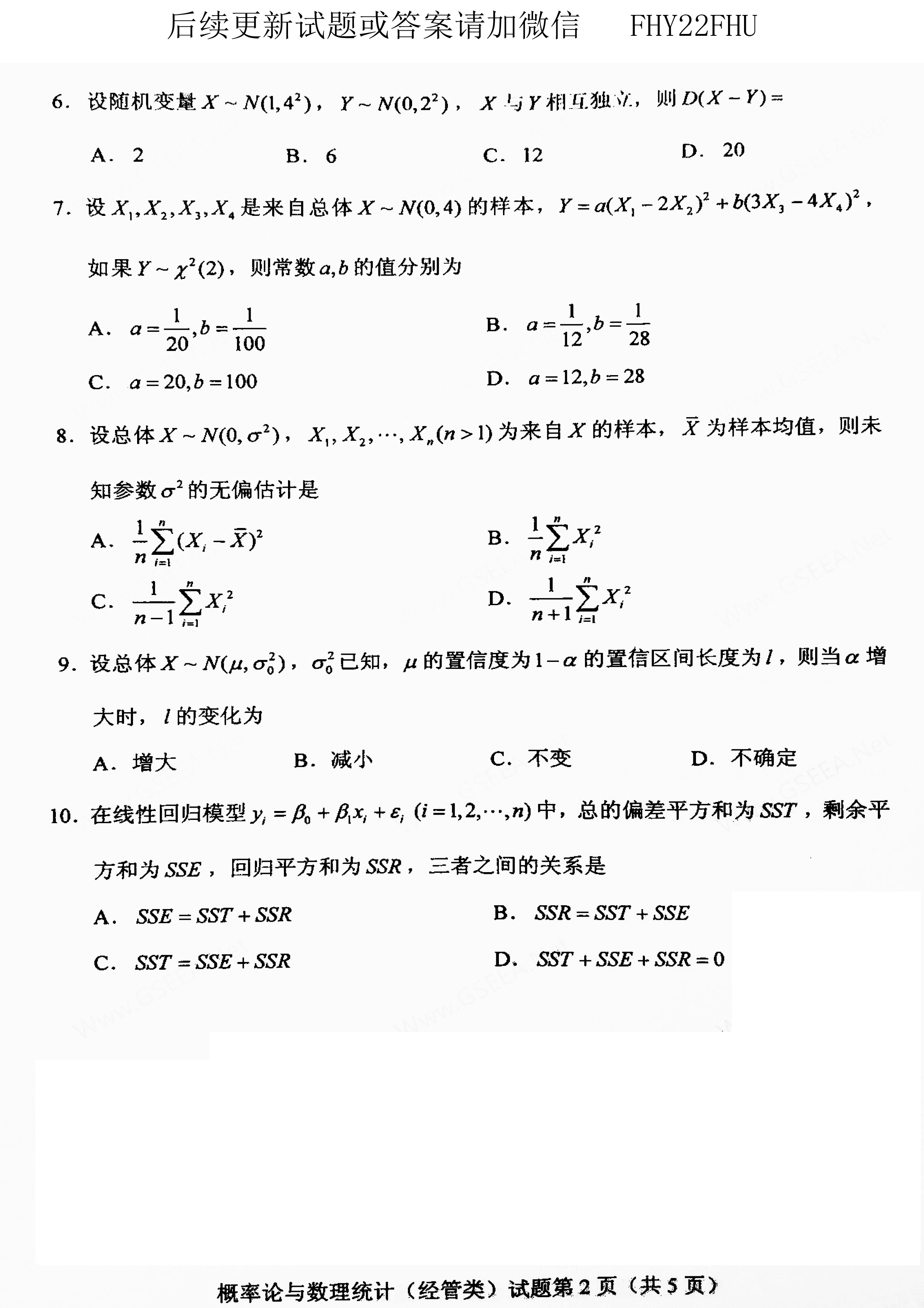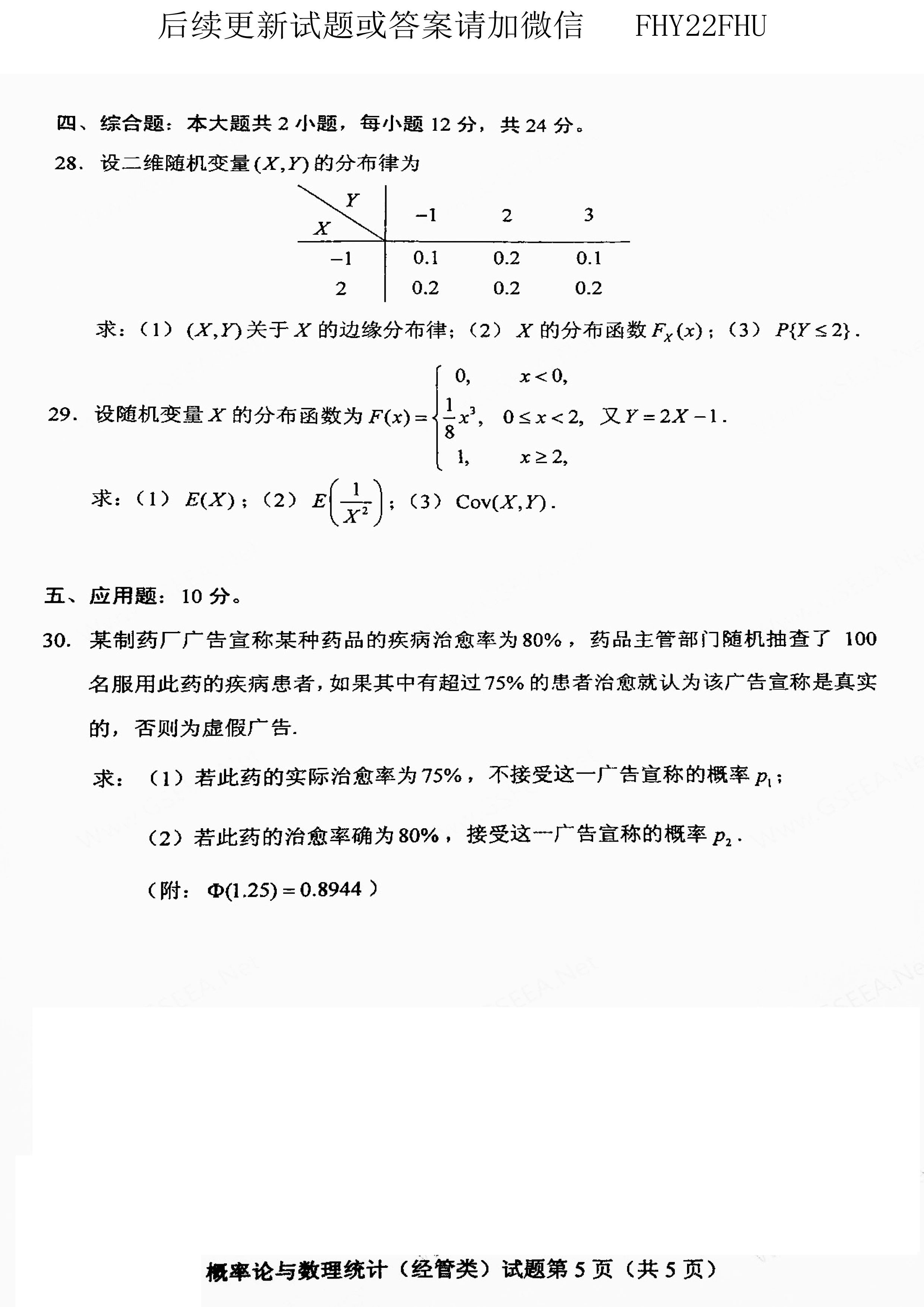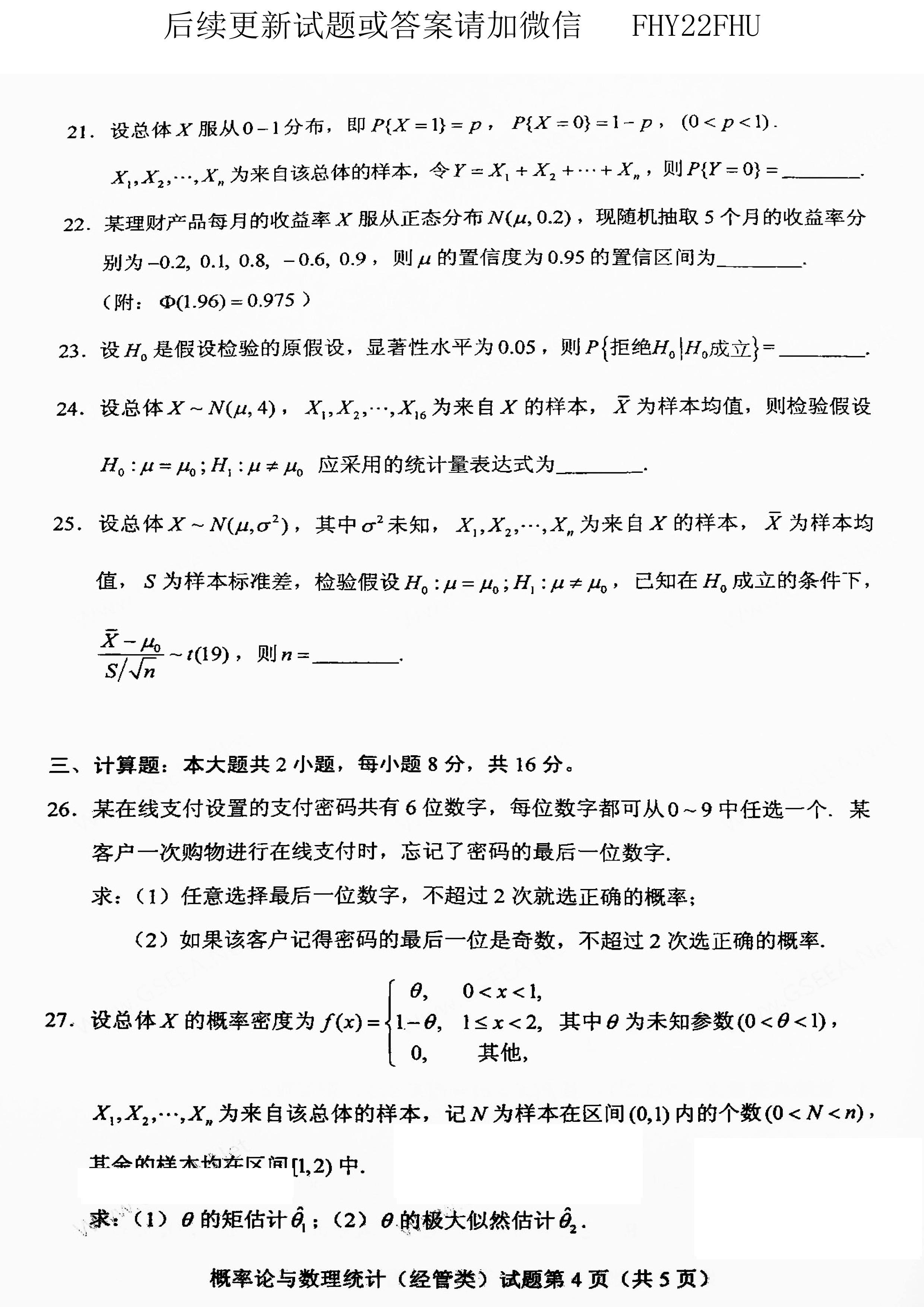 2021年04月贵州自考04183概率论与数理统计(经管类)真题及答案