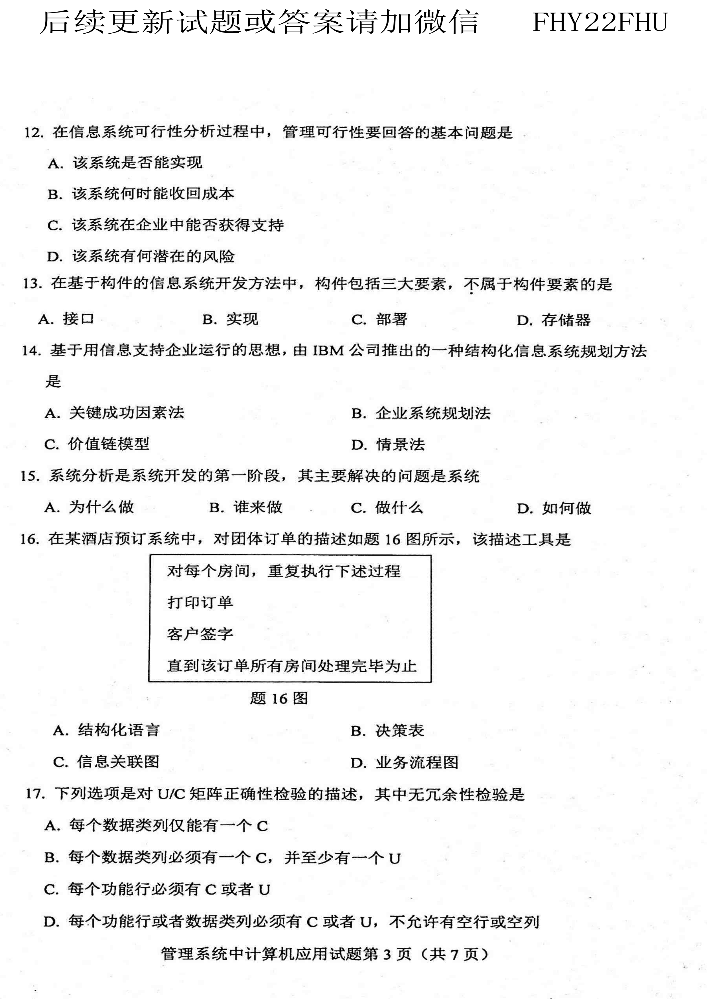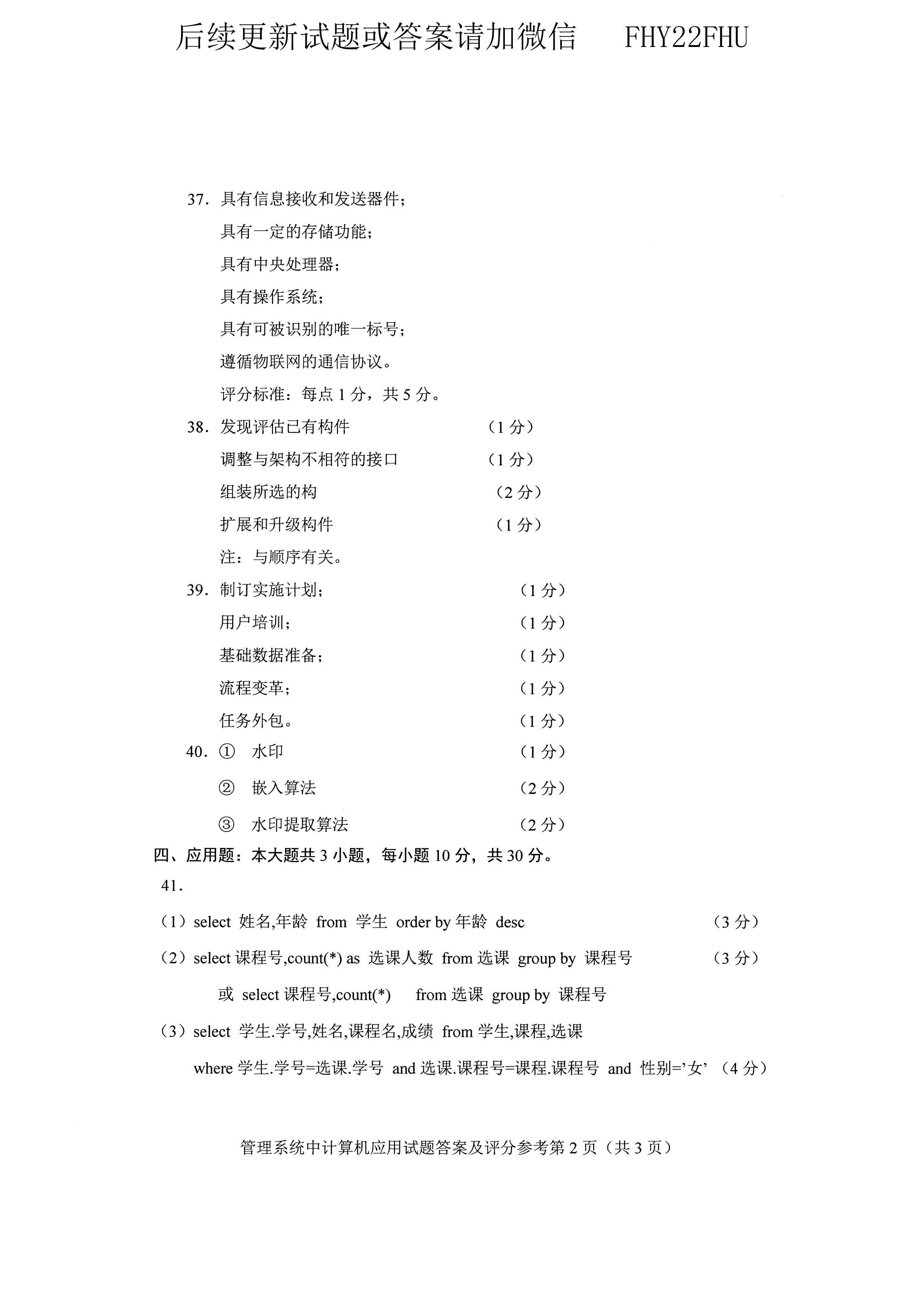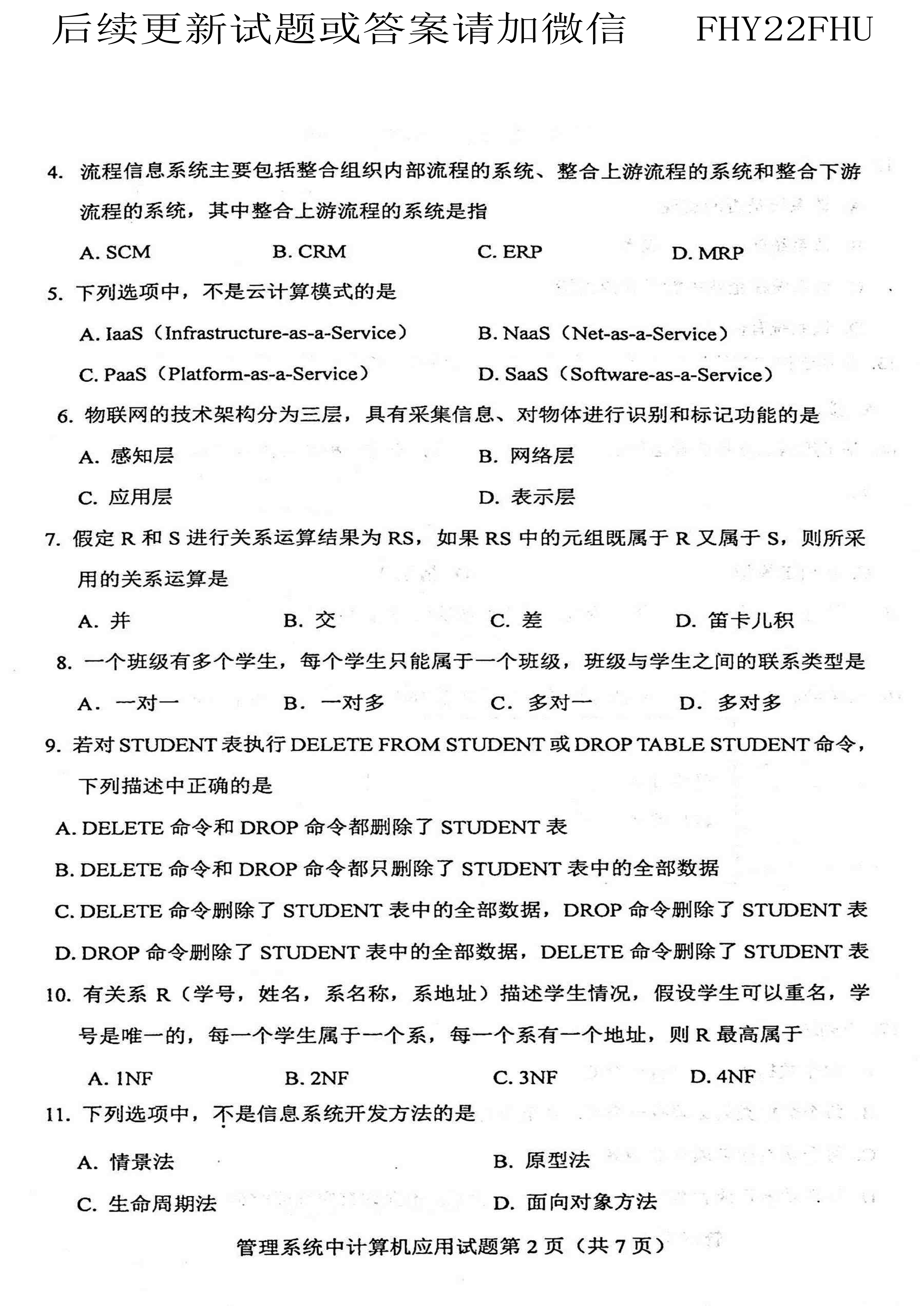 2020年10月贵州自考00051管理系统中计算机应用真题及答案