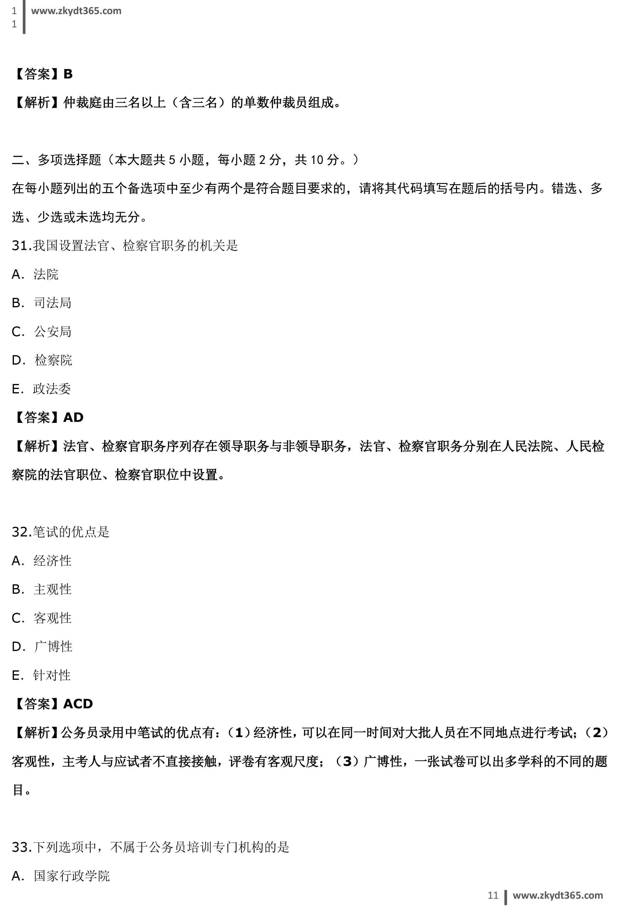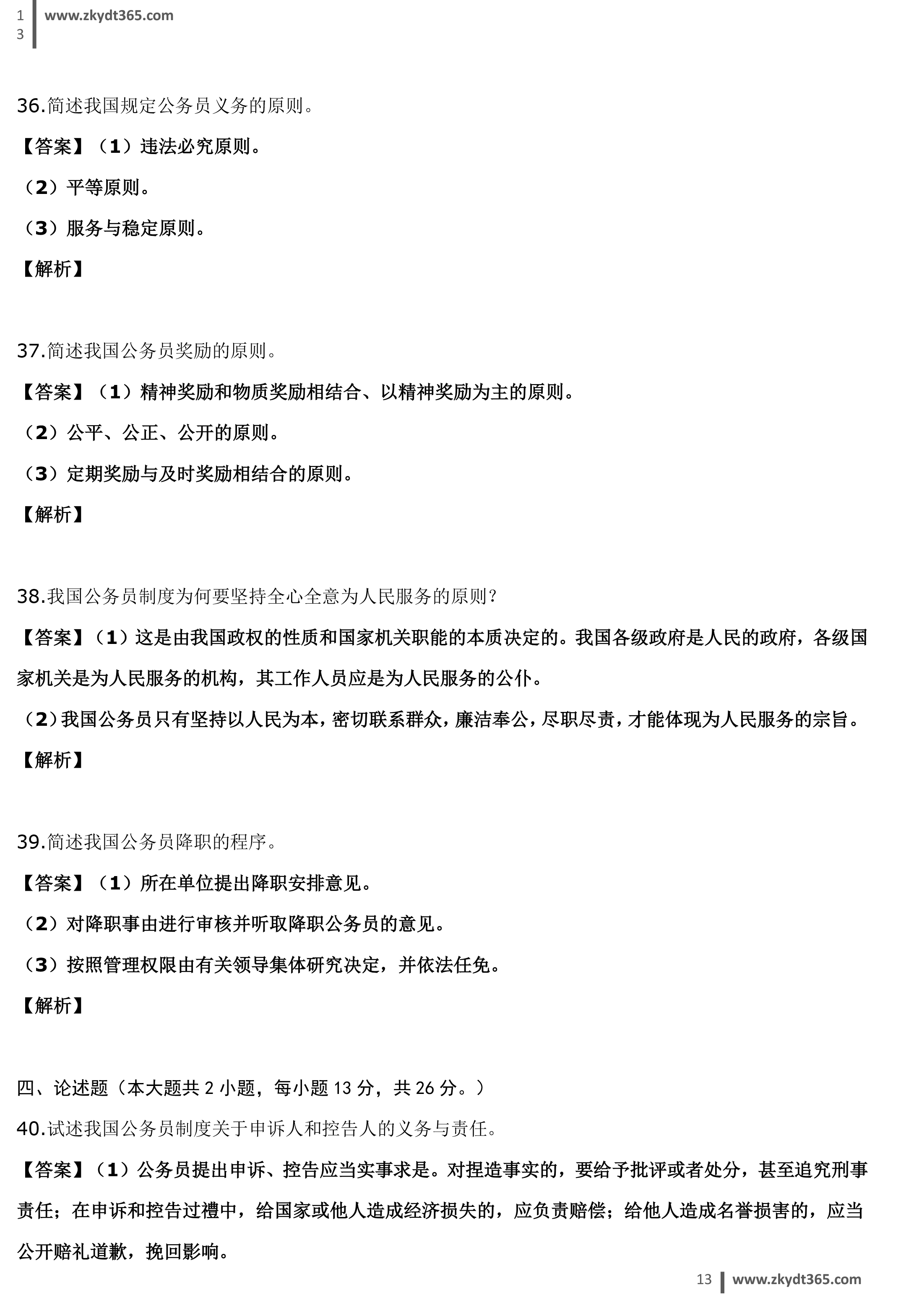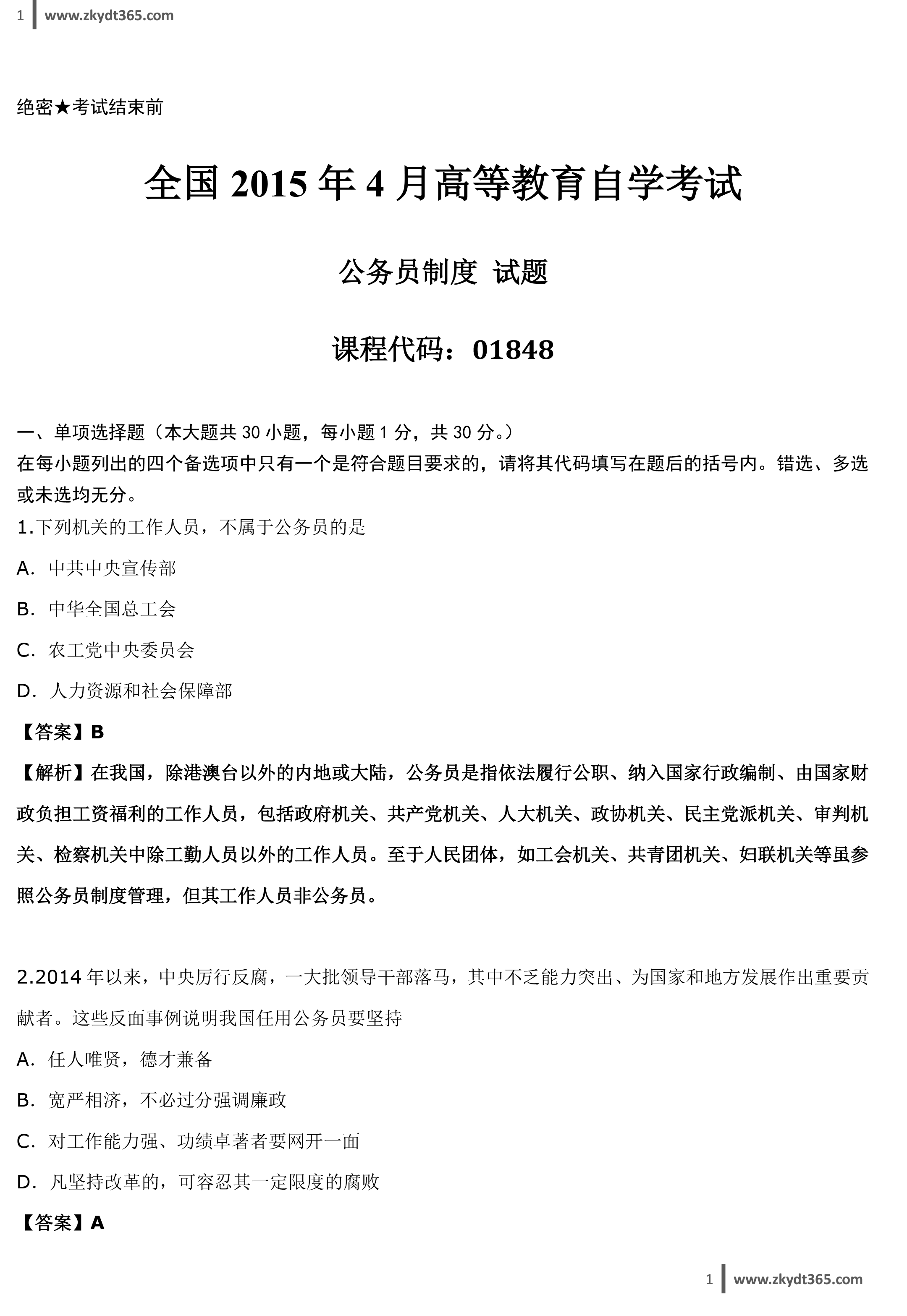 贵州省2015年04月自学考试01848《公务员制度》历年真题答案