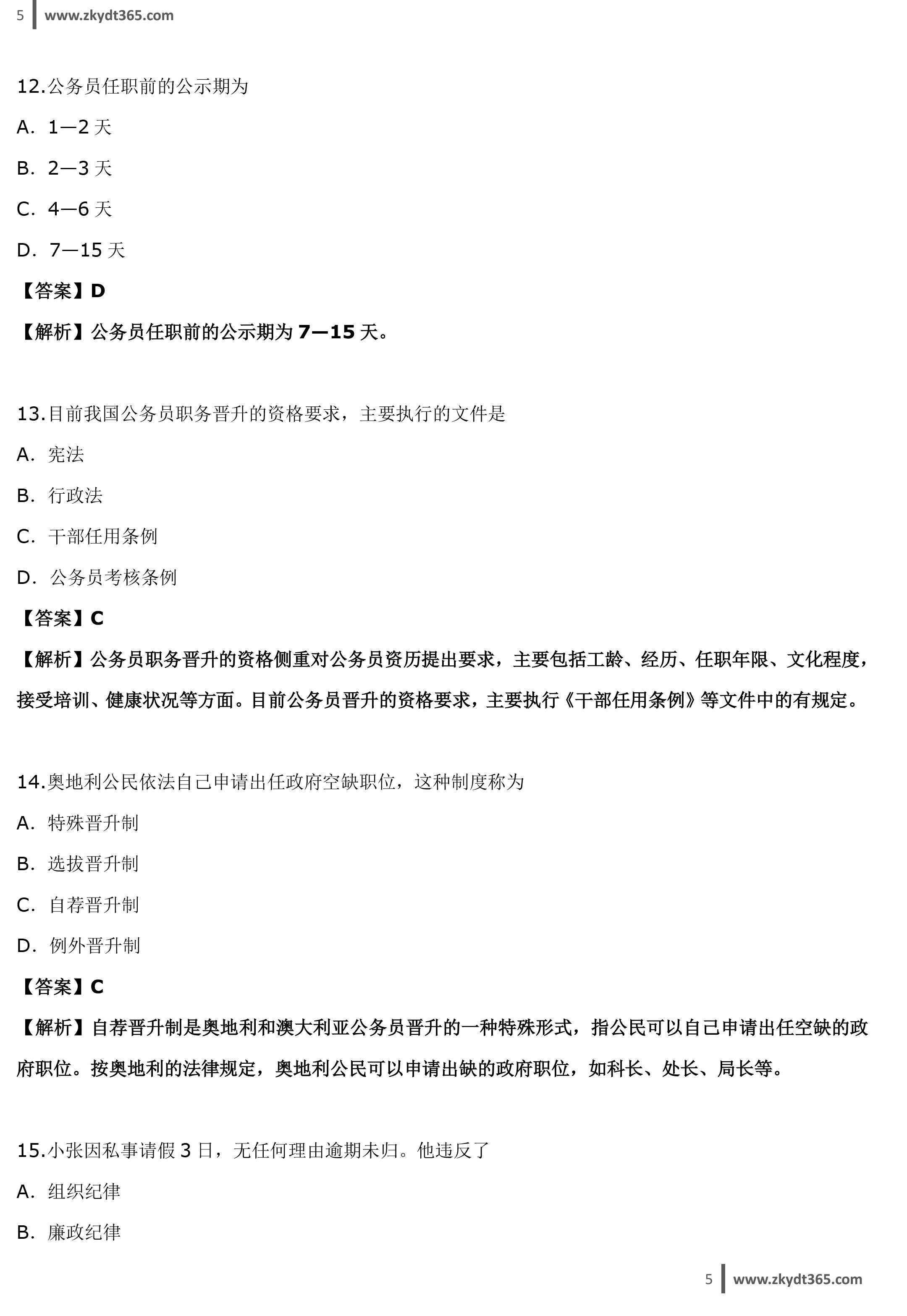贵州省2015年04月自学考试01848《公务员制度》真题答案