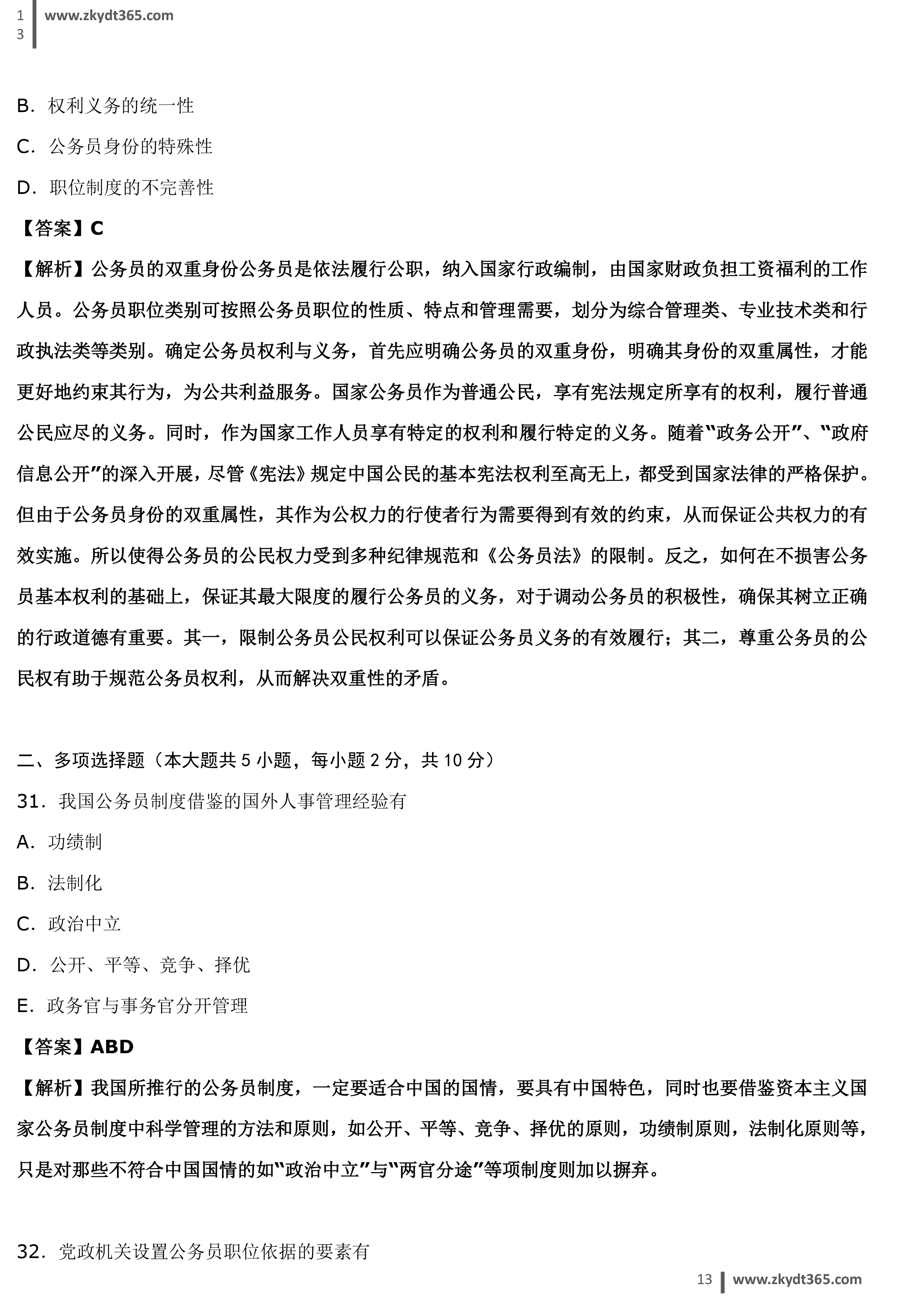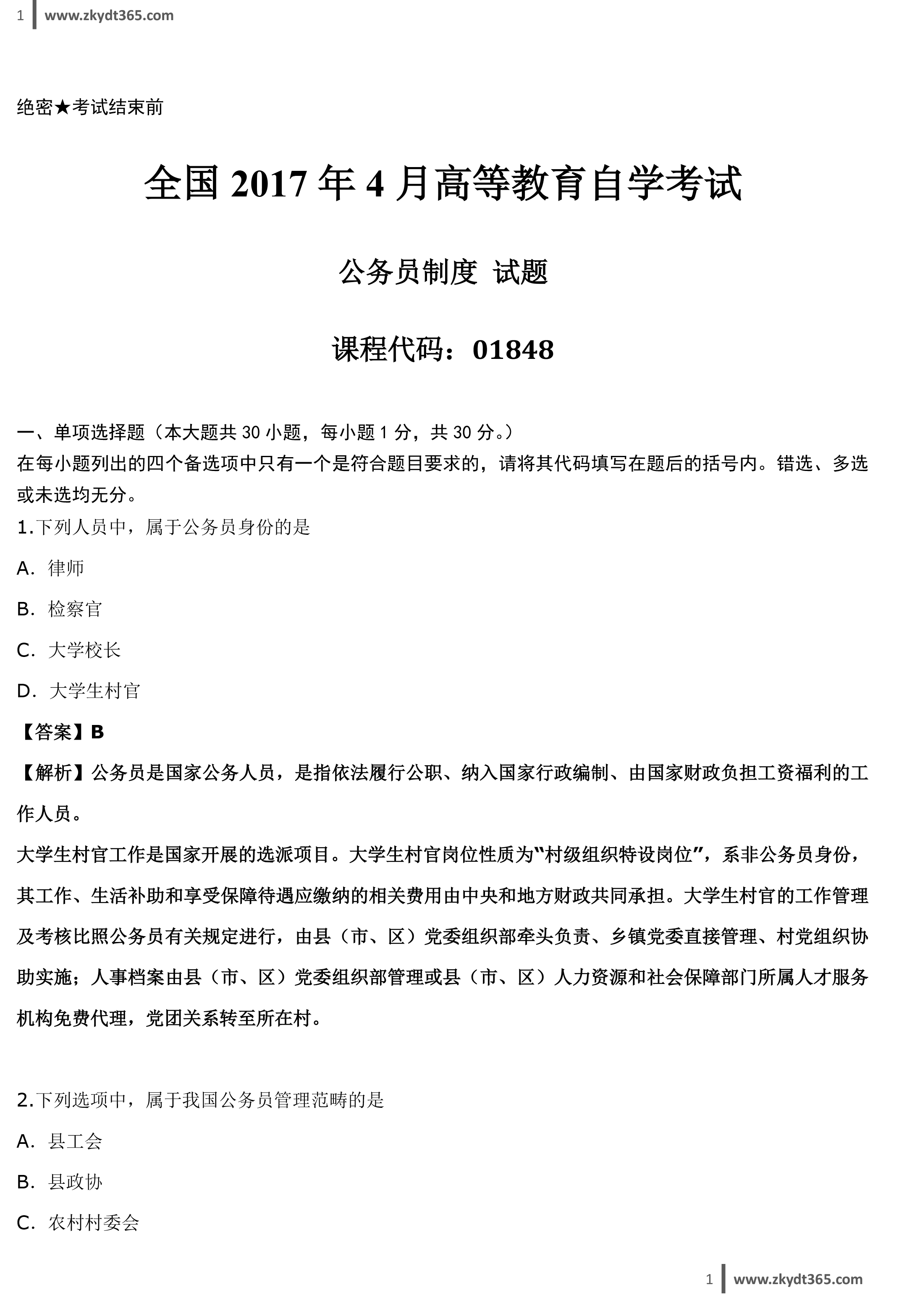 2017年04月贵州省自学考试01848《公务员制度》真题答案