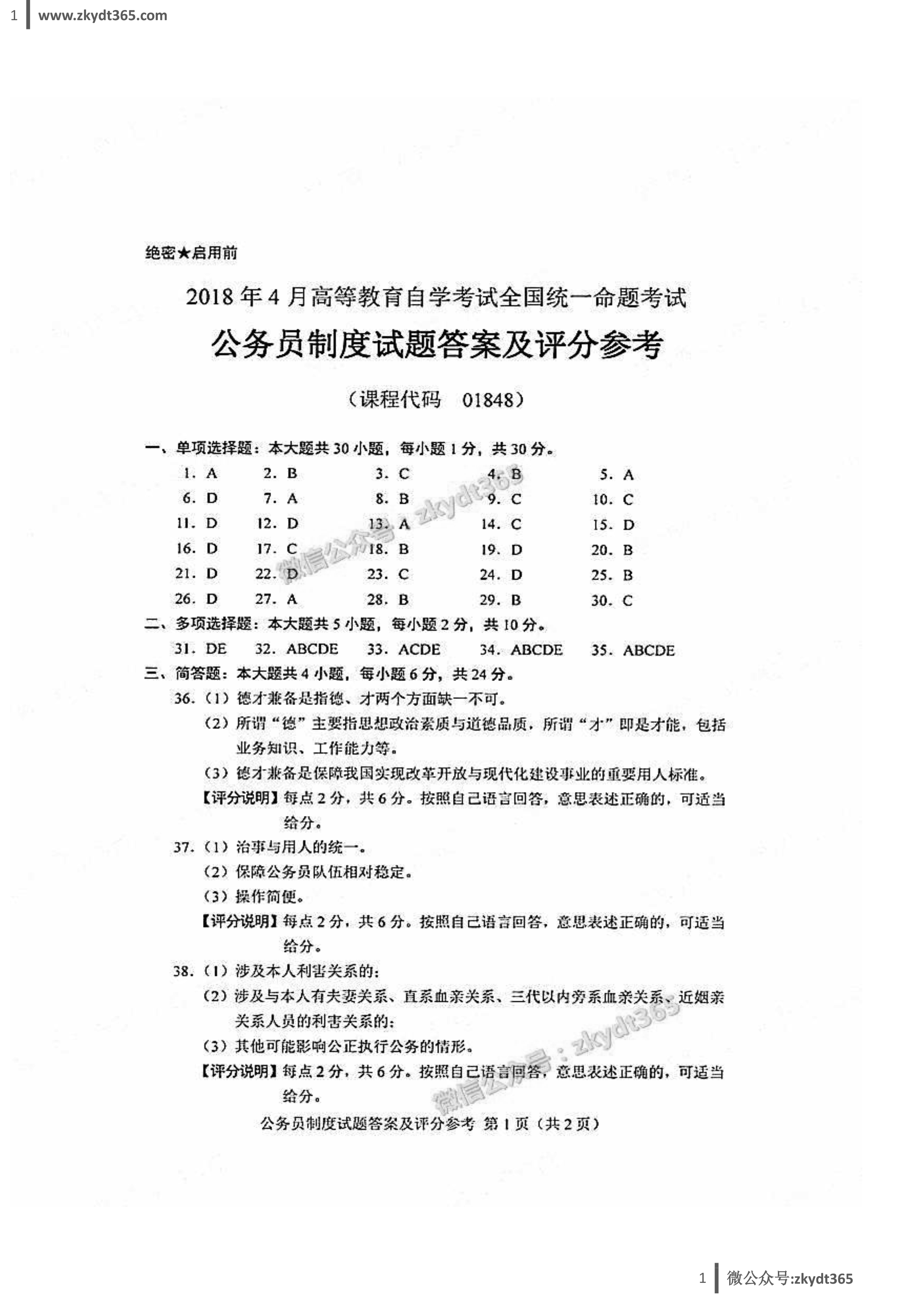贵州省2018年04月自学考试01848《公务员制度》真题答案