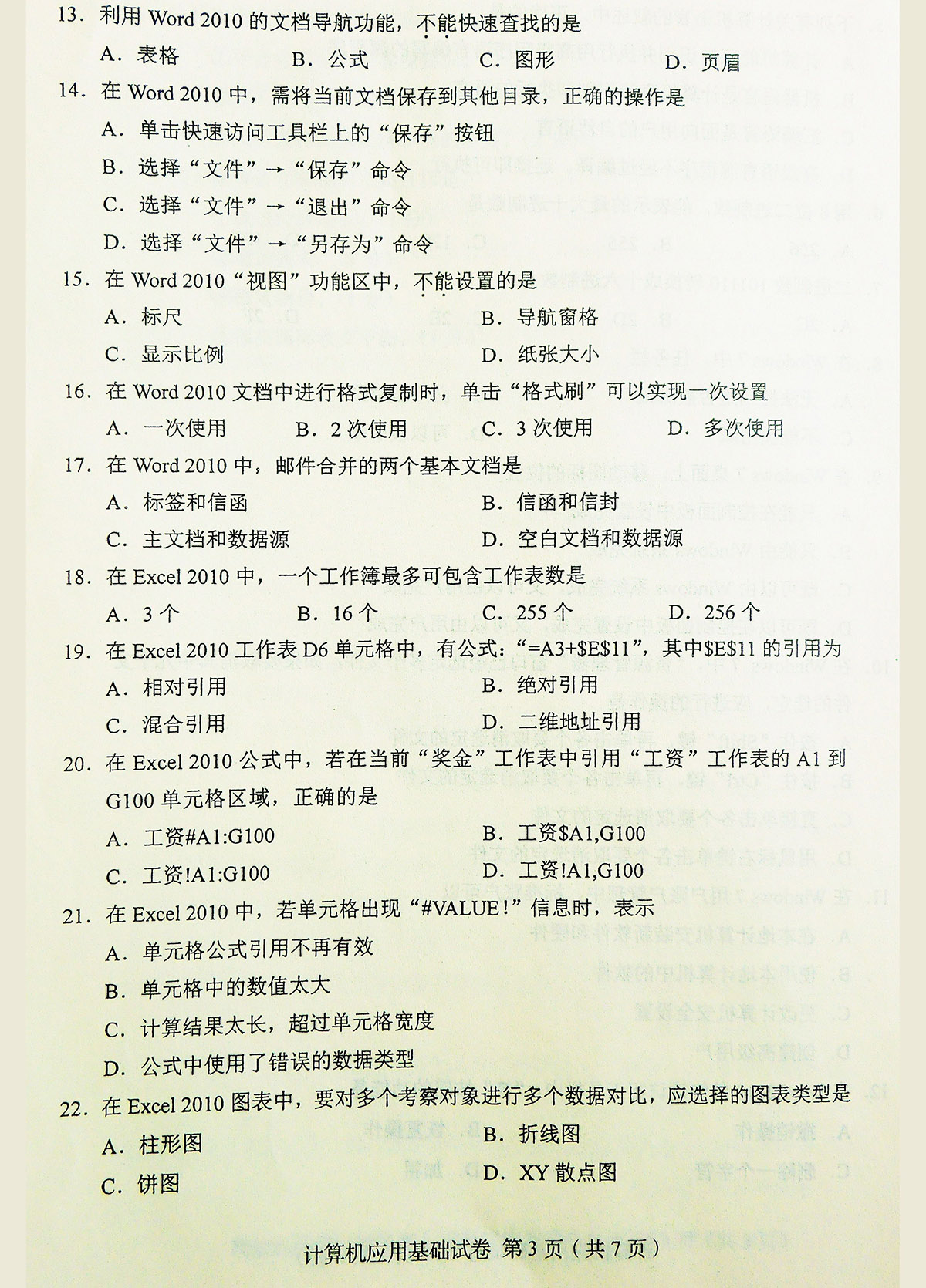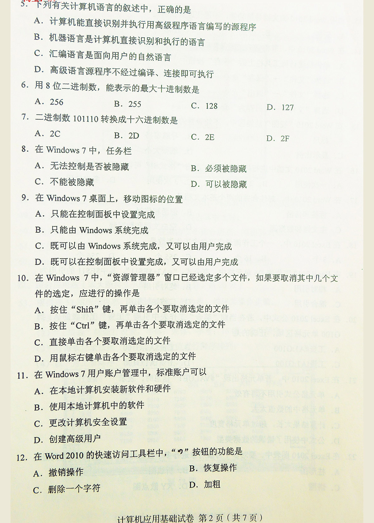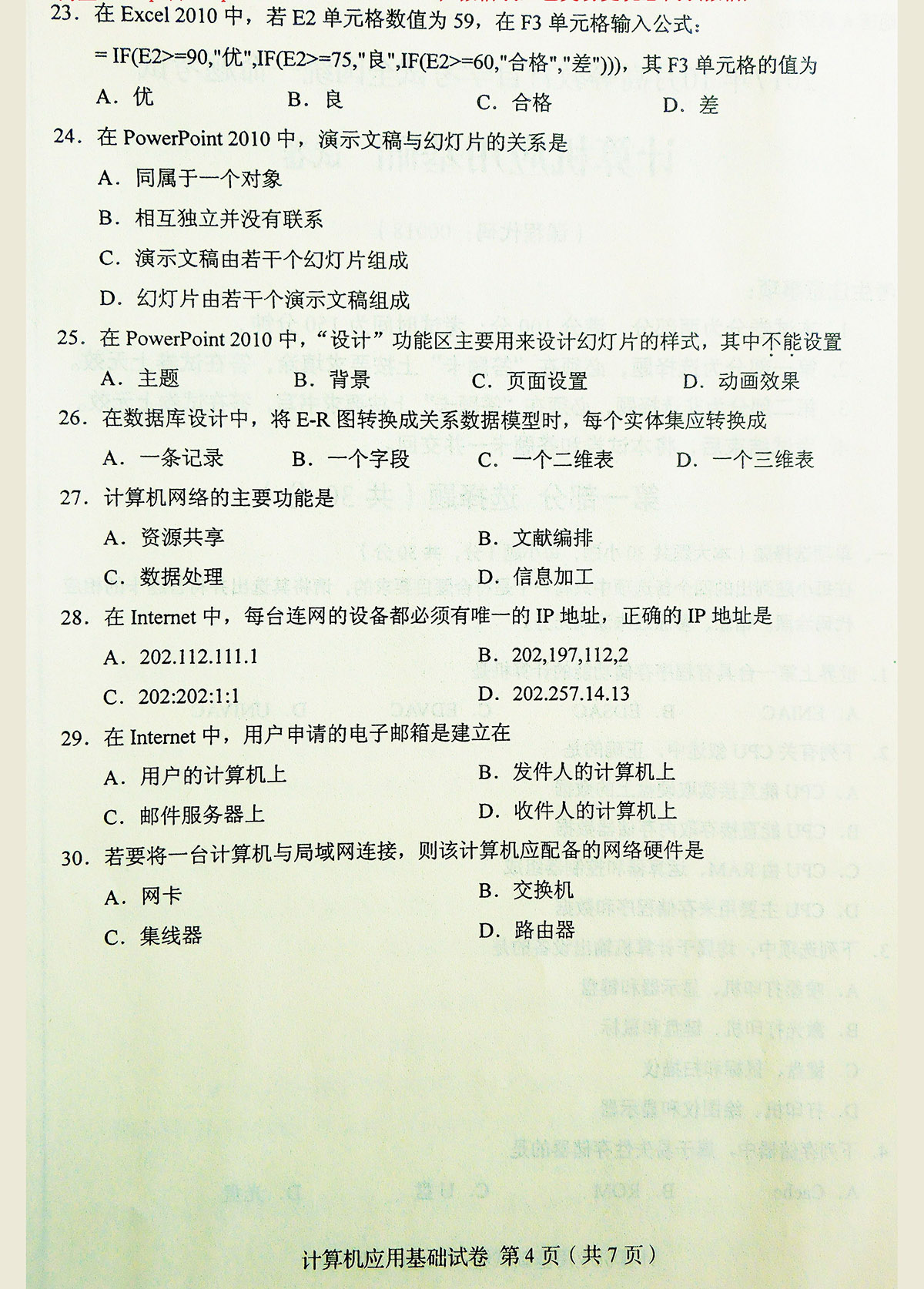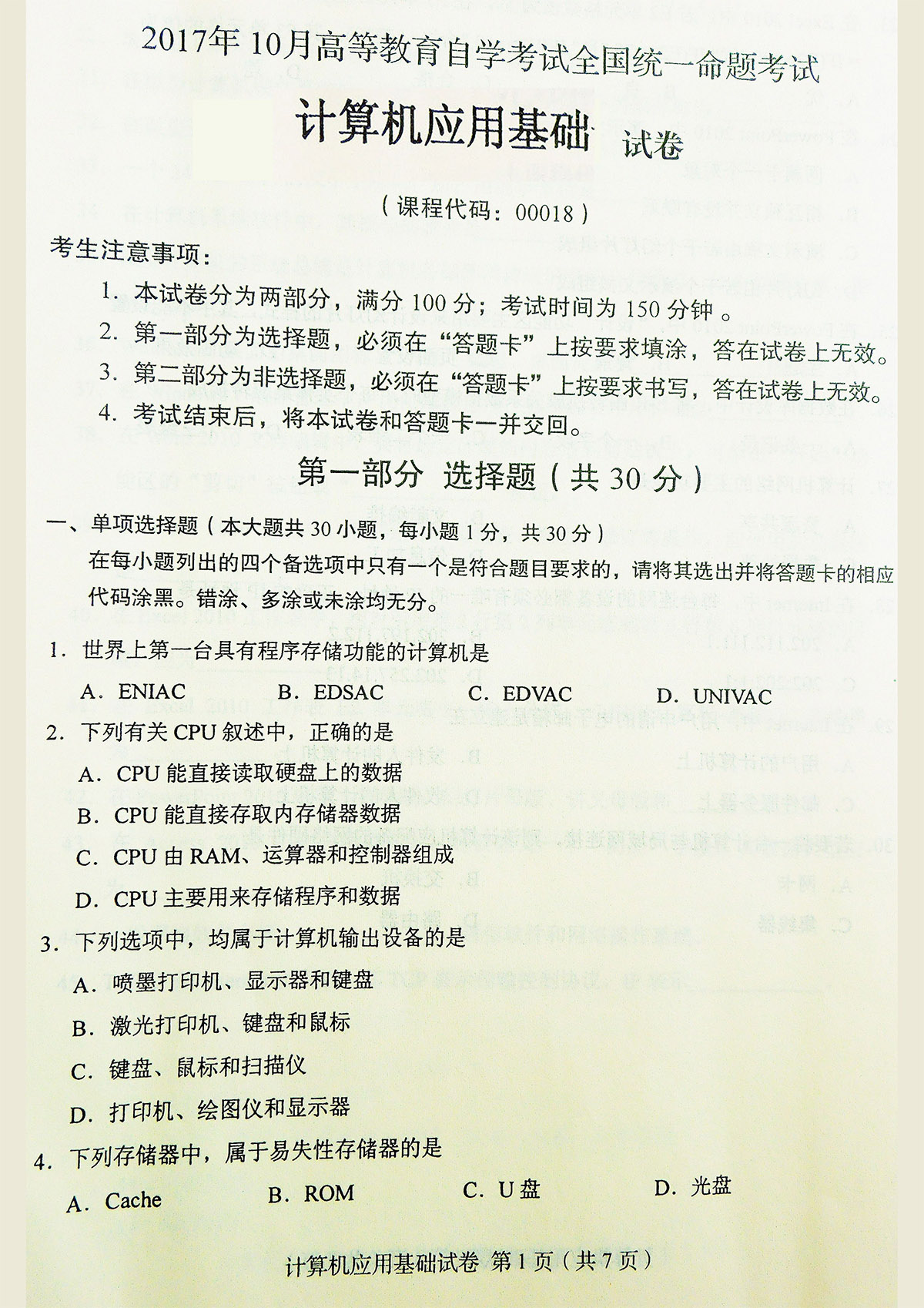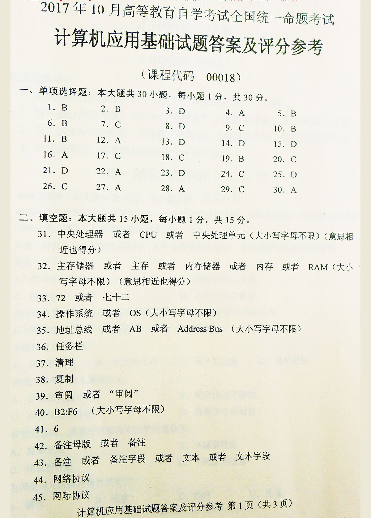 贵州自考2017年10月00018计算机应用基础历年试题