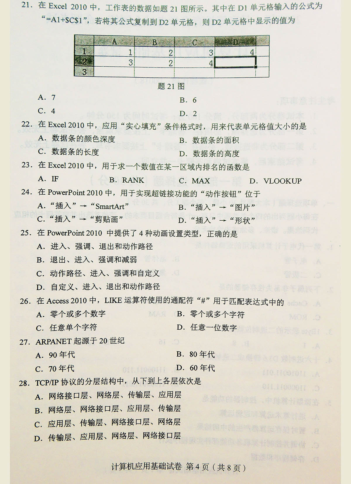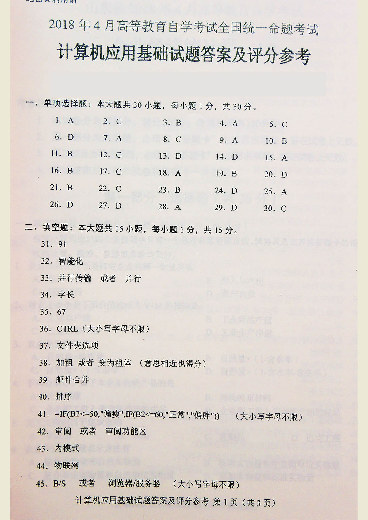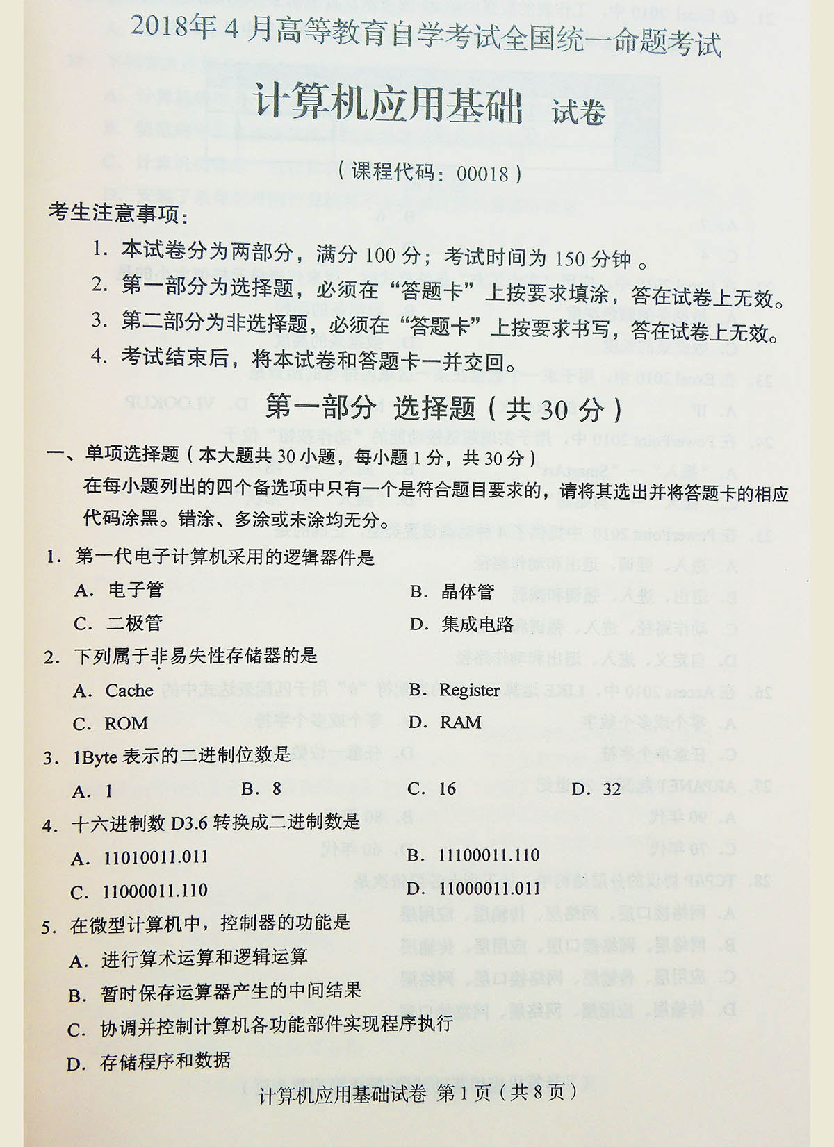 2018年04月贵州省自学考试00018计算机应用基础历年试题