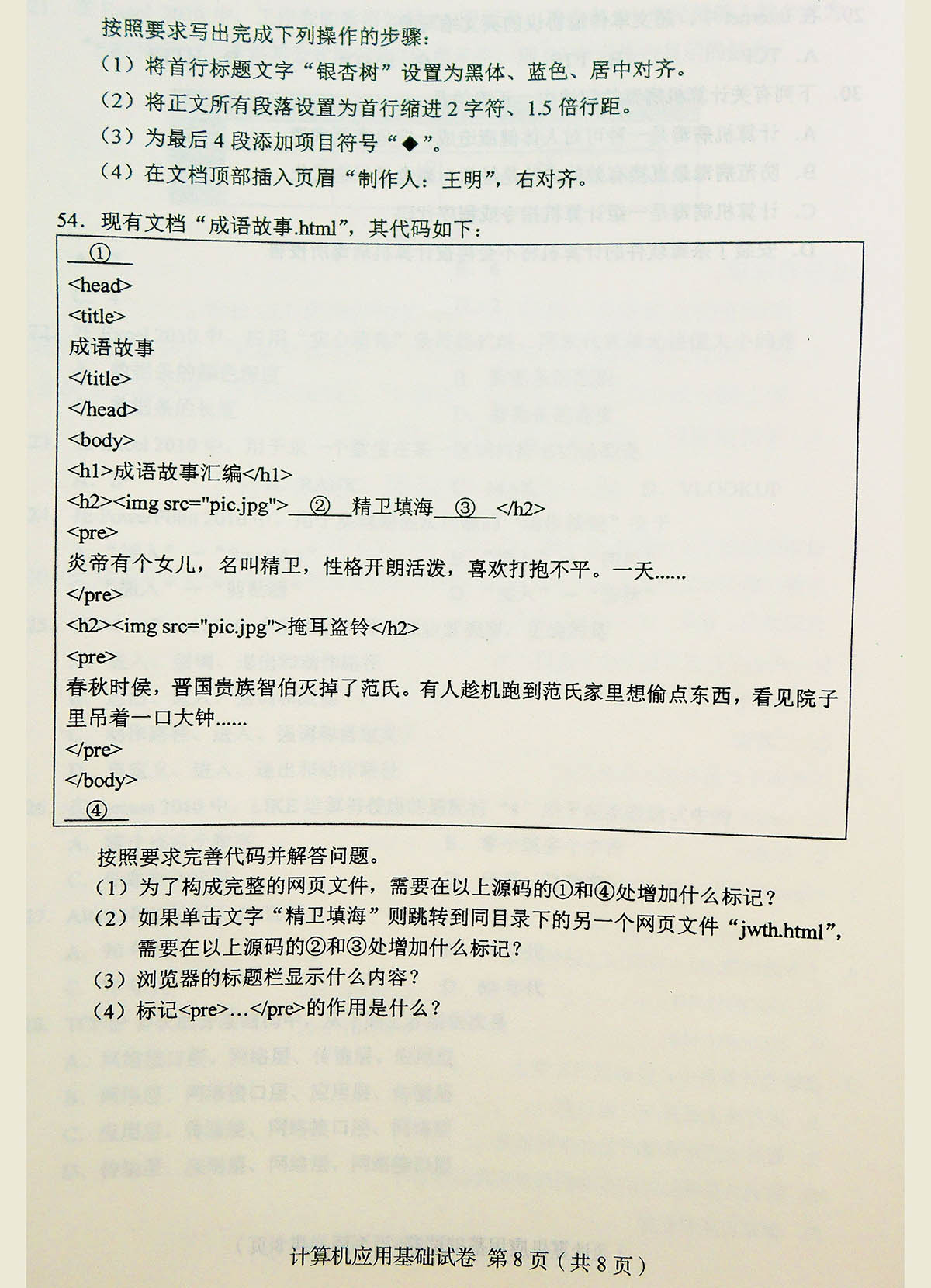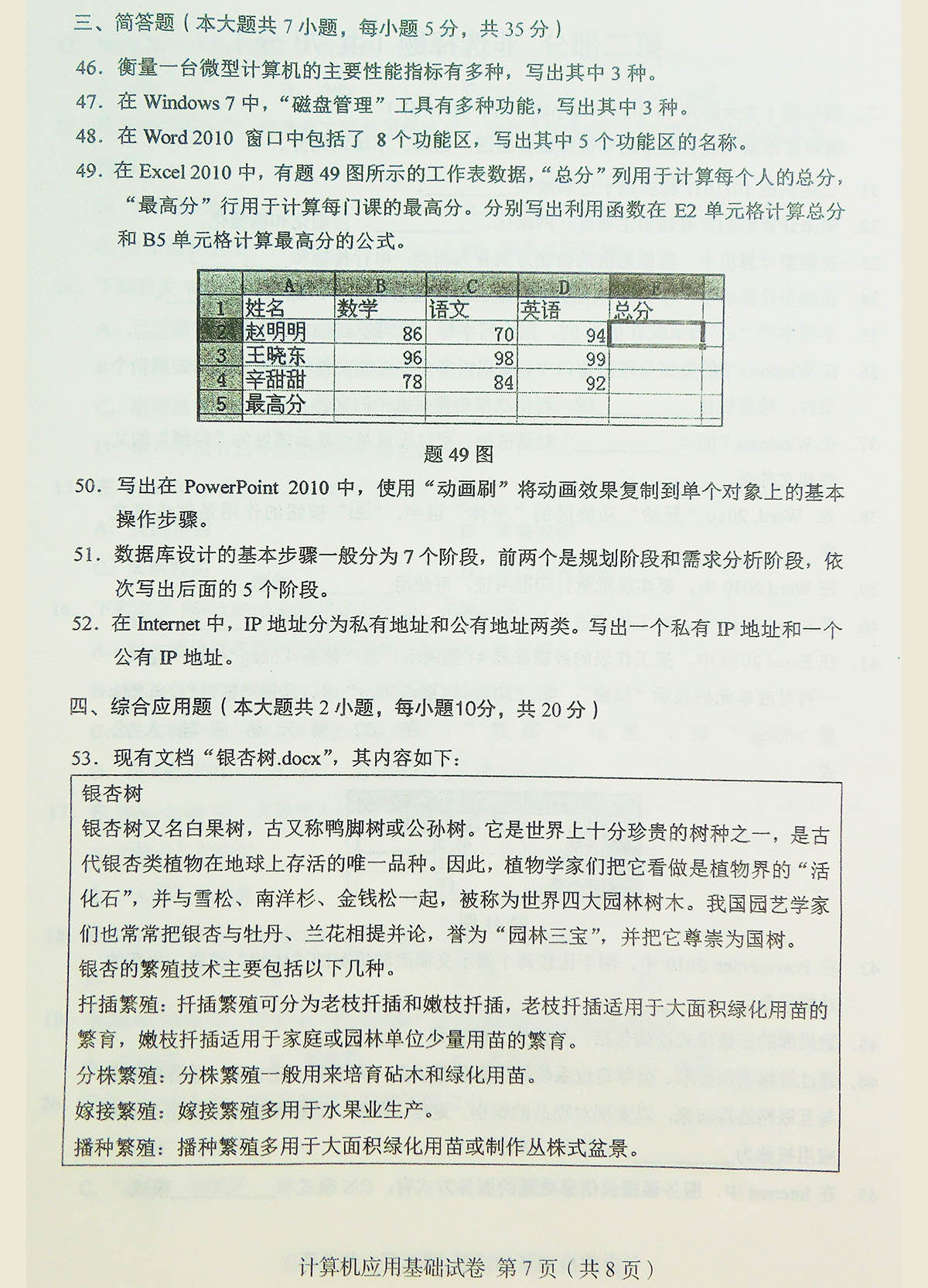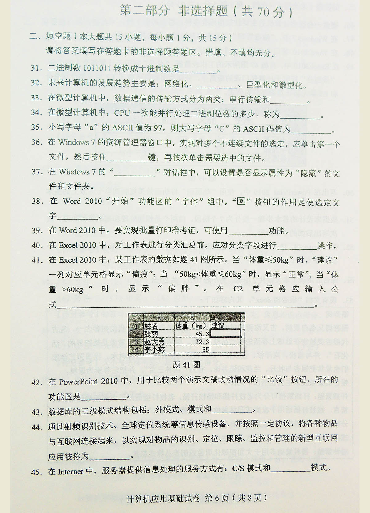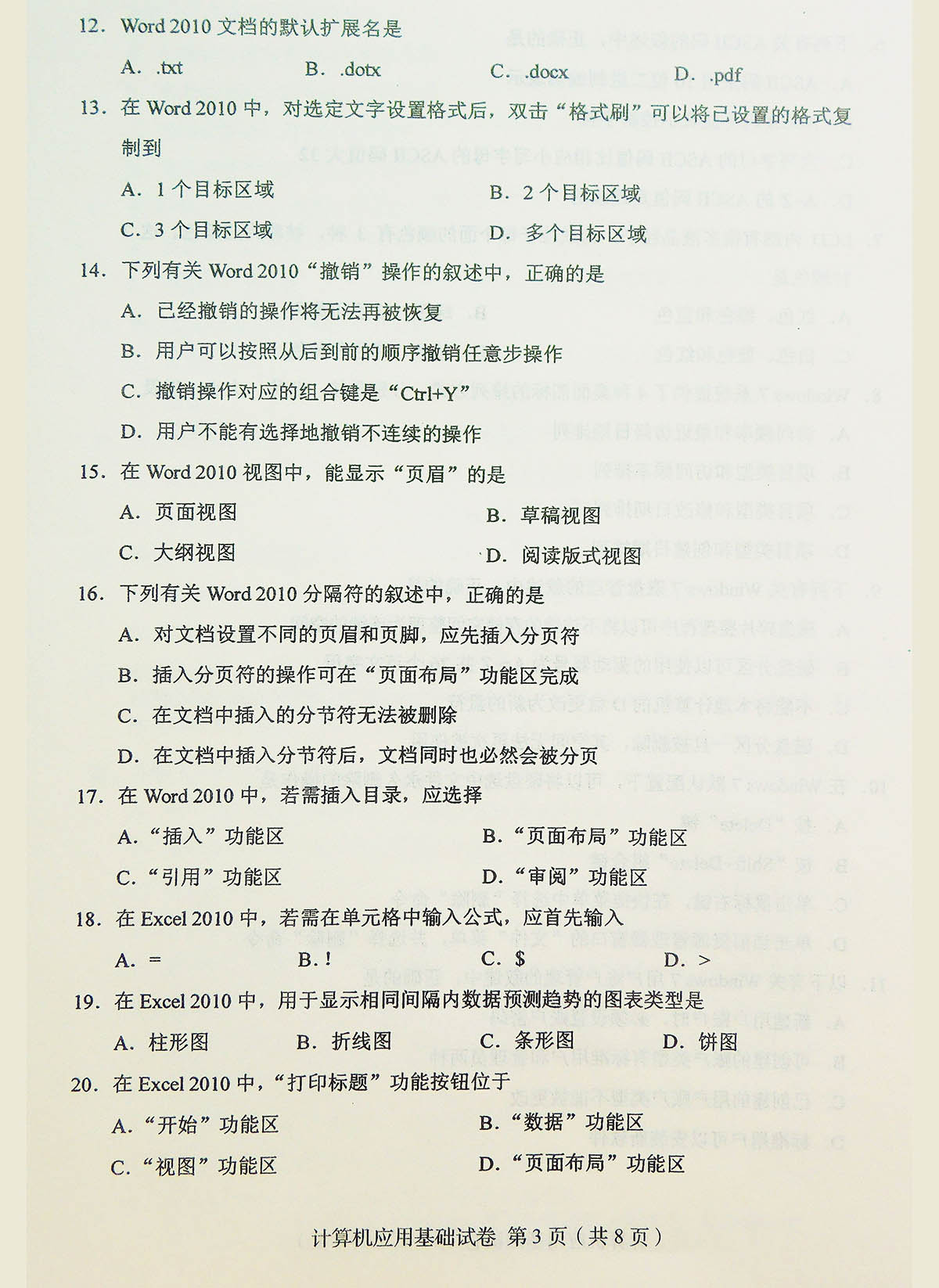 2018年04月贵州省自学考试00018计算机应用基础历年试题