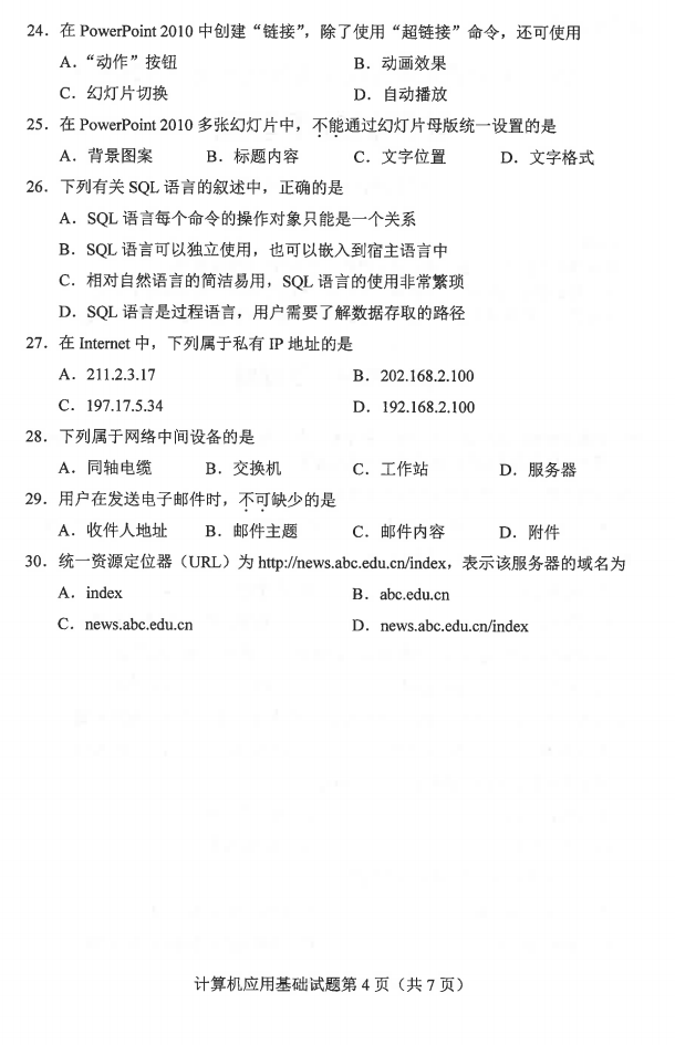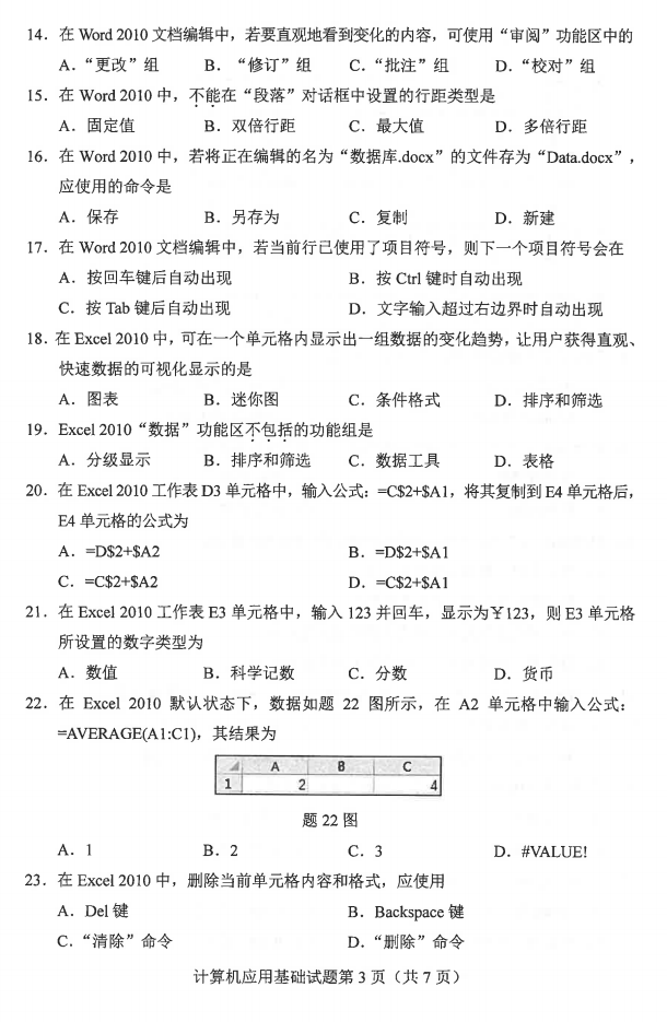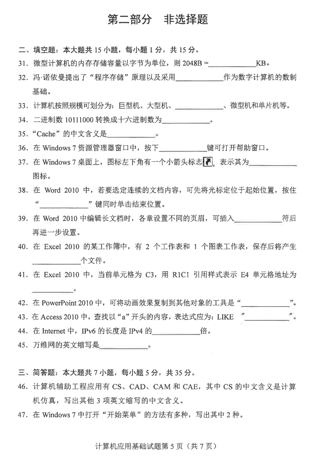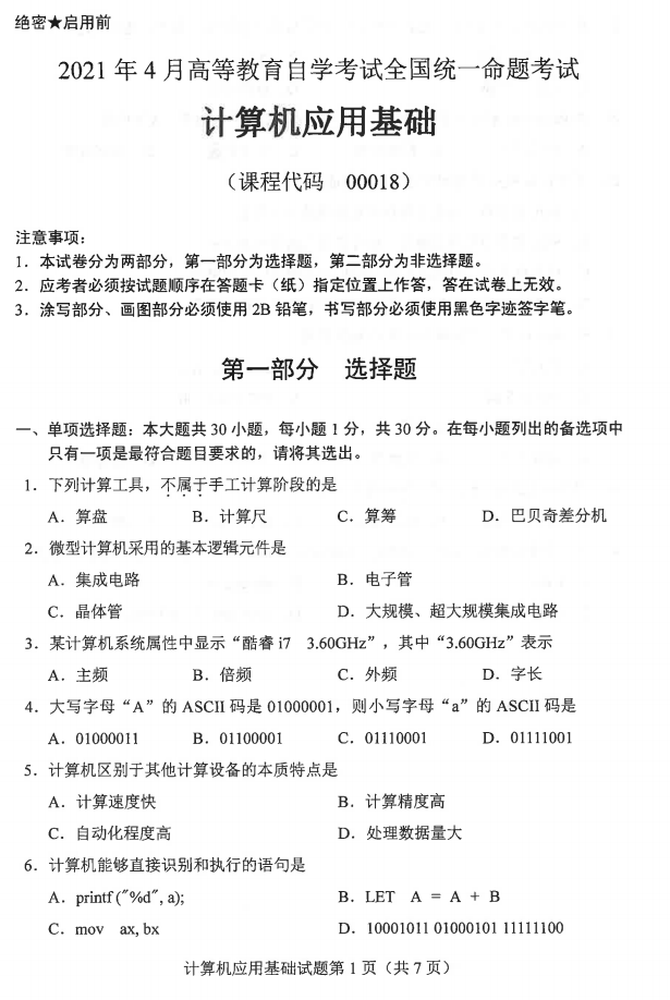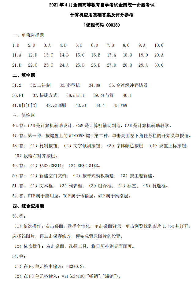2021年04月贵州省自学考试00018计算机应用基础历年试题
