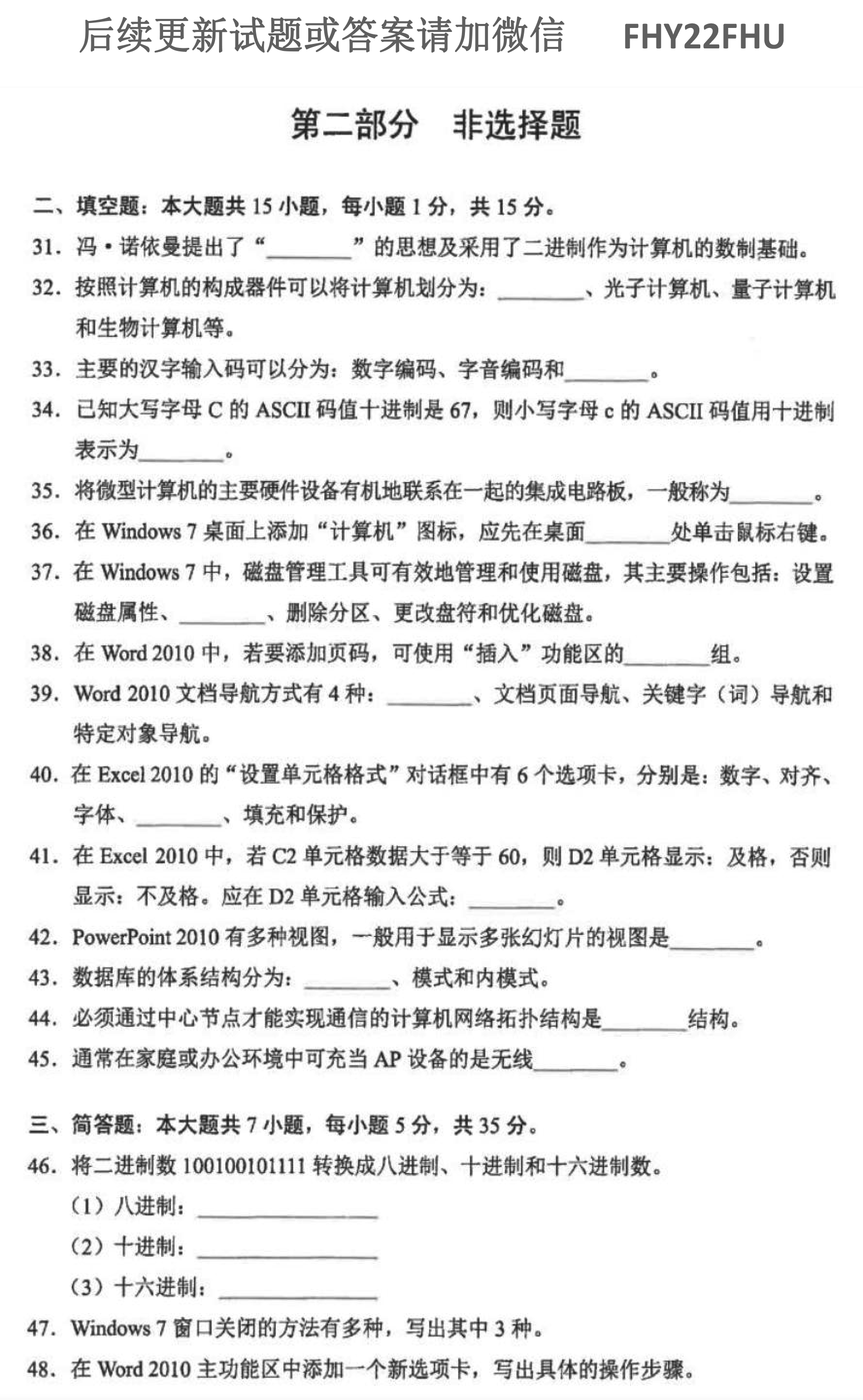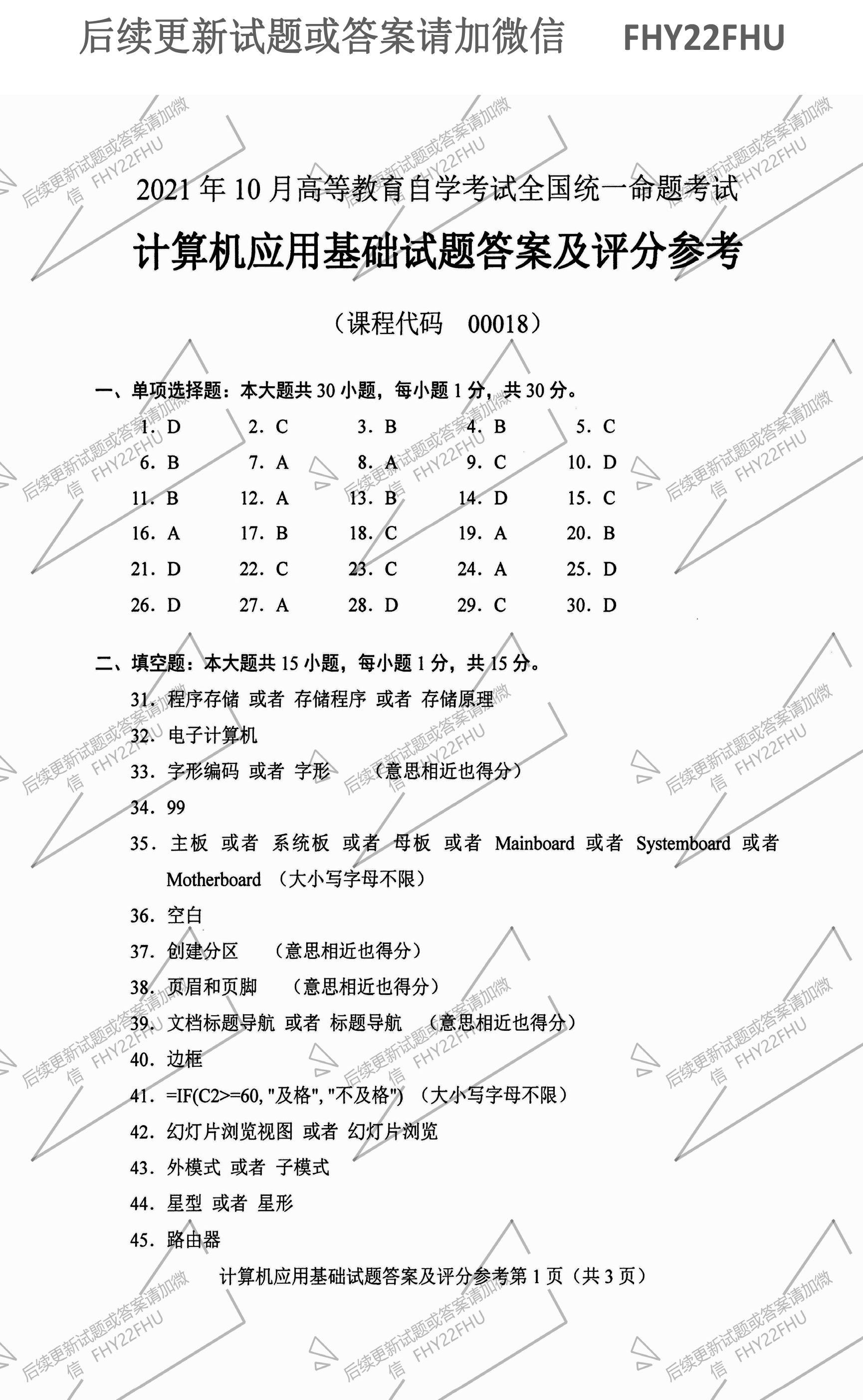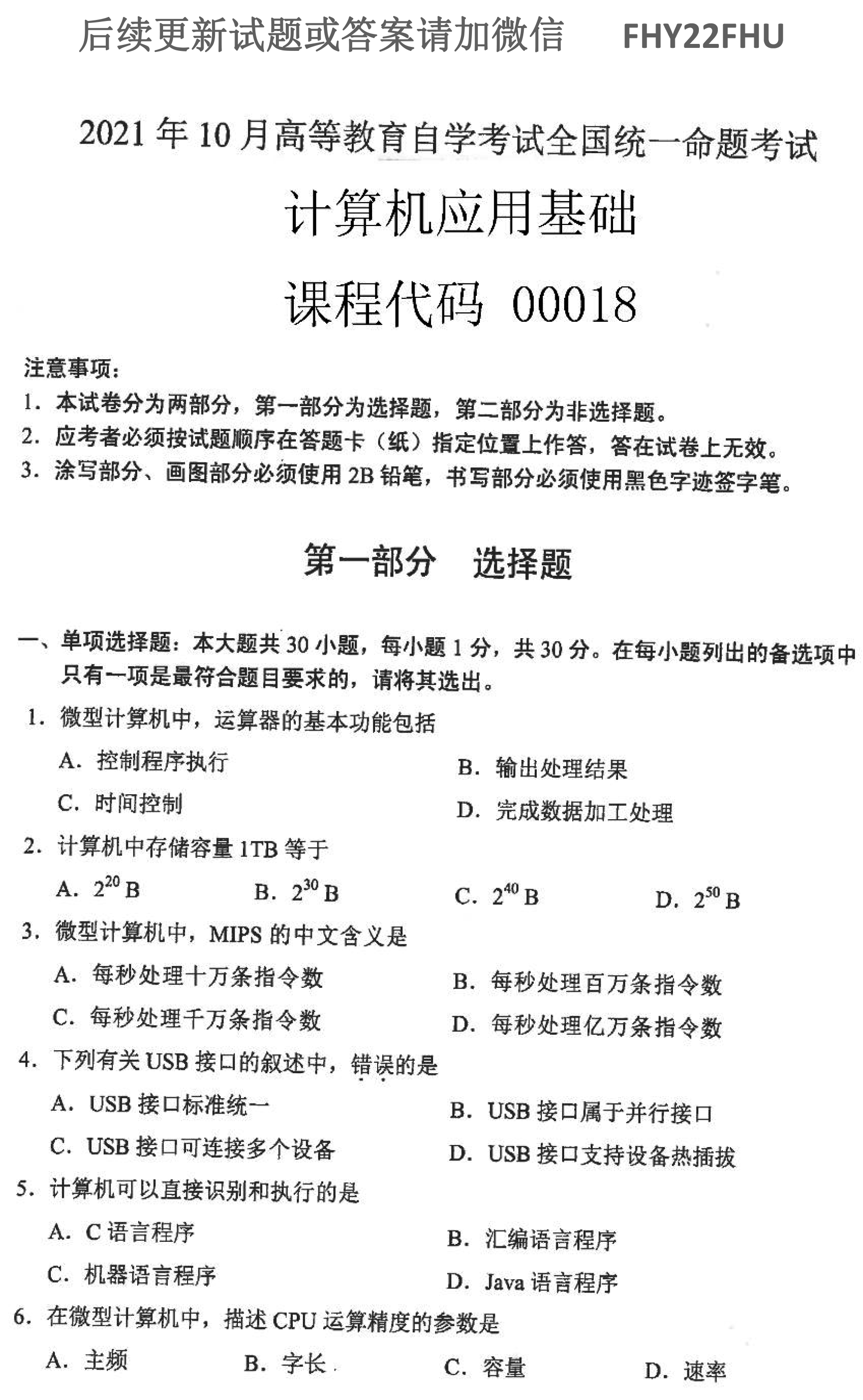 贵州自学考试2021年10月00018计算机应用基础历年试题