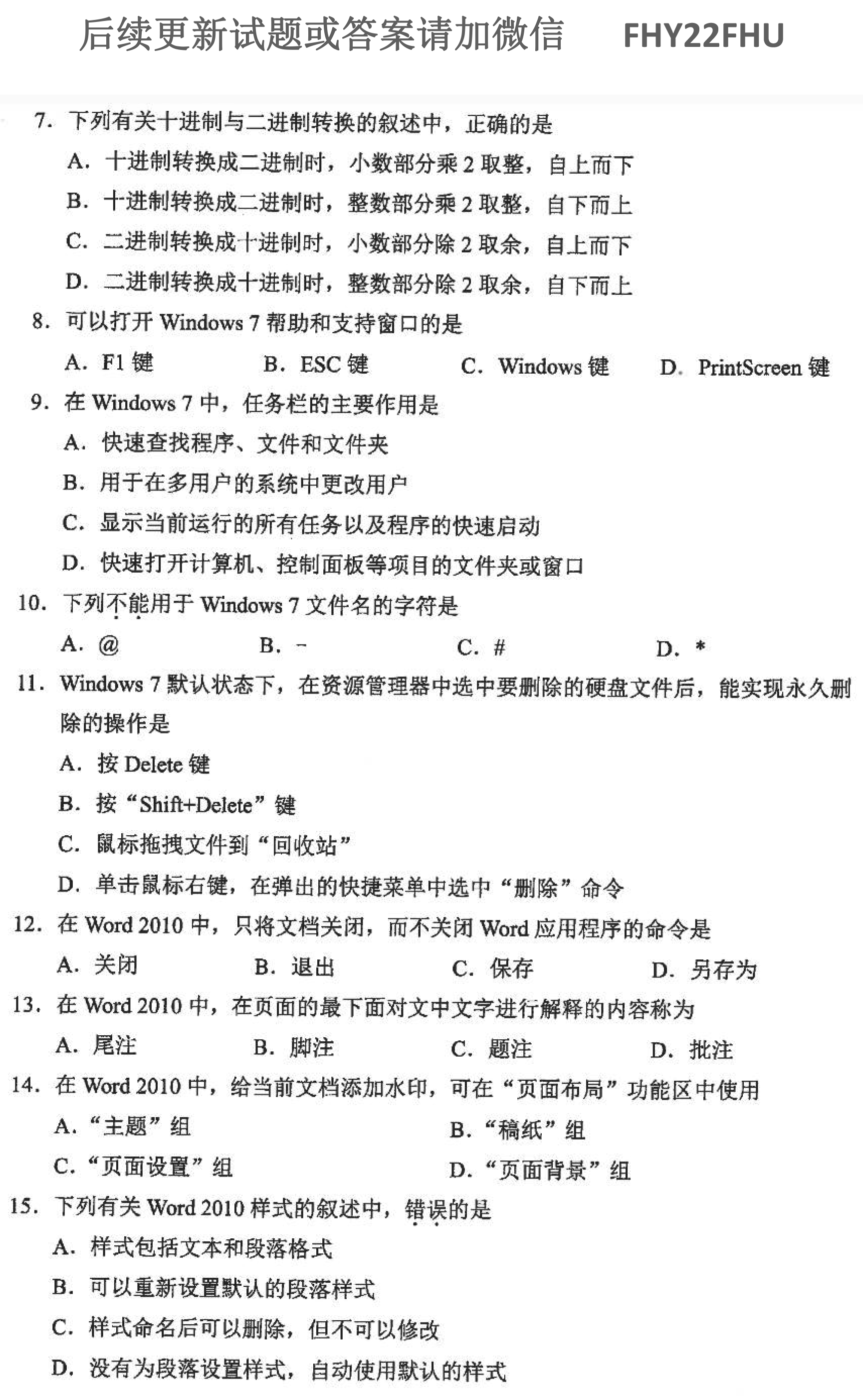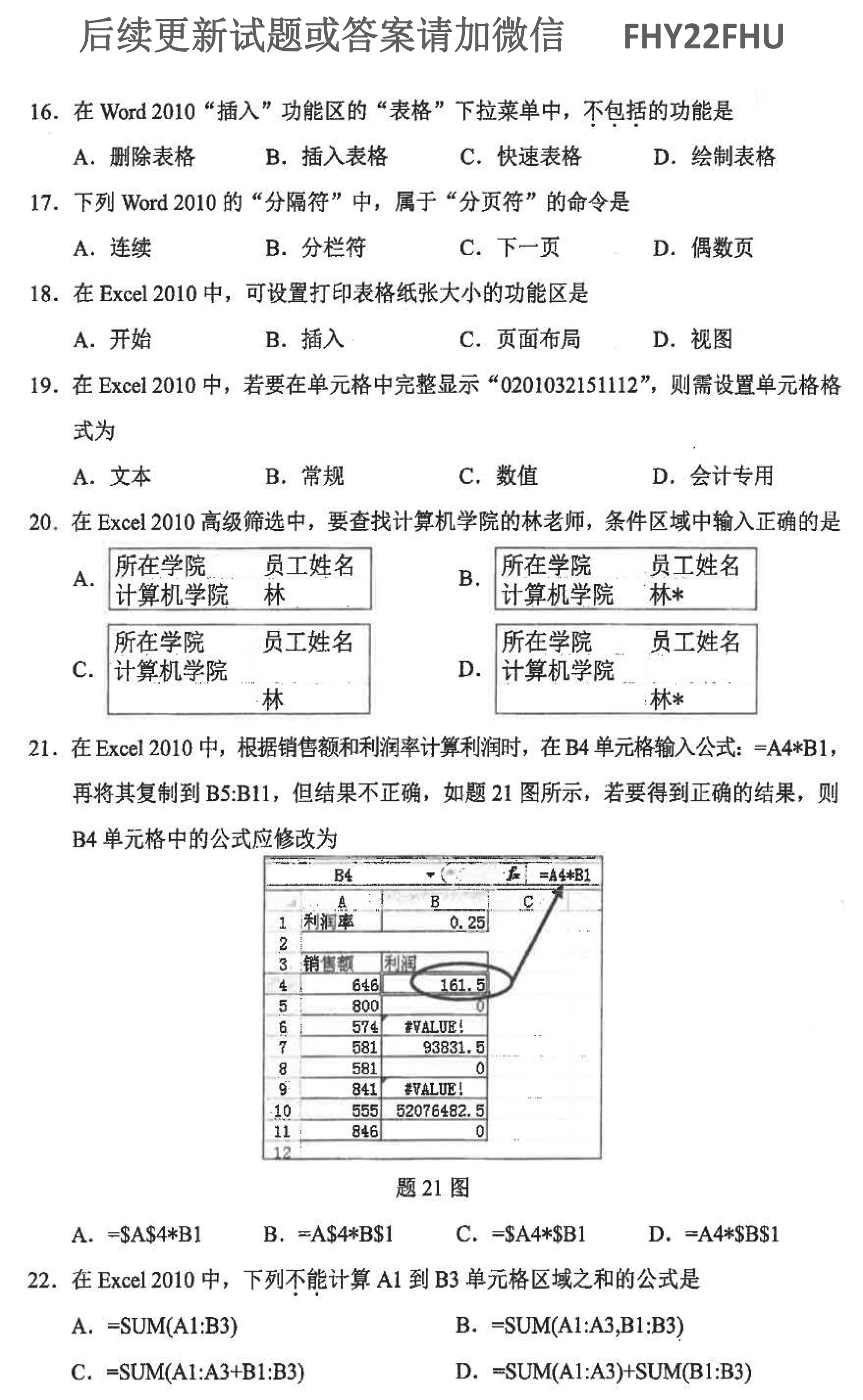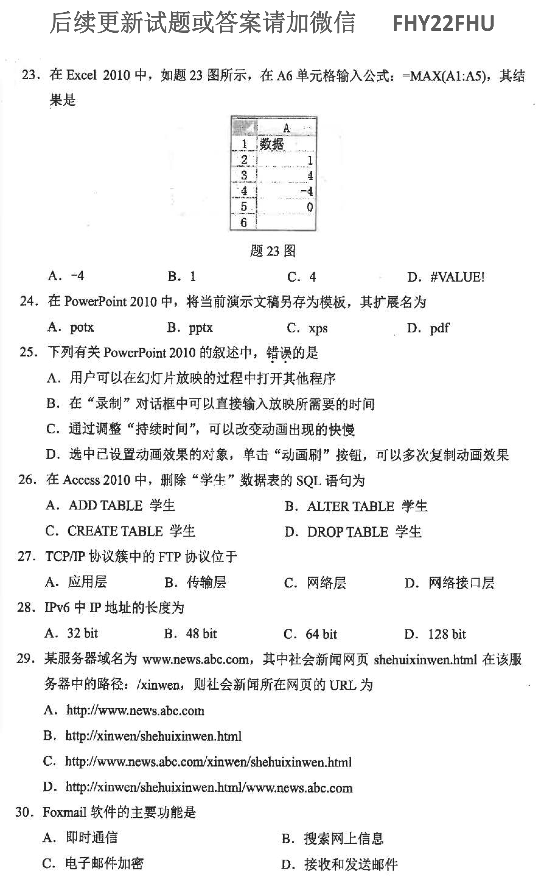 贵州自学考试2021年10月00018计算机应用基础历年试题