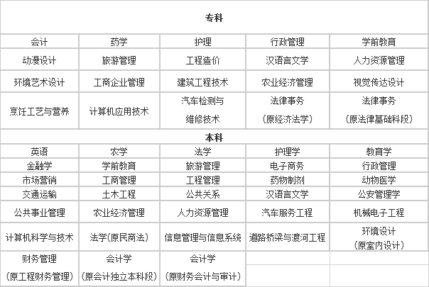 相信很多贵州考生在报考自学考试时,不知道有什么专业可供自己选择,下面是2020年贵州省本科、专科科目一览表,请大家仔细阅读,斟酌考虑选出适合自己的专业。