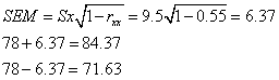 24.假设某岗位培训结业考试的测验信度系数rxx=0.55,标准差S=9.5,试求该结业考试的测量标准误。某考生成绩78分,其真分数值的区间是多少?(保留两位小数)5-136