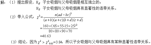 26.为了研究父母吸烟对子女吸烟是否有显著性影响,随机调查了160名青少年及其家长,