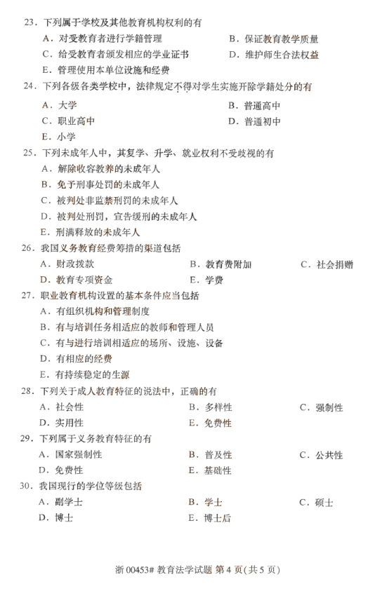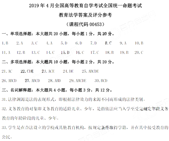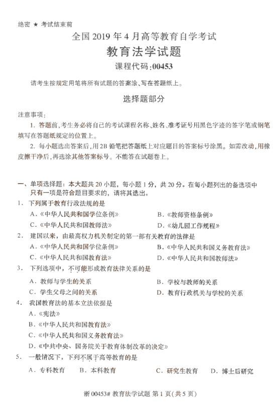 全国2019年4月高等教育自学考试教育法学试题(00453)