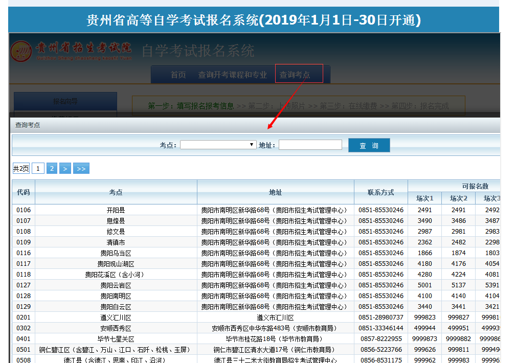 | 128 | 贵阳南明区 | 贵阳市南明区新华路68号(贵阳市招生考试管理中心) | 0851-85530246 |