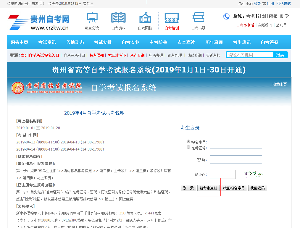 1.登陆贵州省高等自学考试报名系统http://www.crzkw.cn/baomingxt/