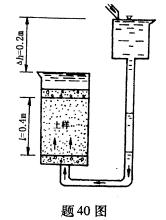 40.在下图所示容器中的土样,受到水的渗流作用.已知土样高度l=0.4m,土样横截面面积A=25cm2,水头差Δh=0.2m,土样的土粒密度(比重)Gs=2.6,孔隙比e=0.80.