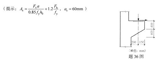 36.柱子牛腿如题36图所示.已知纵向受拉钢筋面积为631mm2,fy=300N/mm2,水平拉力设计值为75kN.试计算该牛腿所能承受的竖向力设计值.