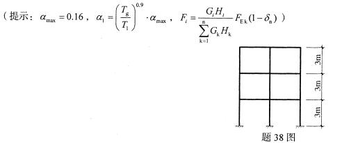 37.三层钢筋混凝土框架结构的计算简图如题37图所示.各层重力荷载代表值为G1=G2=G3=1500kN,各层的层刚度Kl=K2=K3=24000kN/m.试用能量法计算其基本自振周期.