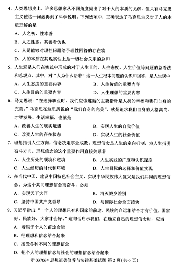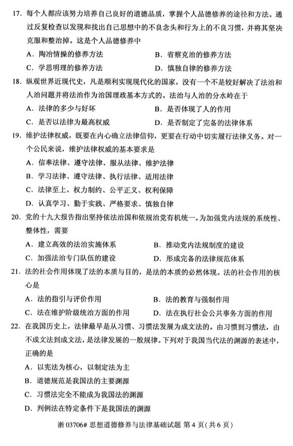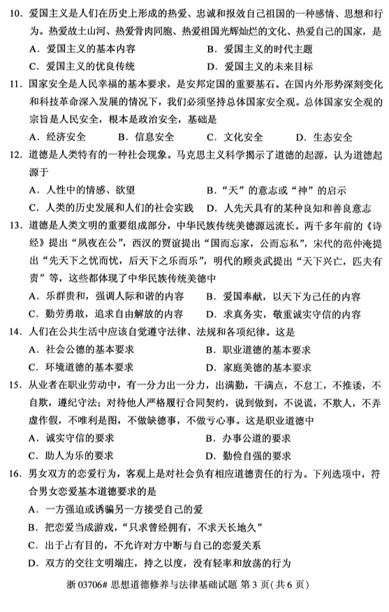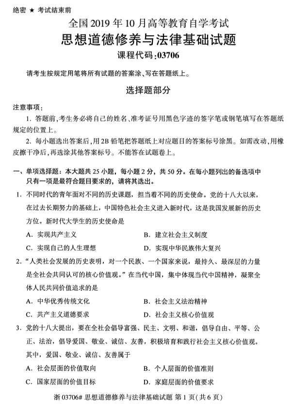 本文标签:贵州自考 历年真题 全国2019年10月自学考试思想道德修养与法律基础真题