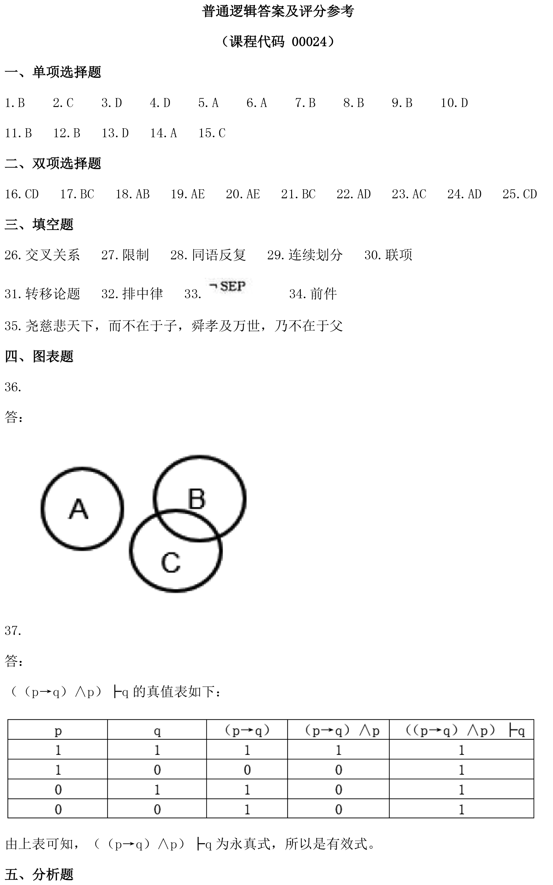 贵州省2021年04月自学考试00024普通逻辑真题及答案