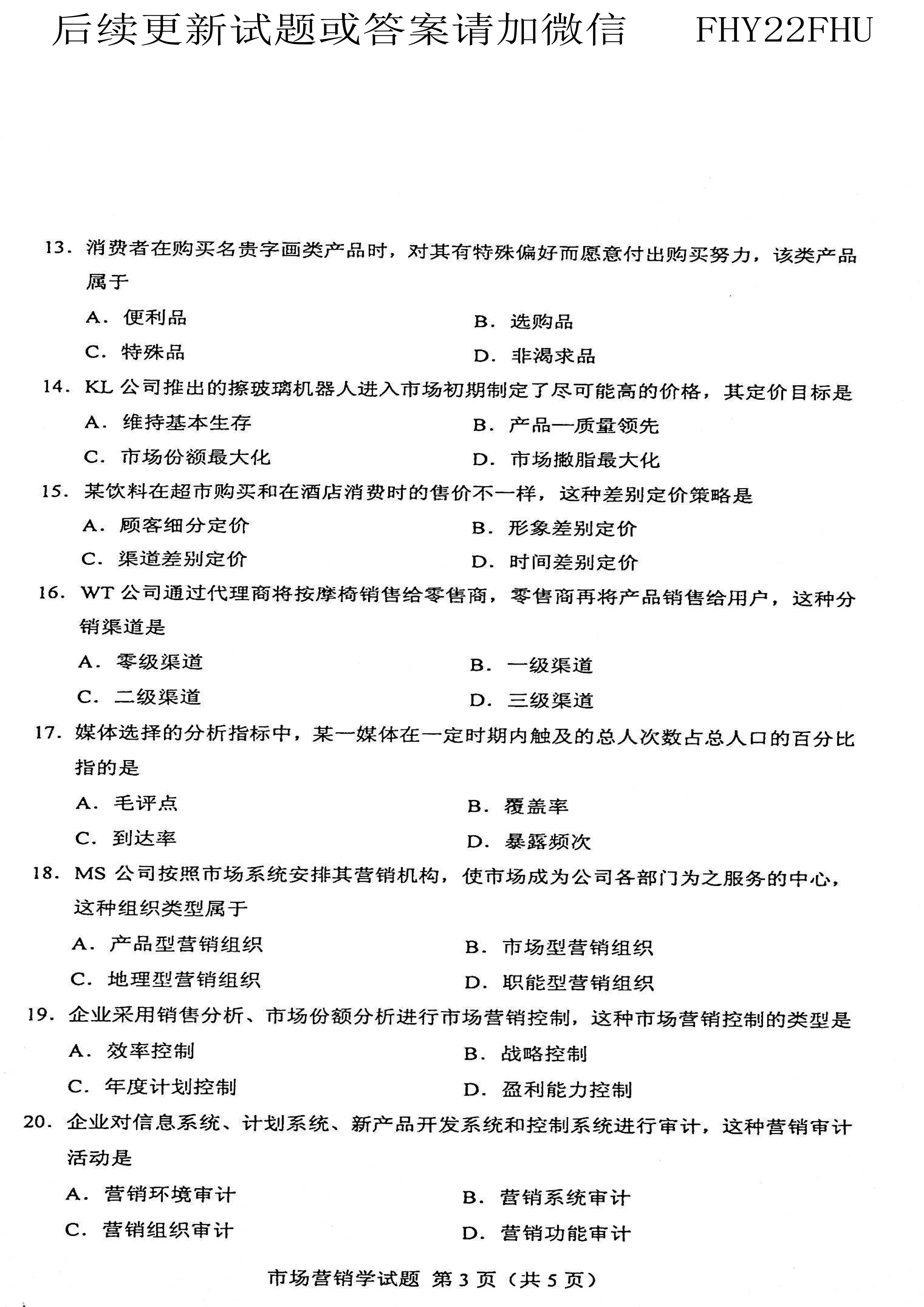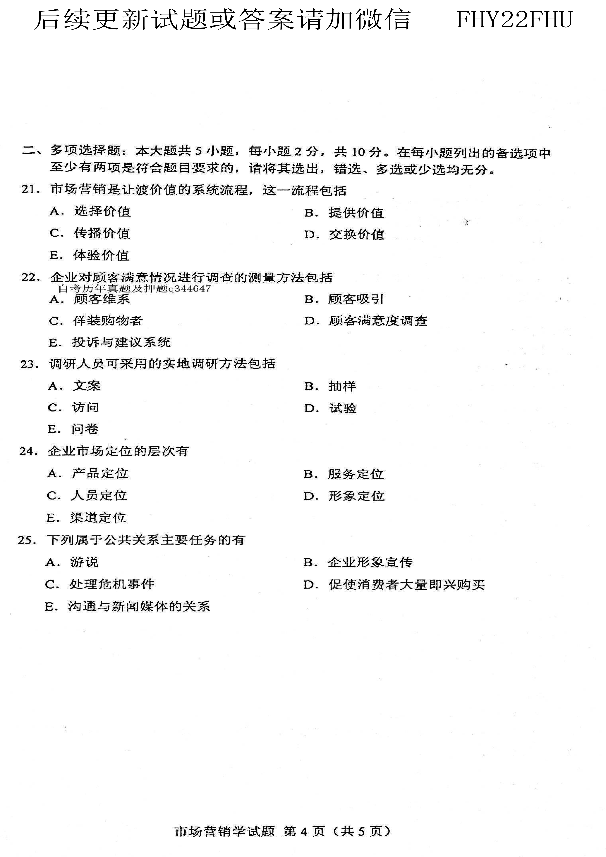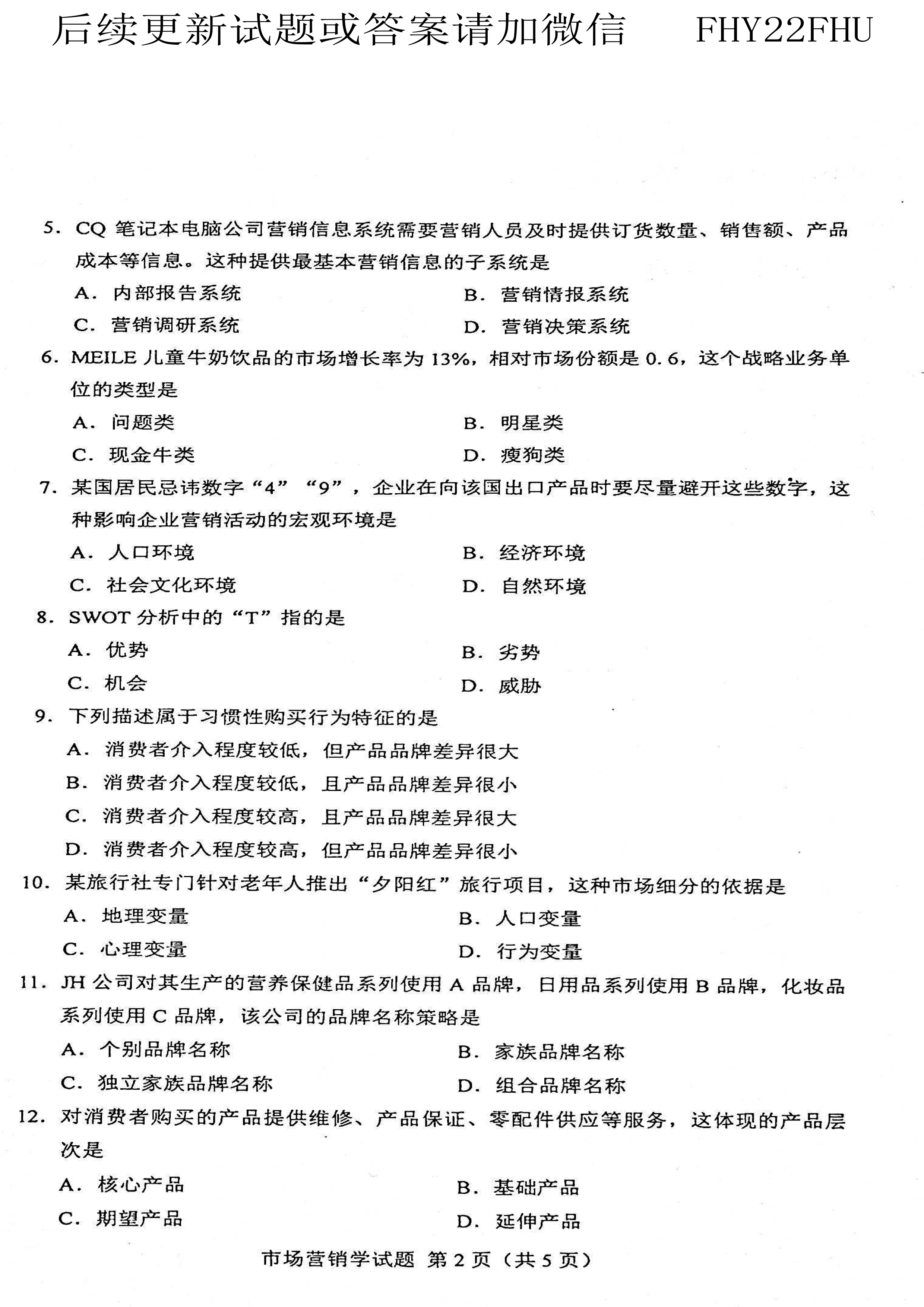 贵州省2021年04月自学考试00058市场营销学真题及答案