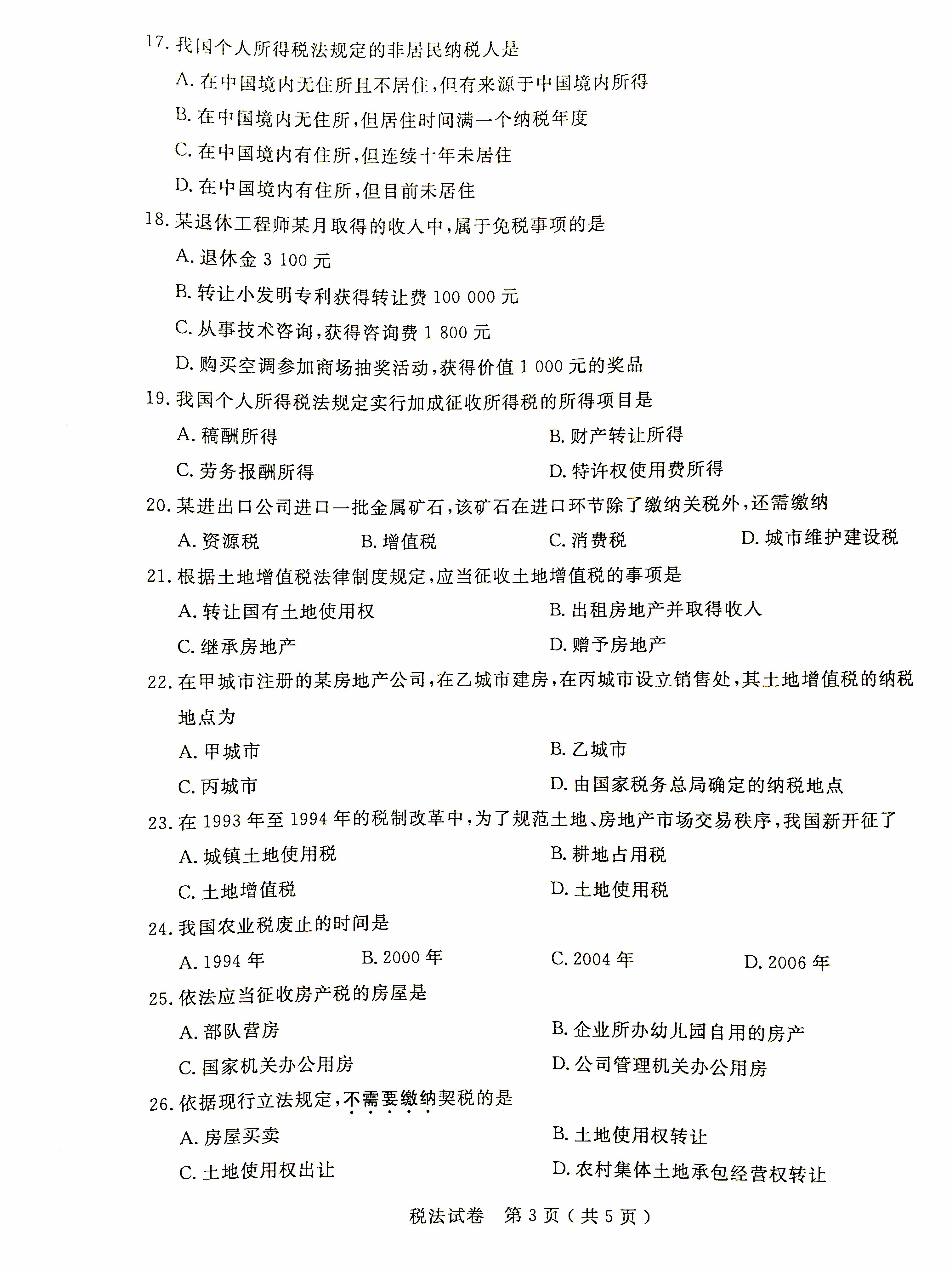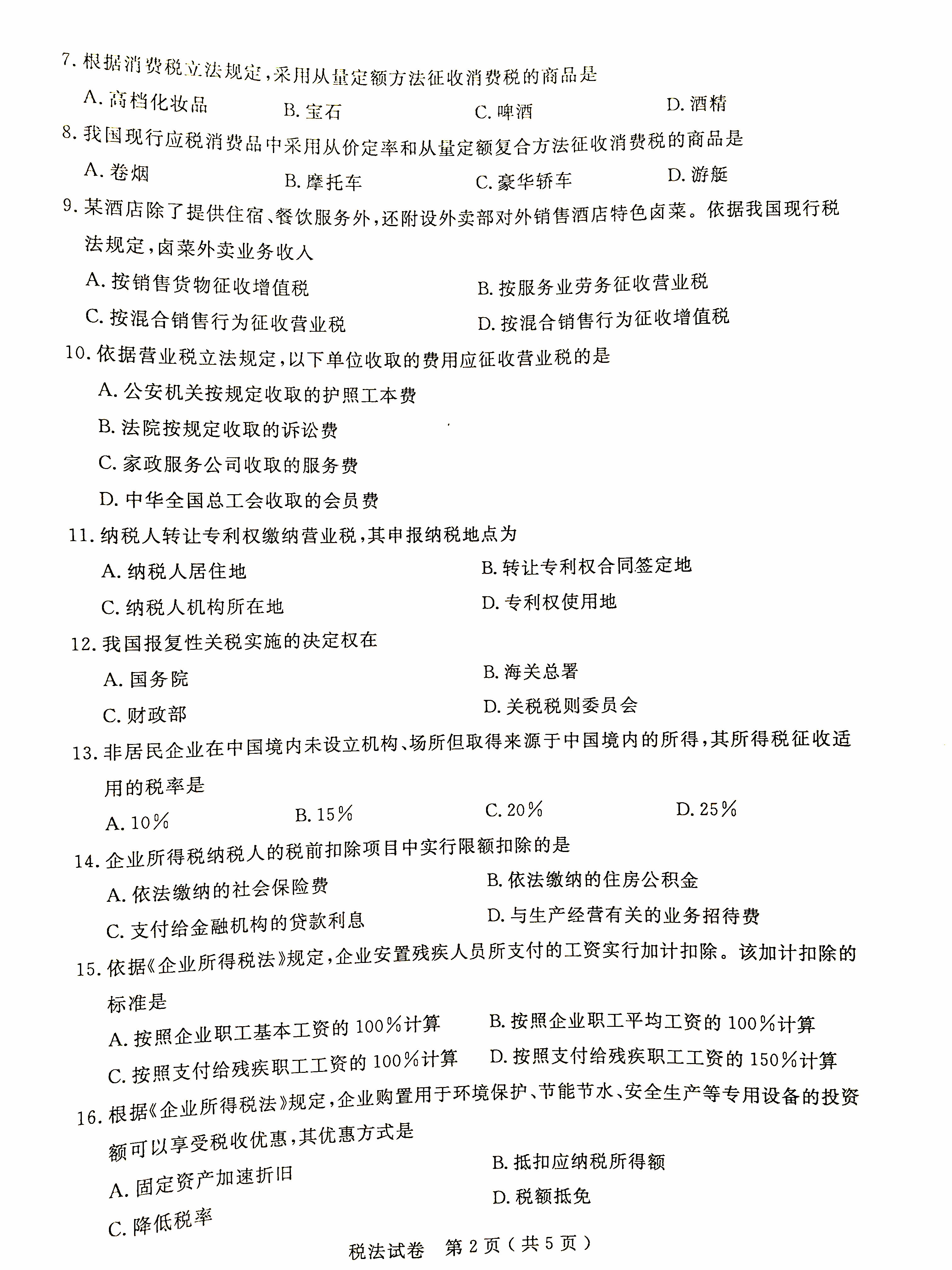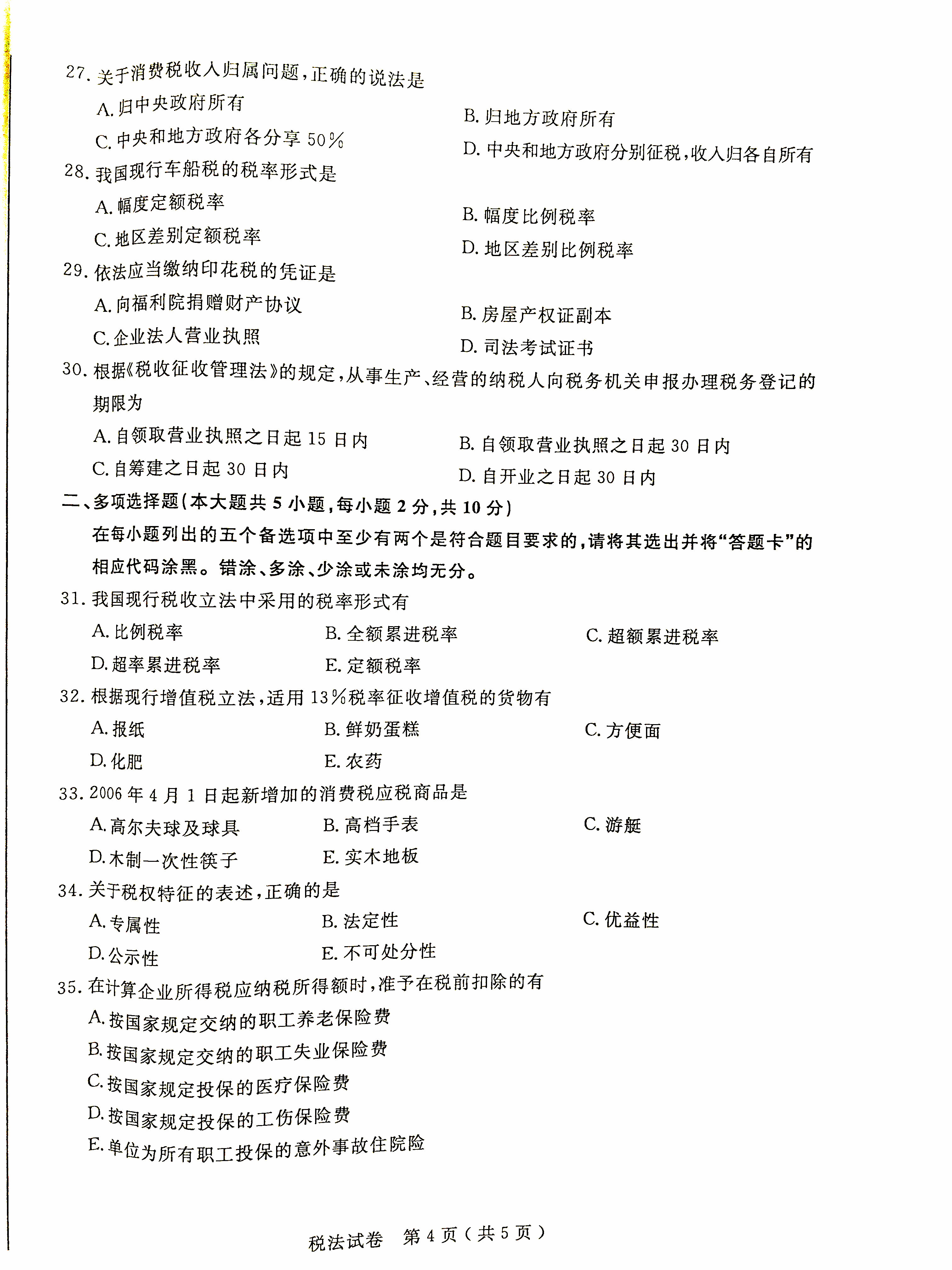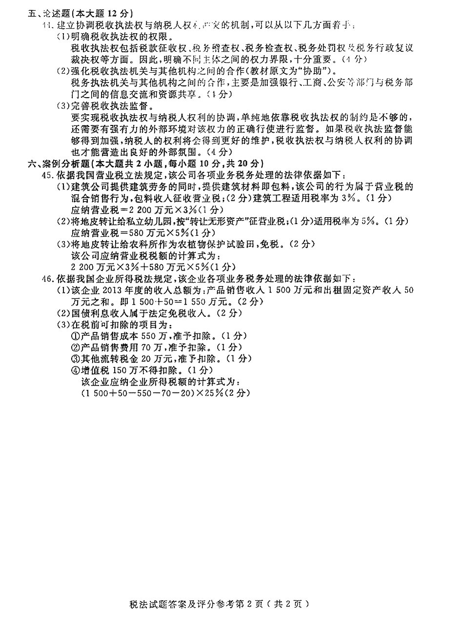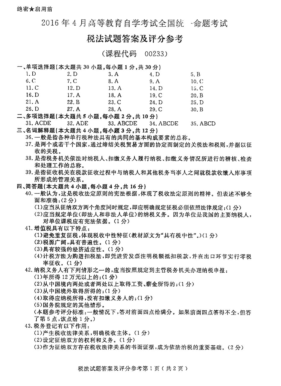贵州省2016年04月自考税法00233试题及答案