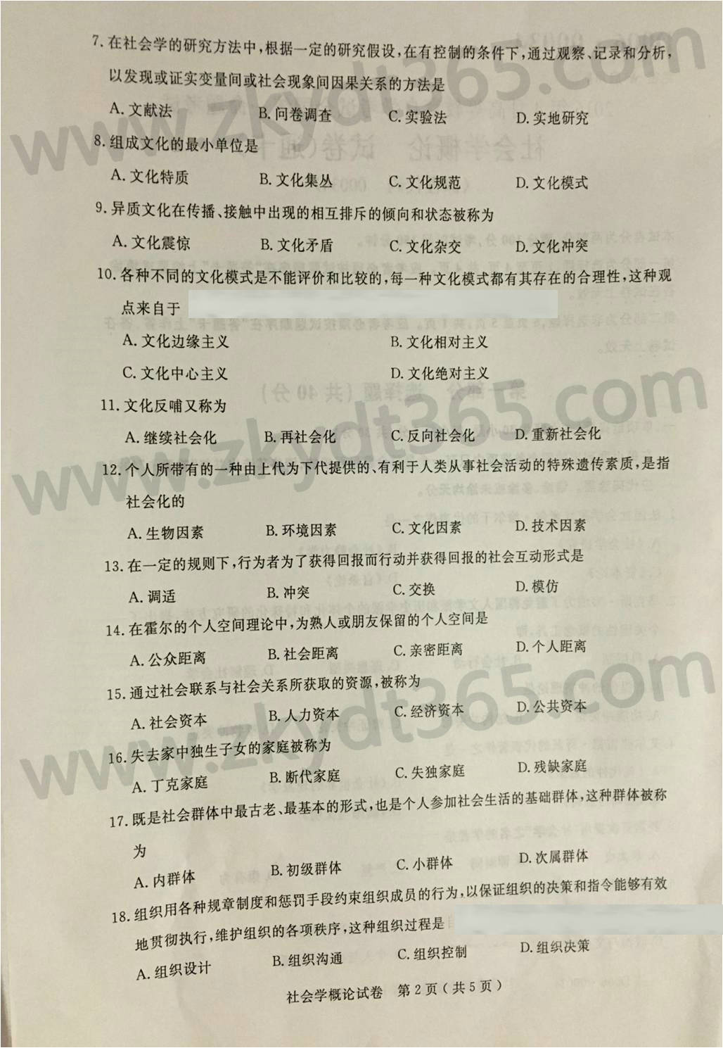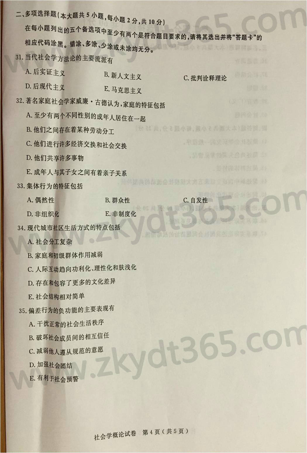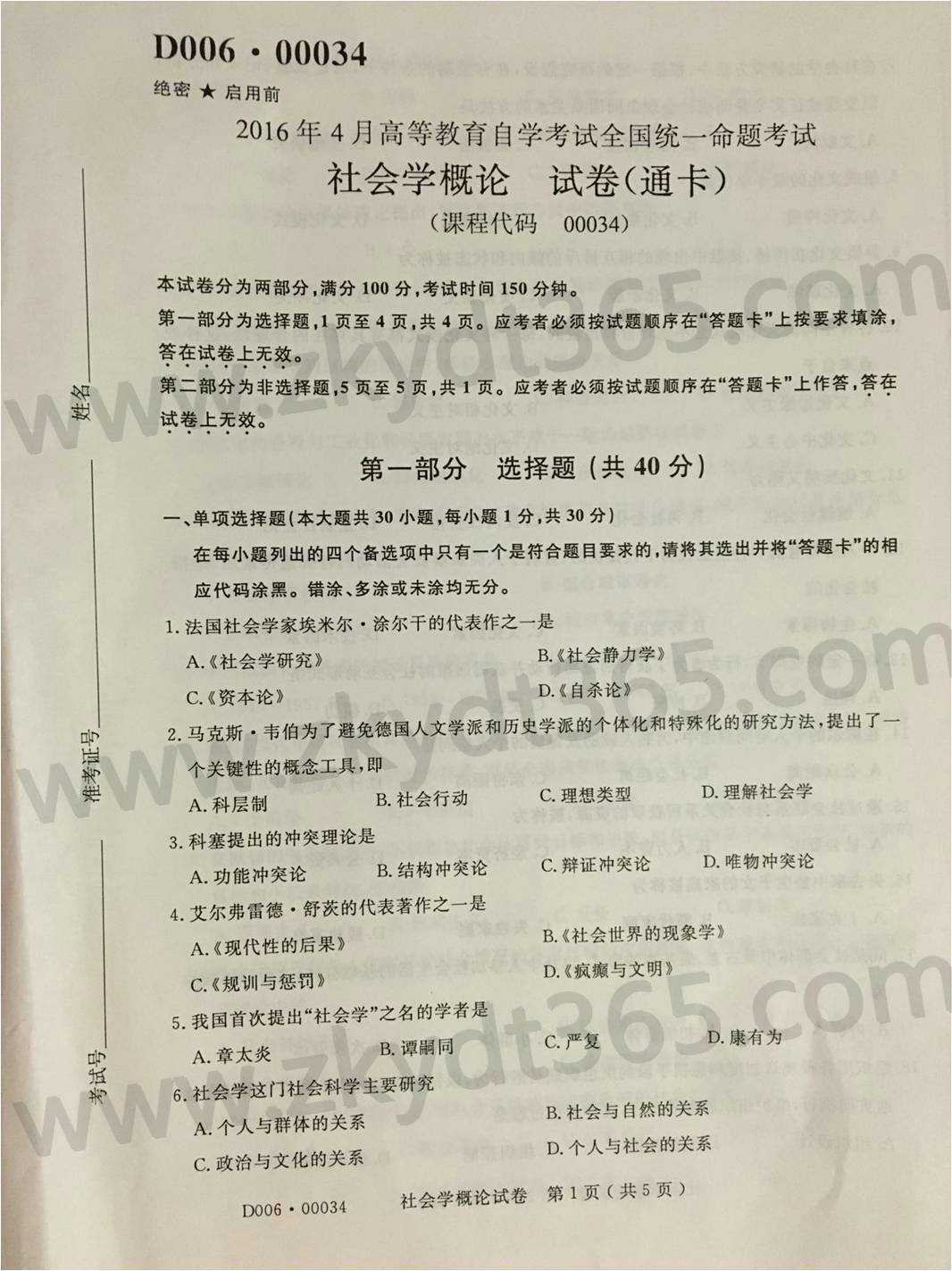 2016年04月贵州自考00034《社会学概论》真题