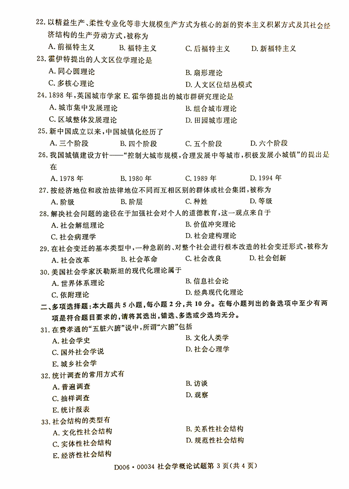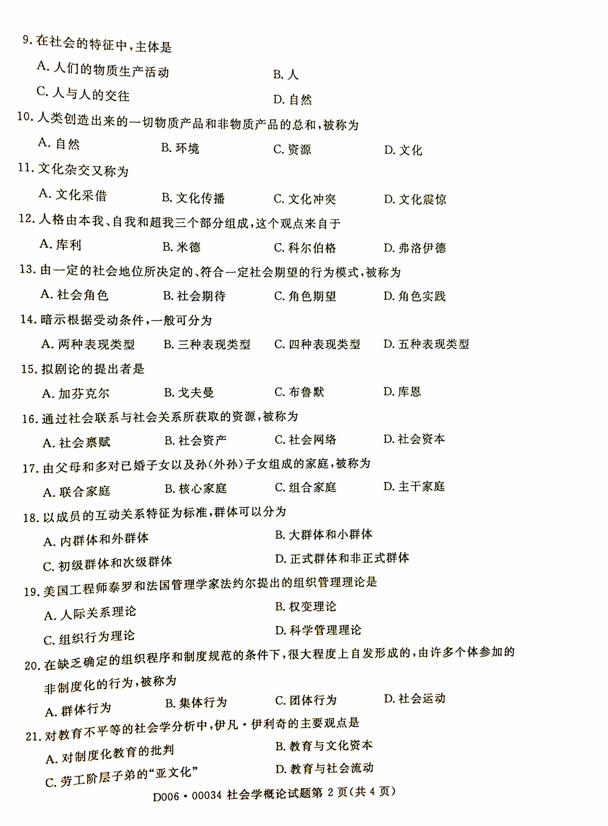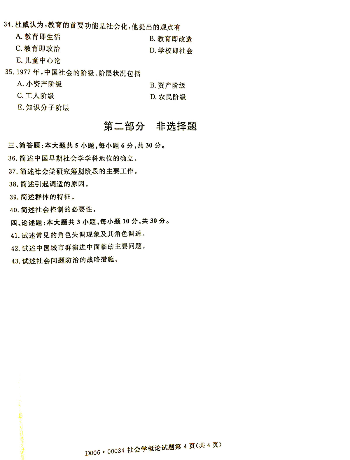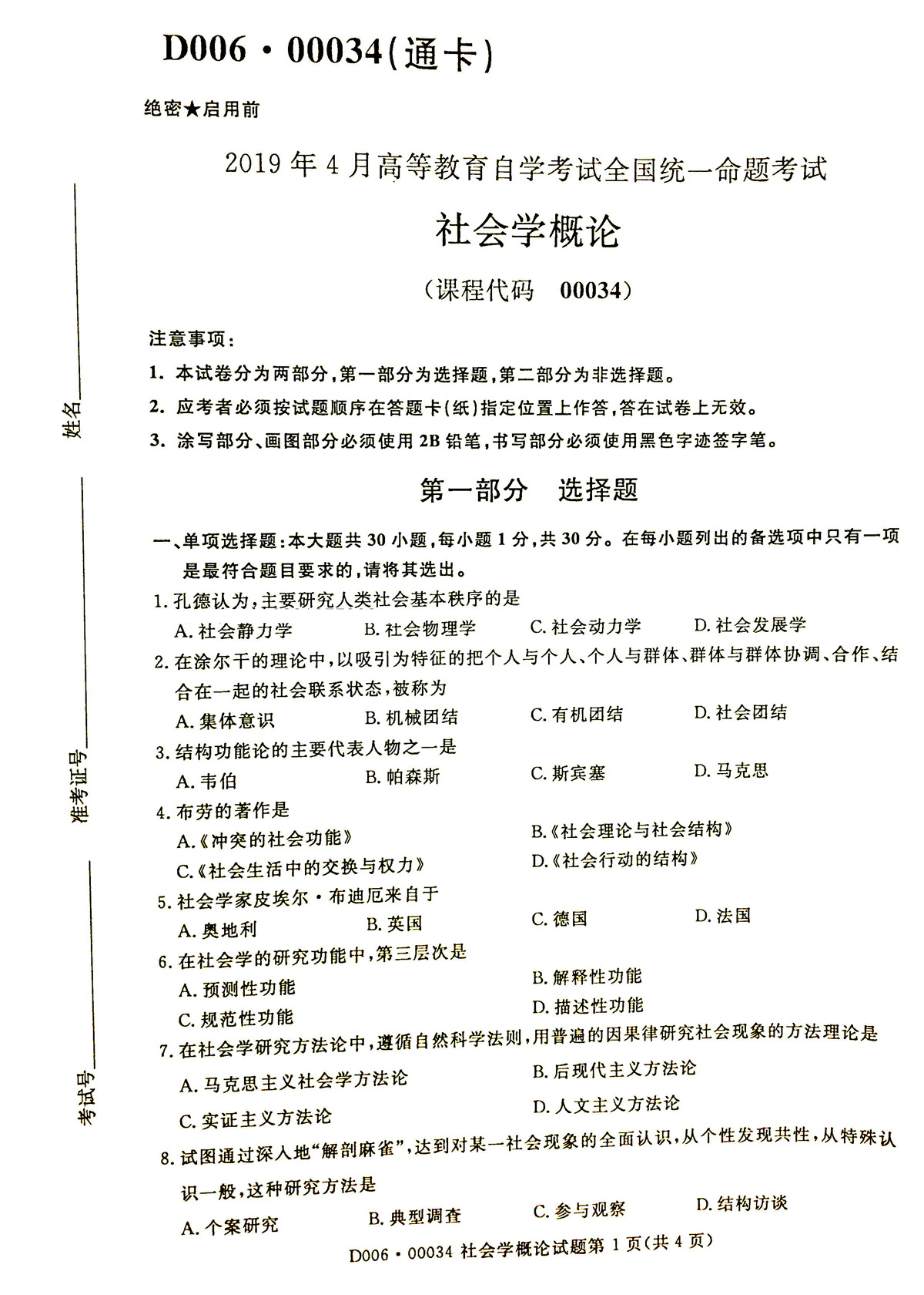 2019年04月贵州省自学考试《社会学概论》00034试题和答案