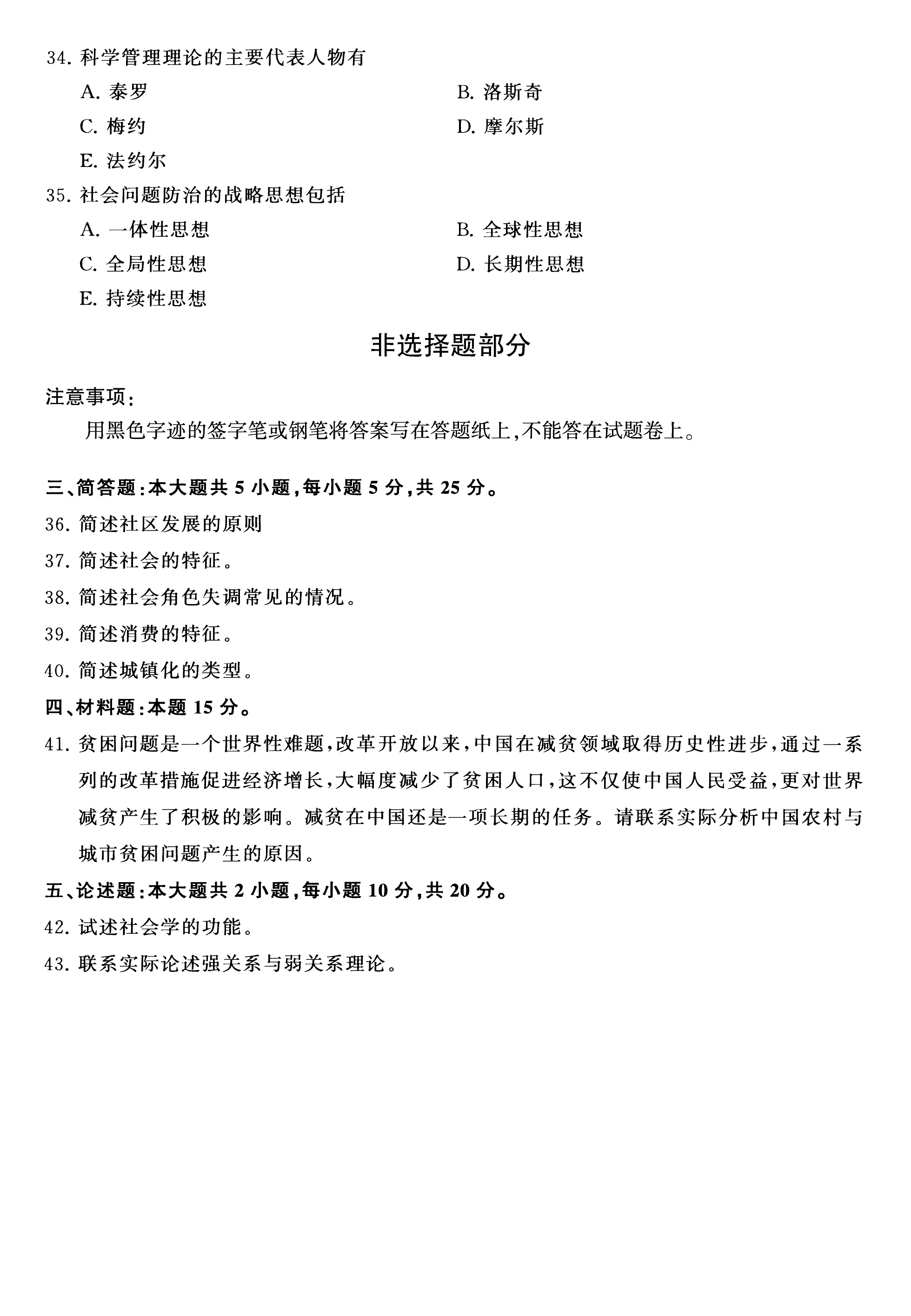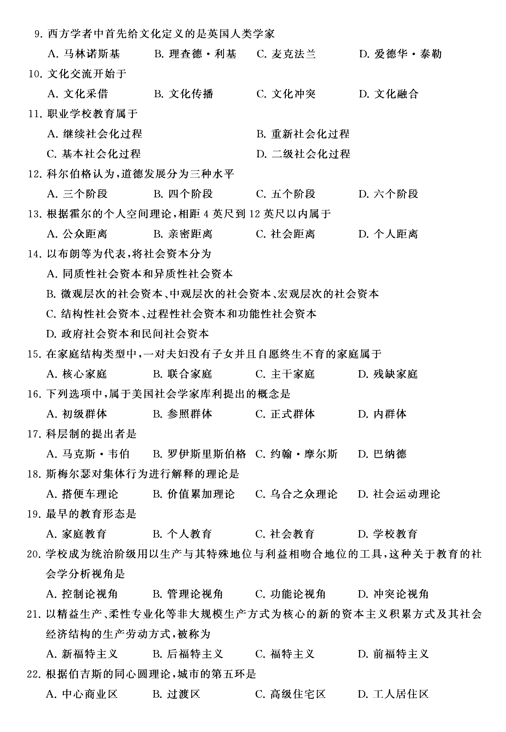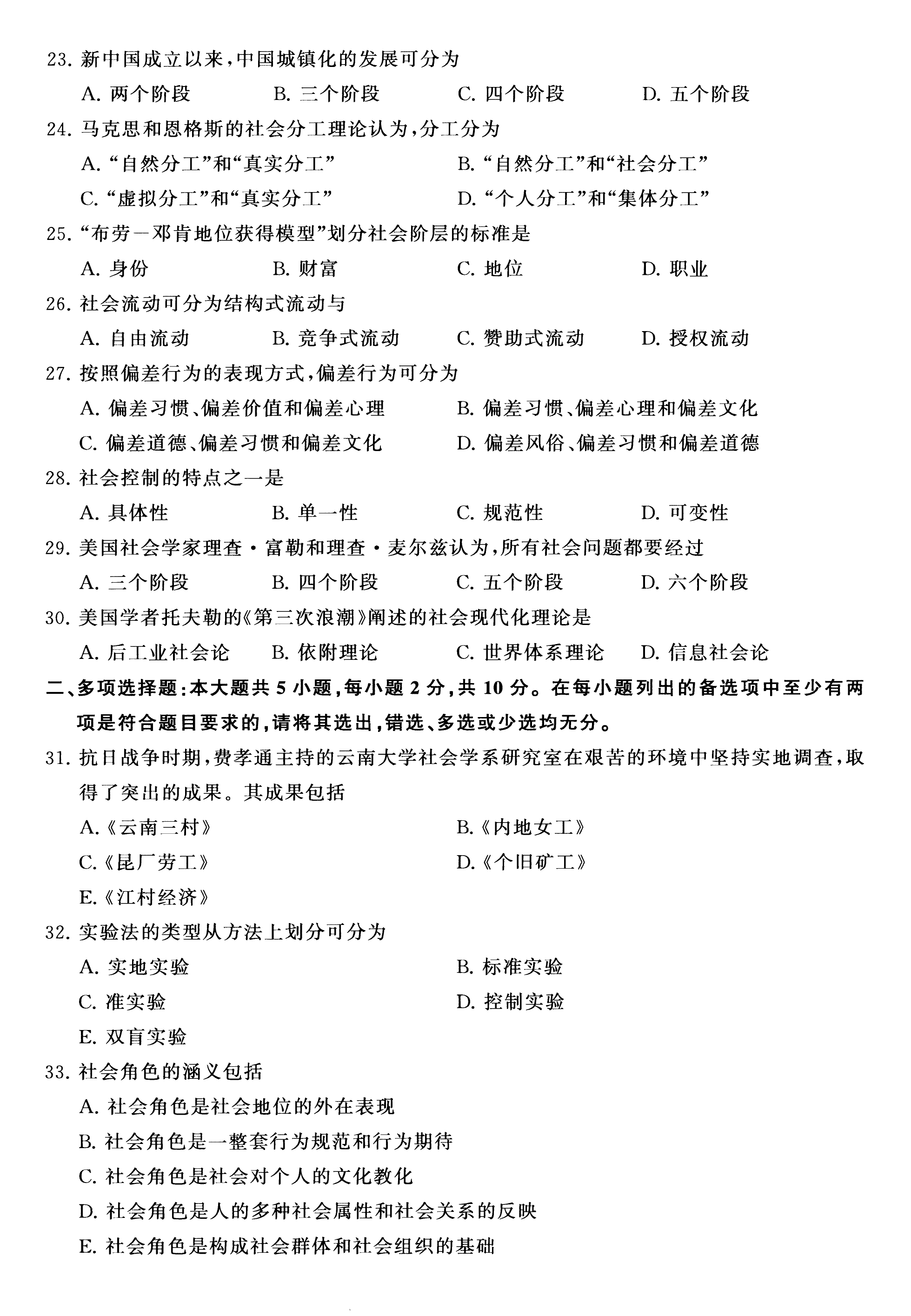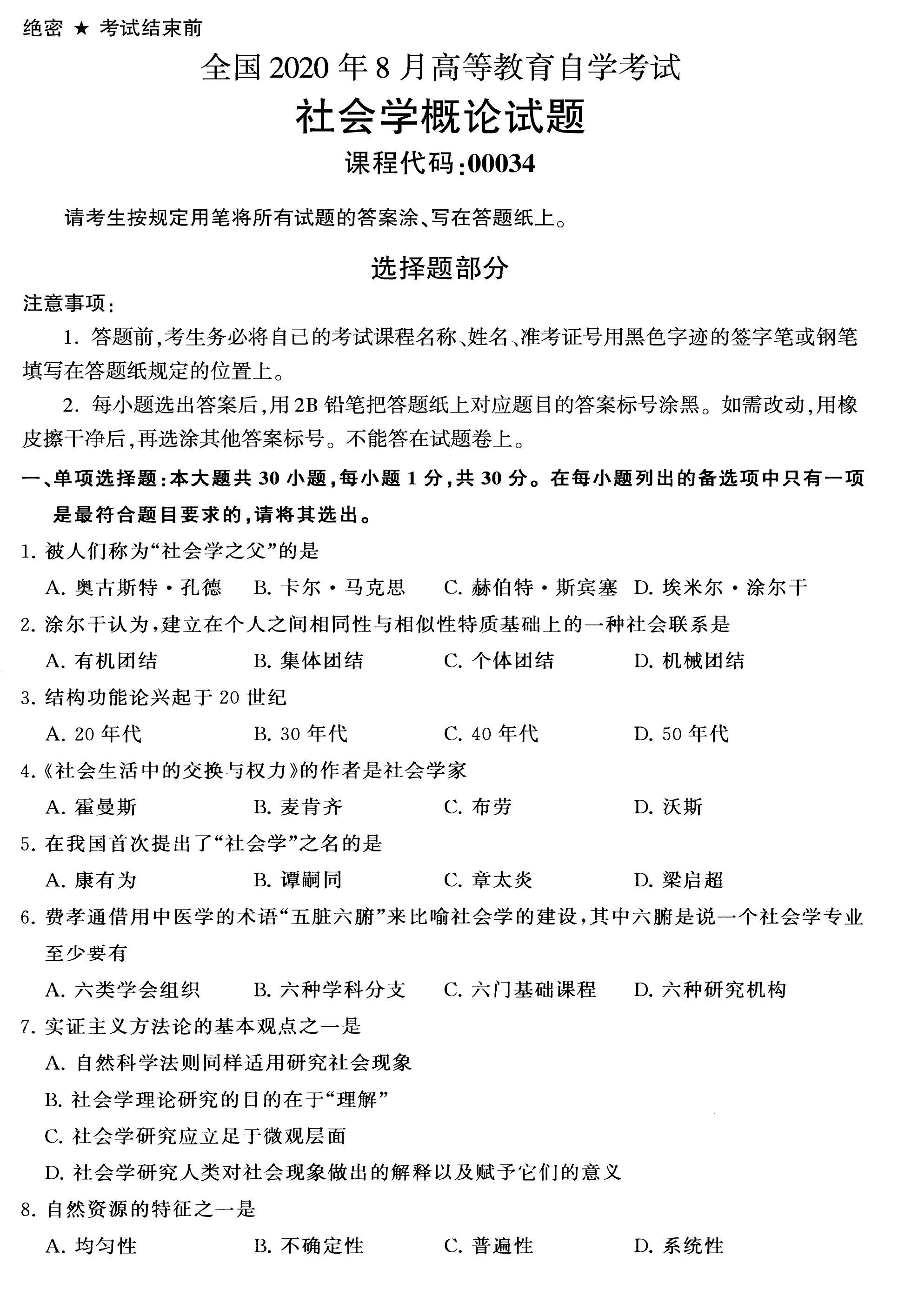 贵州省2020年08月自学考试《社会学概论》00034试题和答案