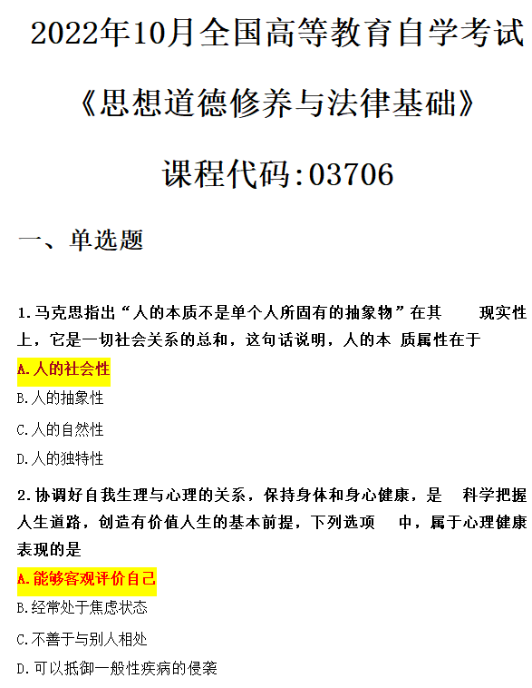 本文标签:贵州自考 公共课 2022年10月自考《思修》03706真题答案解析