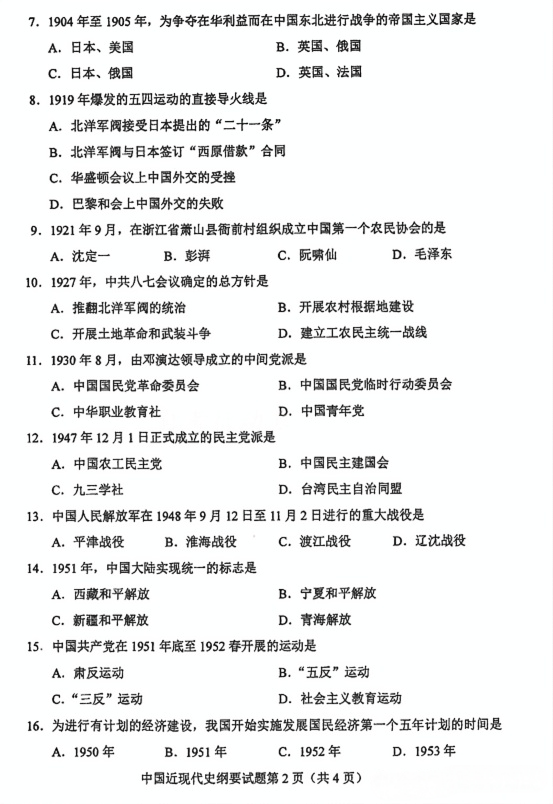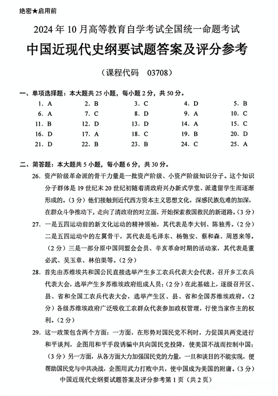 本文标签:贵州自考 公共课 2024年10月贵州自考03708中国近现代史纲要试题及答案