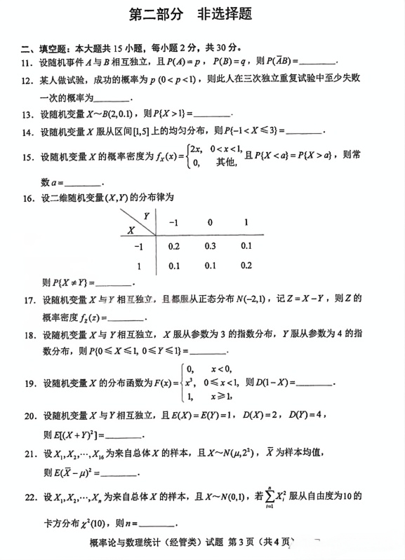 本文标签:贵州自考 公共课 2024年10月贵州自考04183概率论与数理统计经管类试题及答案