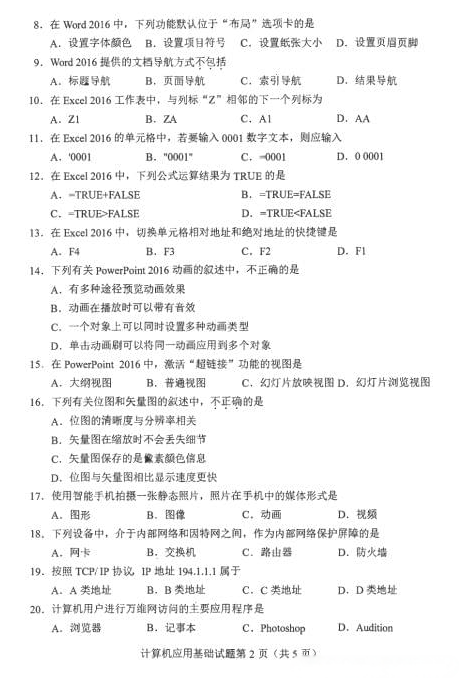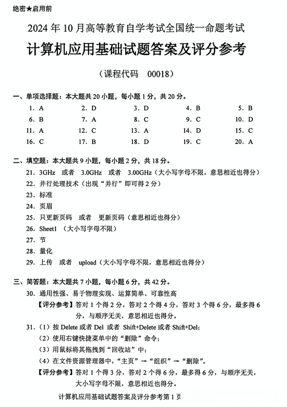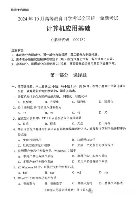 本文标签:贵州自考 公共课 2024年10月贵州自考00018计算应用基础试题及答案